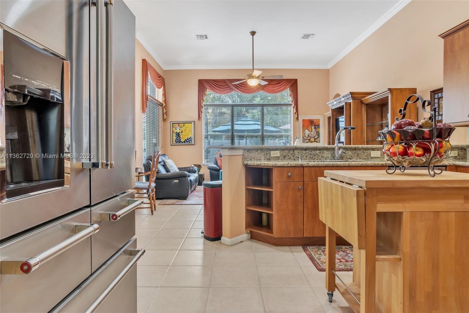 Impecable and beautifully maintained property by the original owners in the desirable community of The Estates of Pembroke Shores. Walk through the doubled doors to see the high ceilings and the perfectly designed space overlooking the pool and serene backyard. The kitchen features granite tops and TOP OF THE LINE appliances. This home was originally built with 2 master bedrooms (2 bedrooms were turned into one large bedroom) which is perfect for siblings or in law suite. The third bedroom is also large and is currently used as an office. The master bedroom overlooks the pool and the master bathroom is very spacious, has a double shower and a nice roman tub. Crown molding throughout the house. With 3 car garage and a large driveway there is plenty of space for parking.