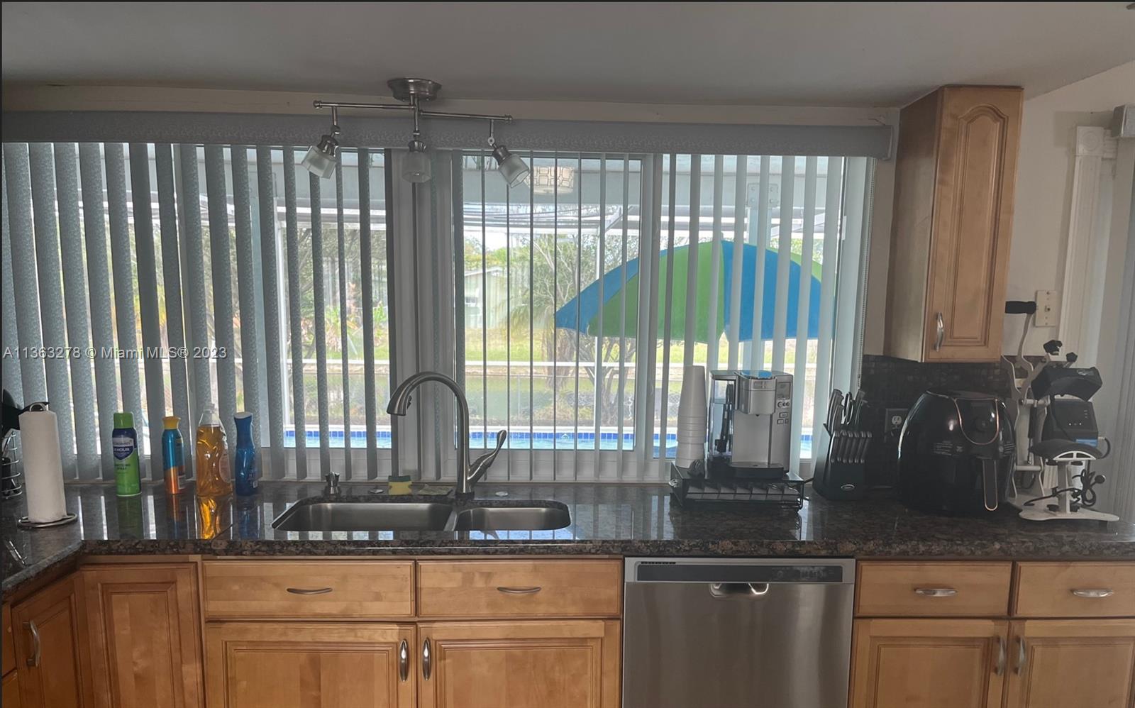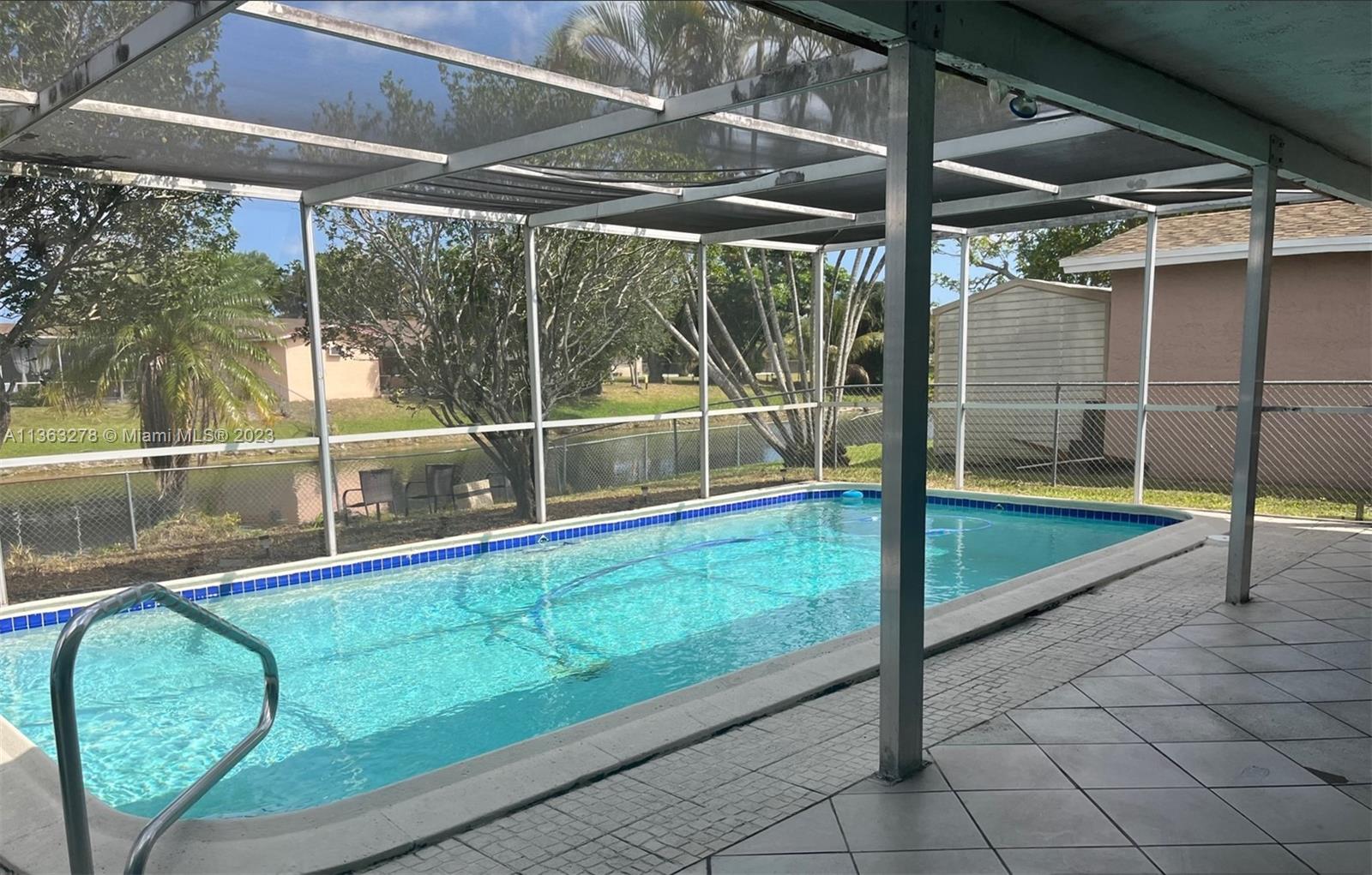 This charming 2 bedroom pool home + den + lake is a perfect retreat for those seeking a cozy home. Property boast a welcoming front porch, spacious living area complete with tile floors, large impact windows & sliding doors that provide ample light and a serene new guest bath. Eat in kitchen is fully equipped with stainless steel appliances and and plenty of cabinets. Both bedrooms are well-sized & offer enough room for storage. Master bedroom has walk in closet, main bath is a home spa jacuzzi & rainfall shower head. The backyard including a large shed and pool is a great space for outdoor activities, creating your garden oasis , relaxing or entertaining. Home centrally located close to Hard Rock, turnpike, shopping & more, best of all no association. A/C is 2015 & Roof is 2018.