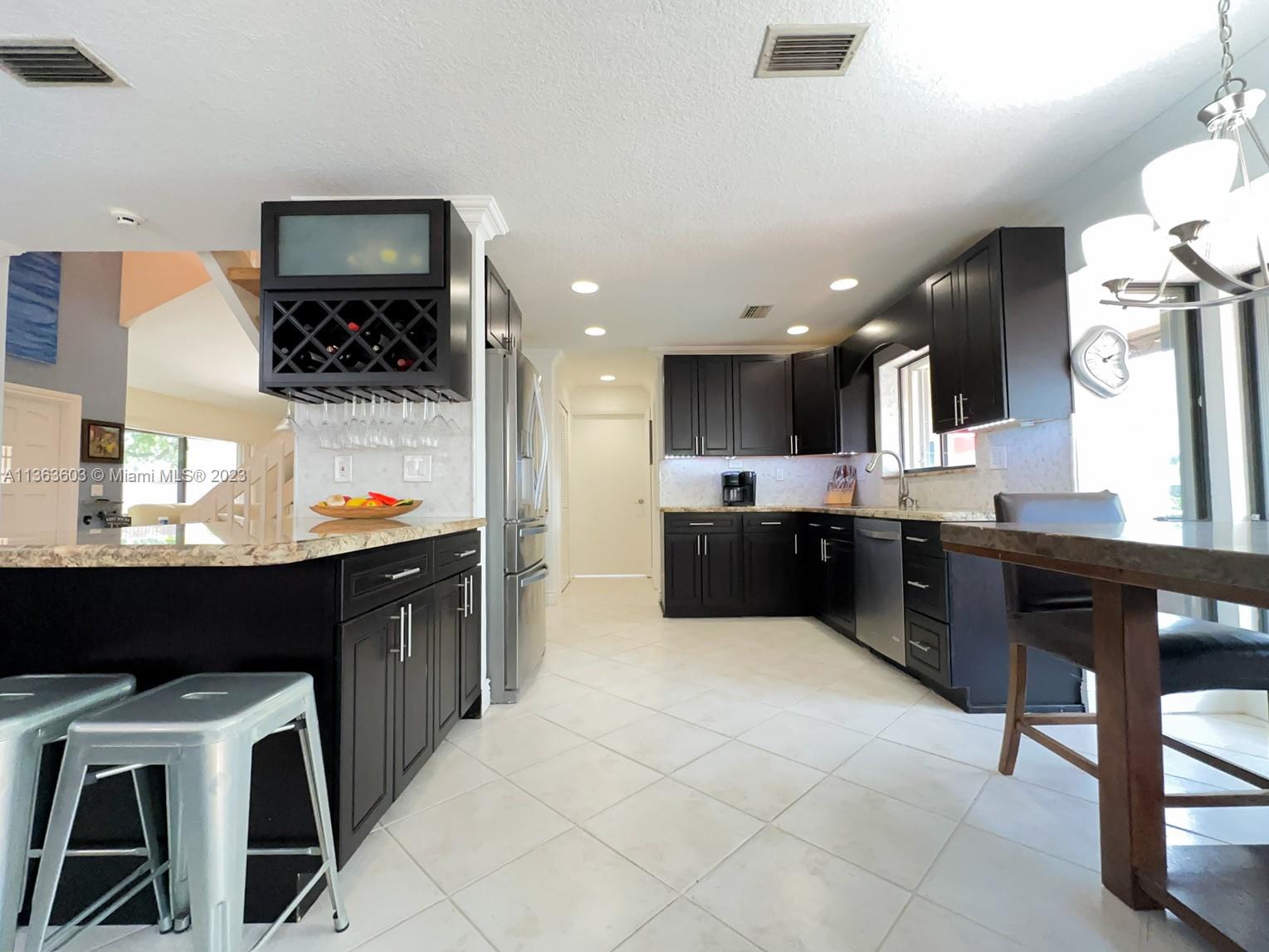 This stunning 4 bedroom, 3 bath lakefront home is located in one of the most desirable communities in Cooper City. The home features an open floor plan with plenty of natural light with views of the lake from nearly every room. The kitchen has stainless steel appliances and granite countertops, and the bathrooms have been updated with new fixtures and vanities. The master bedroom is spacious and features a walk-in closet and en suite bathroom. The loft can be converted to a 5th bedroom, used as a playroom or home office. The backyard is fully fenced and features a sparkling pool with a screened-in patio, perfect for entertaining guests or relaxing on a hot day. The home also has a 2 car garage and is located in a quiet neighborhood with great schools within walking distance.