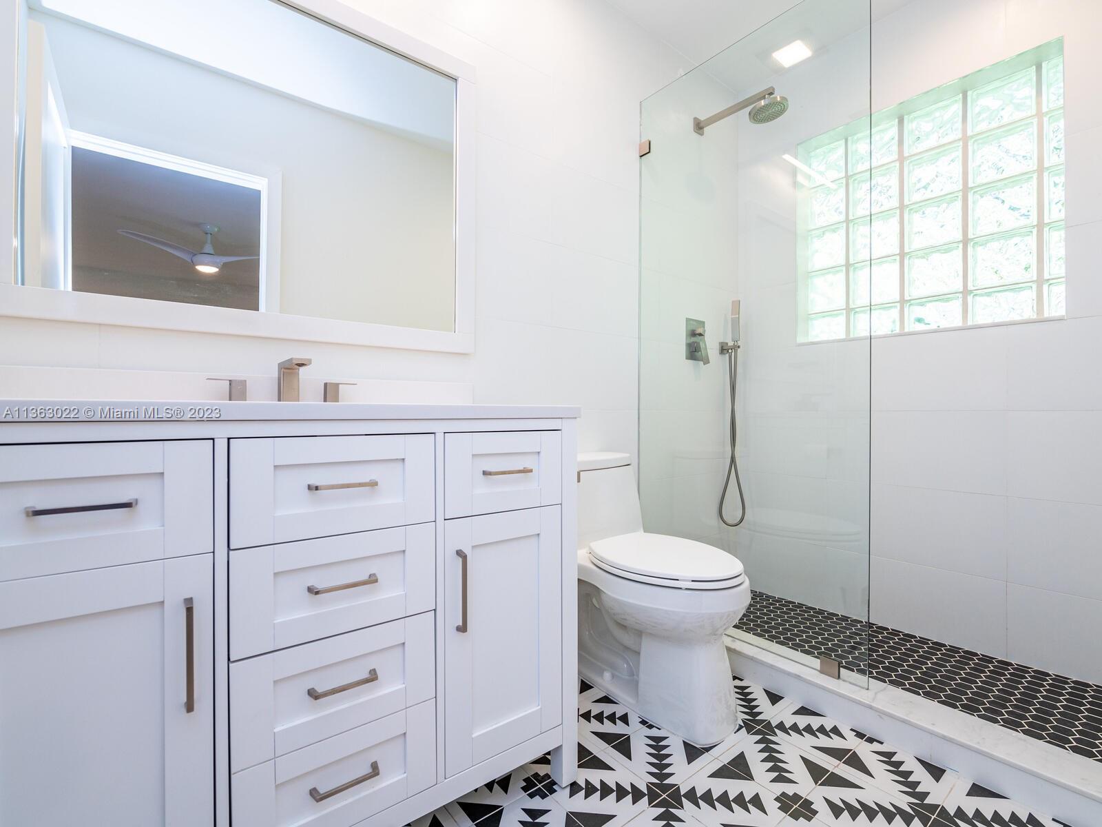 You just found your dream home in a tropical paradise in Miami Shores! Walking distance to shops & entertainment. Permitted garage conversion into 3 bed/3 bath + storage area (with a roll up garage metal door & entry pad), Spacious entrance, living, dining & TV rooms. New open plan kitchen with quartz countertops, butcher-block top island & SS appliances. Permitted plumbing & electric (2023), tile roof (2020). Seamless aluminum gutters. High quality wood-laminate water-resistant floors. Fully fitted closets & modern fans. Impact resistant windows. New single pane front door with single pane side panels. Central AC (2018). 3rd bed & bath add approx 250 sqft to the tax roll (2,000 sqft approx per seller). Wood fence. Uncovered parking in front and back. New digital 4-zone sprinkler system.