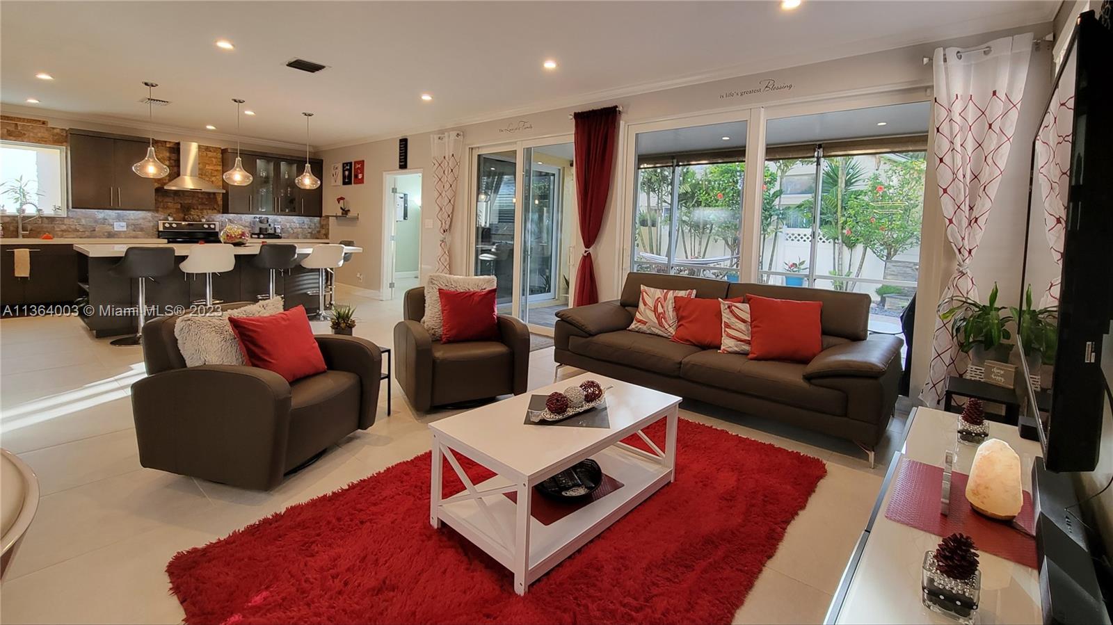Welcome to your oasis of luxury and relaxation. This home has been upgraded to create an inviting space that is perfect for entertaining. Enjoy cooking in your beautiful extended kitchen featuring a 10' island that seats 5 - the perfect spot for gathering family and friends! And when it's time to relax, step outside into your own tropical backyard resort: an in-ground water feature, a new 6-person hot tub, and pavers underfoot which create a tranquil atmosphere for unwinding after a long day. You'll also love the convenience of having an office/den on the first floor as well as hurricane windows throughout so that you can rest easy knowing your family is safe from any storm. Enjoy a cup of coffee on the screened porch without worrying about the weather thanks to its insulated roof.