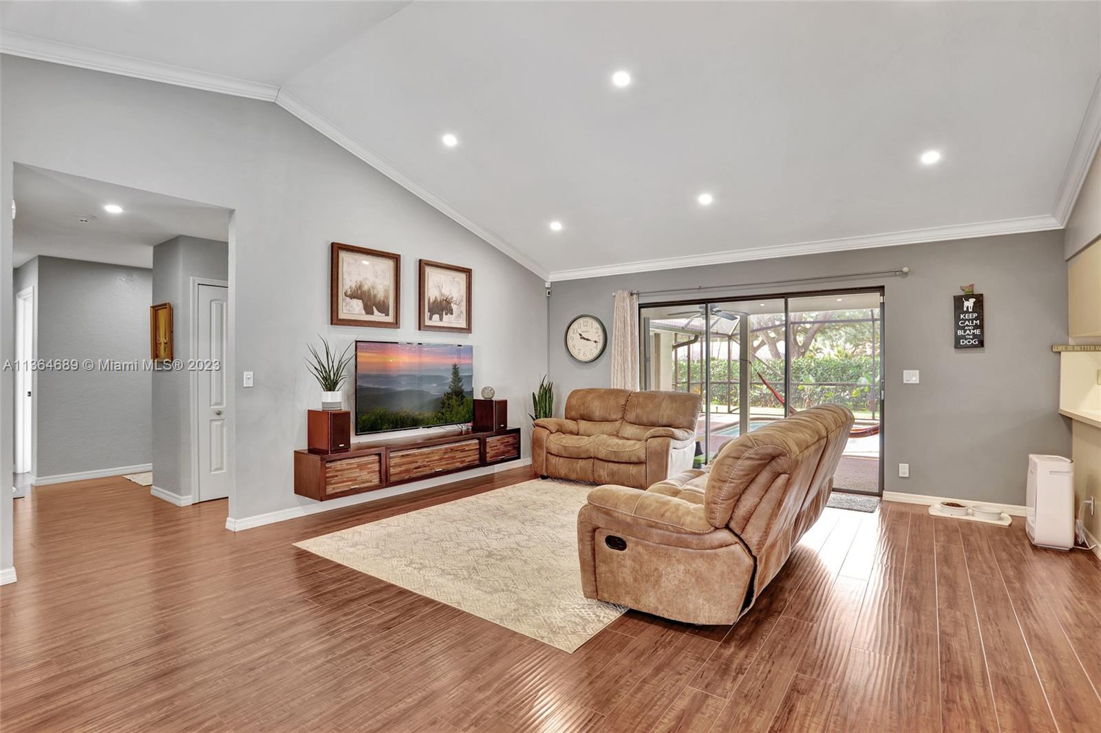 Welcome home to this spacious, meticulously maintained 4 bed, 2 bath pool home in the much desired community of Pine Ridge. Situated on an oversized fenced lot with pool & screen enclosure, 2 cabana bathrooms, open floor plan with large eat-in kitchen that overlooks the pool this home is great for entertaining. The exterior features a large paver patio at the front entrance that is wheelchair friendly, accordion shutters on all openings, a hurricane proof garage door and a solar pool water heater. The interior has been freshly painted in a neutral color, all ceilings have been refinished to remove popcorn and all new AC ducts were installed in 2016. 2021 Stainless refrigerator and dishwasher and an in-home water filtration system installed. Low HOA, A rated Elementary School!