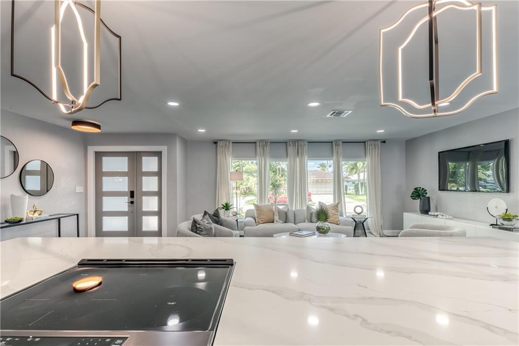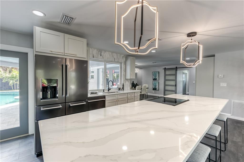 Completely renovated 4 bed/2 bath pool home in the highly sought after Addison Mizner school district. This home was upgraded from top to bottom. Everything is new! Impact windows / doors, new ac. The updated kitchen offers an oversized marble island, black stainless steel appliances, stylish backsplash, modern cabinets and lighting. An open floorplan allows for easy entertaining. There is a large formal dining area with direct access to the bar that includes storage and a wine refrigerator. Both bathrooms have matching floating vanities and pristine tile work in the showers. The wet laundry room / mud room has a closet and high end washing machine and dryer. Outside you will find a large resurfaced pool with new tile, a covered seating area, and plenty of yard space. New roof coming soon!