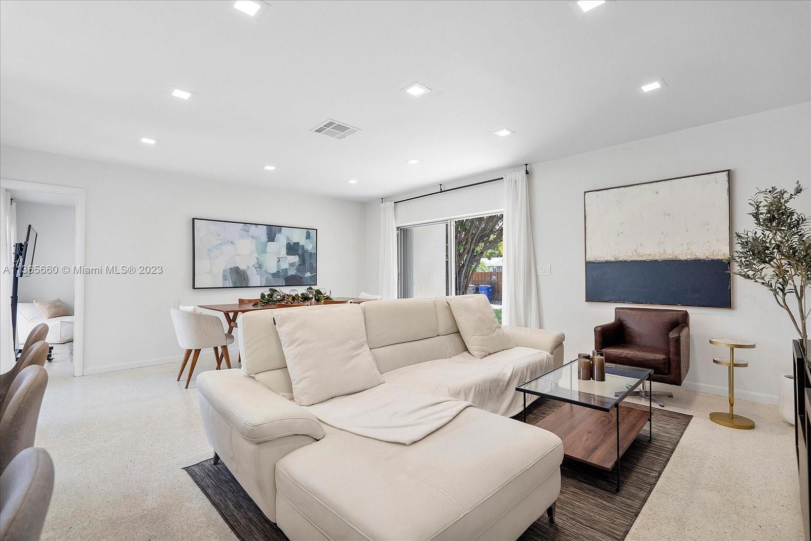 A stunning property in the much sought-after neighborhood of Hollywood Hills is up for grabs. This gorgeous 4-bed, 2-bath, 1 car garage home boasts a very unique feature - a breathtaking 400 SF courtyard in the center of the home accessible through wall-to-wall sliding glass doors. Imagine basking in the sun or gazing at the starry sky from the comfort of your own private retreat. This incredible outdoor living space is perfect for outdoor dining, gardening, entertaining, or just lounging with your loved ones. Inside, this home is equipped with plenty of closet space and storage. The kitchen is an absolute dream, featuring custom maple cabinetry, high-end stainless steel Bosch appliances, a built-in pantry, a concealed trash compartment, beautiful Carrera quartz countertops and much more.