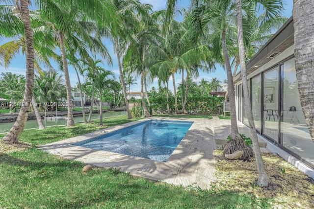 Stunning & newly renovated, waterfront home in Miami Beach under $2.250m! Situated on oversized corner lot on guard-gated Biscayne Point Island. With 4 beds and 3 baths spread over approximately 2700 sf, this home offers an ideal layout with an abundance of natural lighting throughout. The open floor plan is accentuated by sleek quartz countertops that adorn the kitchen, providing an ideal space to entertain guests or relax in your light bright and airy oasis. Step outside to discover an impressive backyard with mature palms and 60 ft of waterfrontage complete with sparkling saltwater pool. This recently updated property features all the modern amenities you need while retaining its classic charm. Don't miss out on this rare opportunity to own a waterfront, renovated home in Miami Beach!