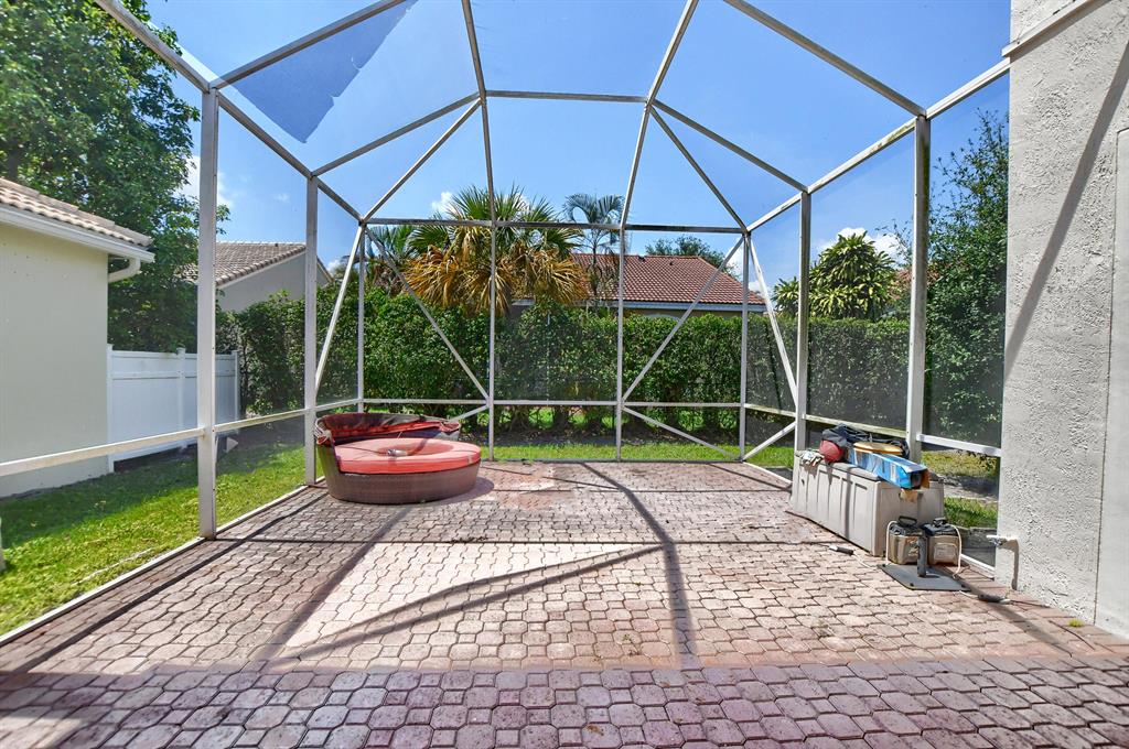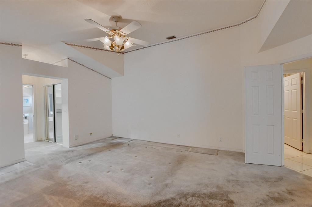 Great opportunity to own a 2 story single family home in popular Costa Brava! Great floor plan with master bedroom downstairs and 2 bedrooms up. Kitchen is open to family room and has granite counters, white cabinets and stainless steel appliances. In addition to family room there is a formal living and dining room. Very private backyard with large screened in patio. Master bedroom has carpet and walk in closet with built in shelves. Upstairs has a loft with closet and 2 bedrooms that share a bath. Close to community pool.