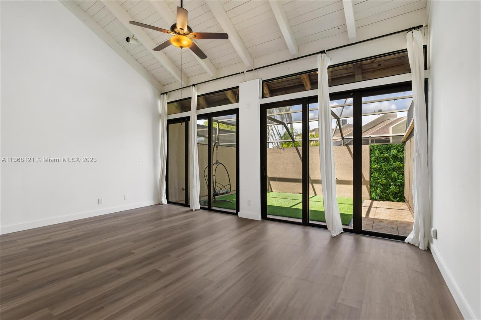Come step inside this one of a kind townhouse located in the highly sough after community of Villas West in Pembroke Pines. As soon as you walk in you are greeted by vaulted ceilings with wood beams and natural lighting. Completely updated offering 1,511 sq ft and 3 bedrooms 2 bathrooms. BRAND NEW remodeled kitchen and stainless steel appliances. BRAND NEW ROOF! BRAND NEW IMPACT WINDOWS THROUGHOUT! New flooring throughout. One full bedroom and bathroom located on the first floor. Screened in backyard patio area with garden views. Fully remodeled and updated bathrooms. MUST SEE!