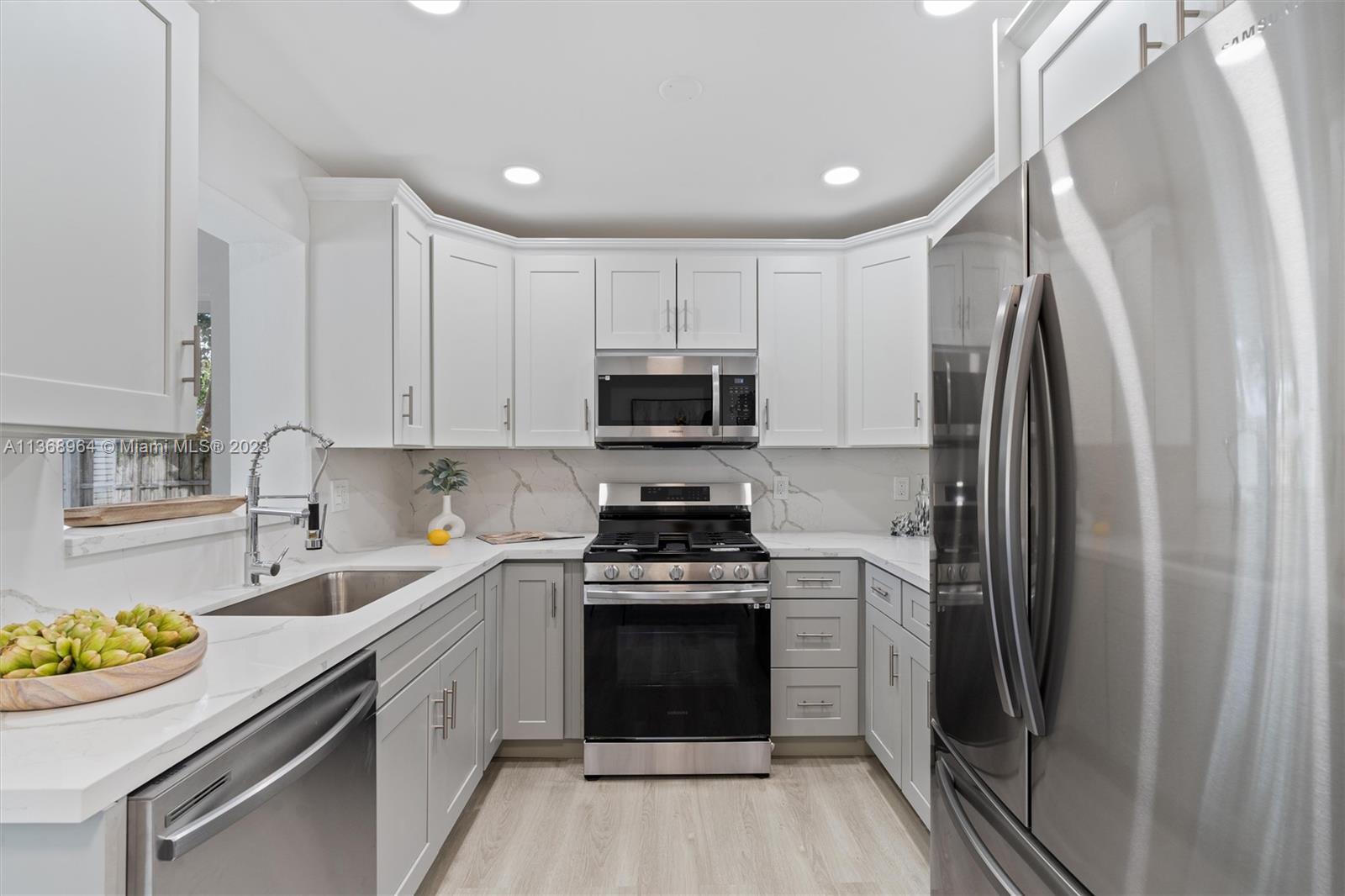 Modern sophistication defines this newly renovated 3 bedroom/2 bathroom home in a family oriented neighborhood. This charming home features full hurricane impact windows, new shingle roof, new bathroom vanities, new kitchen w/ quartz countertops ,custom cabinetry & backsplash, new stainless steel appliances, spacious living areas, large laundry room, and a Florida room, perfect for entertaining your guests.This home is perfect for any family to enjoy! Endless amounts of natural lighting & luxury vinyl laminate floors lead you to a split bedroom floor plan with an oversized master suite, offering a relaxing bathroom with a rainfall shower. The vast backyard has extensive room for a pool & outdoor kitchen. And an added bonus, there is no HOA.