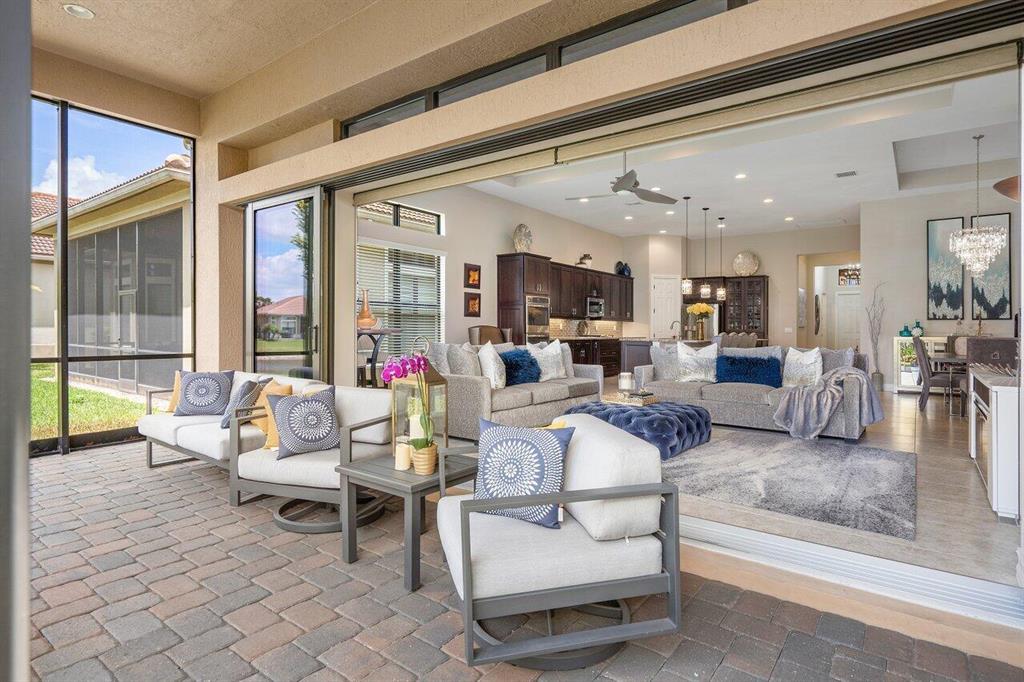 Welcome home! 55+ Four Seasons at Parkland featuring 3 Bedrooms, 2.5 baths, 2 car garage. Opal model complete with all impact doors and windows with serene lake view. Owners have meticulously maintained this 2017 construction home built by K. Hovnanian Homes. Tons of natural light, 12 feet ceilings with beautiful 13 ft tray ceiling, open concept kitchen, family, dining area perfect for entertaining. Kitchen boasts stainless appliances and granite counter tops. 4 panel stackable sliding doors open to the patio completely for the perfect mix of indoor & outdoor living. Four Seasons at Parkland is an active adult community with clubhouse, resort style pool, tennis, pickleball & more. Don't miss this one!