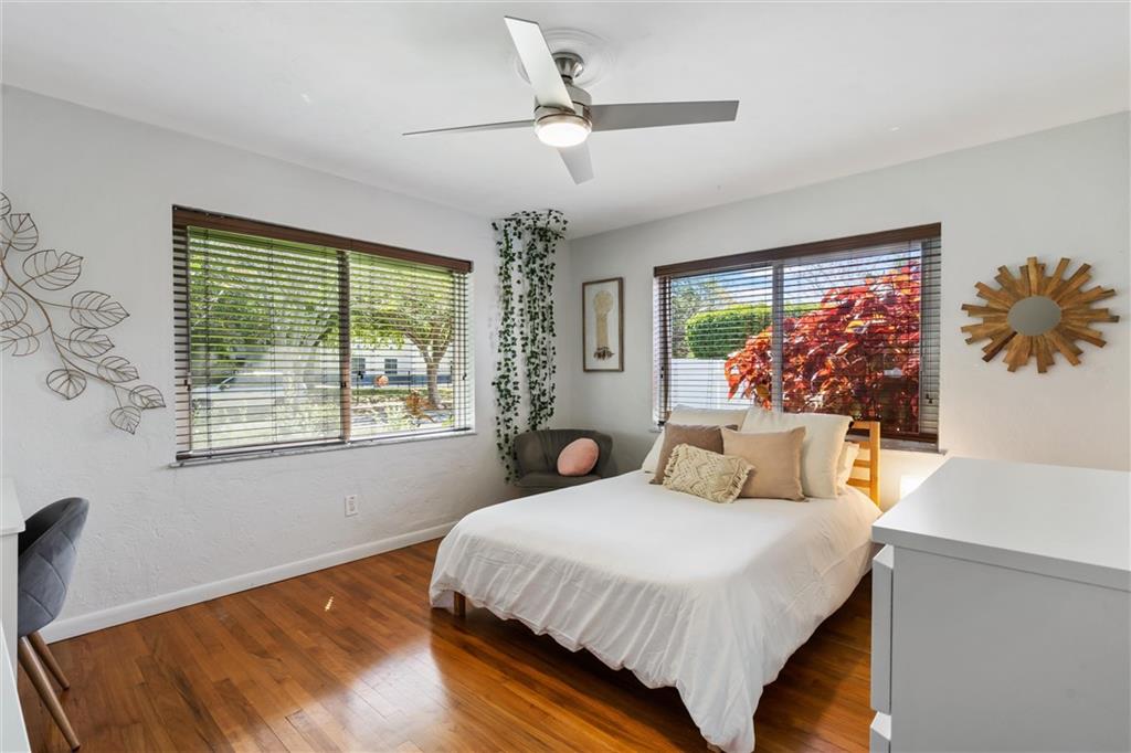 Gorgeous & completely upgraded 3 bed, 2 bath pool home in highly desirable Poinsettia Heights! Home features brand new hurricane windows & sliding glass doors w/ pool view off primary BR & dining area w/ motorized blinds. Private backyard with deep well irrigation & new PVC fence w/ 10' side gate. 1300SF sandblasted marble tile w/ NEW heated saltwater pool & spa w/ Hayward automation system. Real hardwood floors thru/out living areas & bedrooms. Spacious floor plan w/ front Florida Room & working fireplace! Updated kitchen w/ SS appl., quartz counters & newly tiled floor! Updated laundry room/office w/ new W/D and sink! Large 1-car garage w/ lots of overhead storage. Don't miss out on this beautiful home in a prime location within minutes of everything South Florida has to offer!