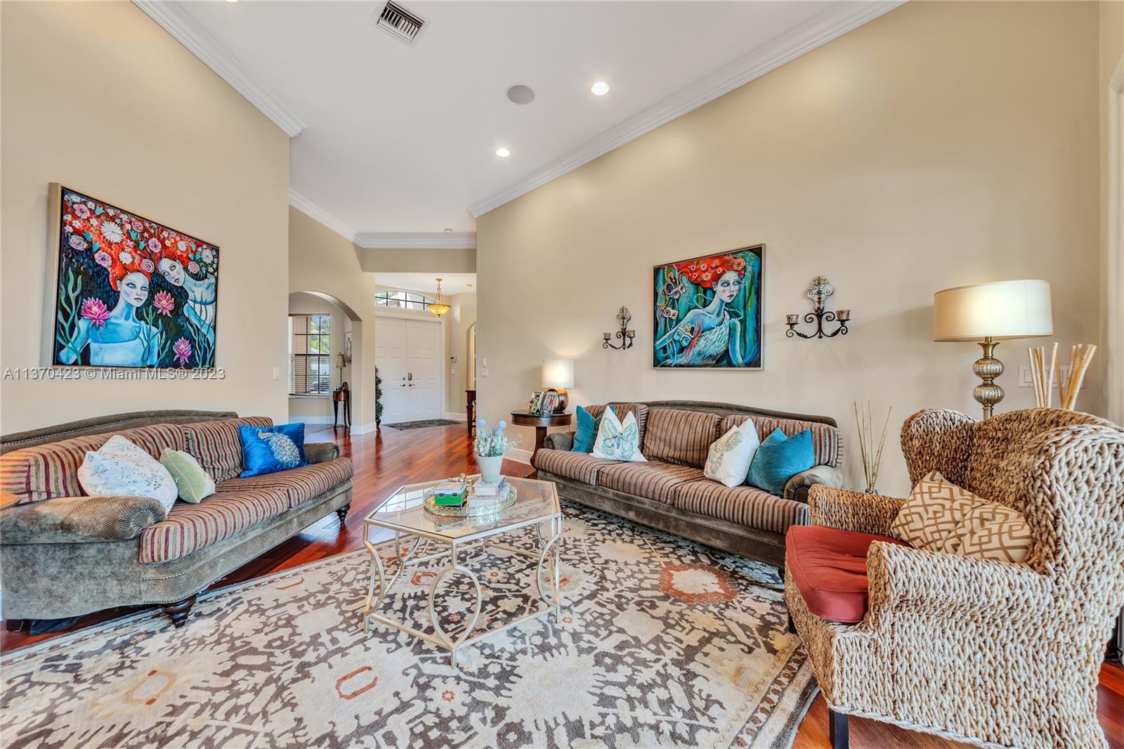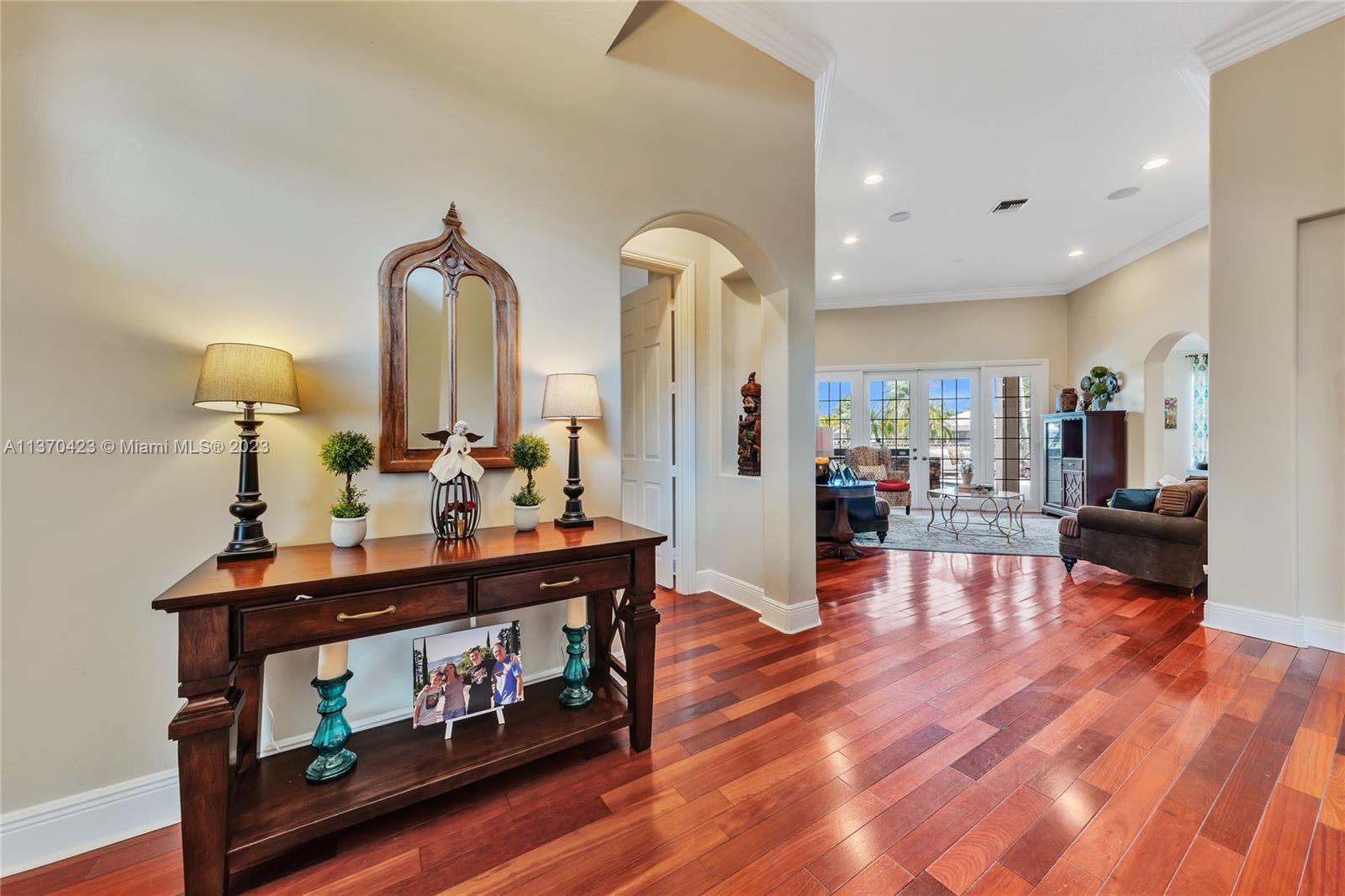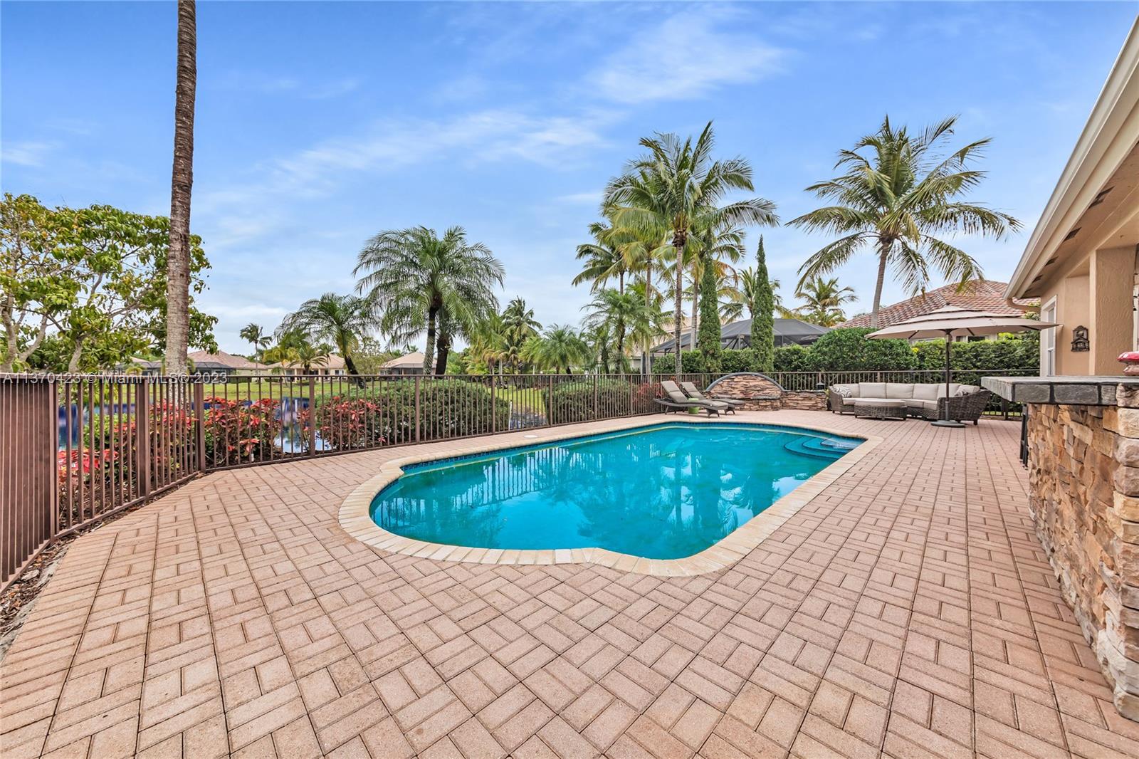 Dream home offers stunning water views on large 14,000+ sqft pie-shaped lot w/plenty of space to spread out and relax.Grand Bay Model w/triple split floor plan. Spacious patio & pool area features custom built stone veneer BBQ grill & island w/matching fire pit & stunning views of the water. Real wood floors throughout & kitchen boasts high-end appliances and ample counter space to entertain family & friends. Conveniently located near Pine Trails, Liberty, and Veterans Park and a short drive from Heron Bay w/plenty of shopping and dining options as well as A Rated Schools.Clubhouse, gym, pool, community room, and tennis/pickle ball courts making this home and community the perfect place to call home! Don't miss out on the opportunity to make this incredible property your own.