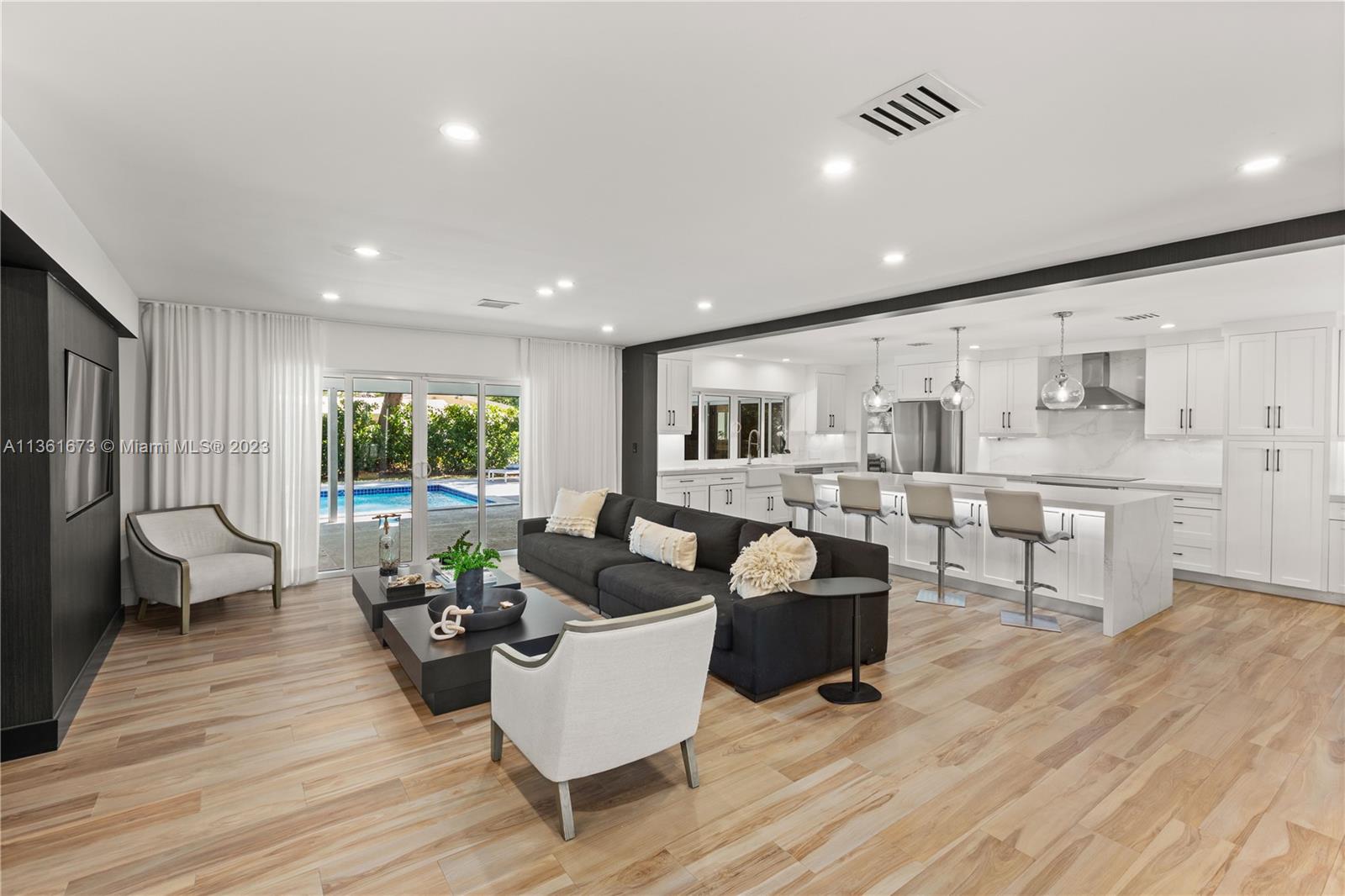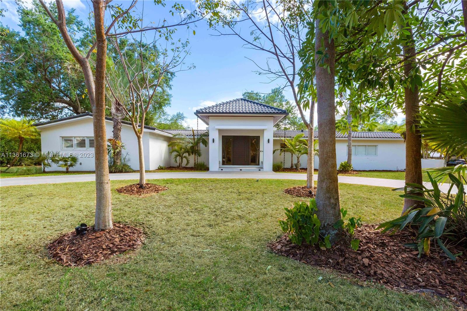 This exquisite 5 /5 home 3822 SF has undergone a complete renovation plus a breathtaking primary suite addition. Greeted by a stunning foyer entrance, you’re welcomed into a modern vibe home, curated for comfort & style with an open floorplan designed for gathering. The stunning custom kitchen, the heart of home, opens to the living/family/dining room. A Zen-inspired addition has its own wing w/walls of glass creating an elevated modern & serene primary suite w/media rm/office, custom walk-in closet & dramatic spa like bathroom w/ the finest finishes. Other features: large bedrooms, porcelain wood floors throughout, all impact, pool & covered terrace, laundry room, just under ½ acre corner lot, 2 car garage, lots of space for kids & pets, premier schools & more. A very special home awaits.