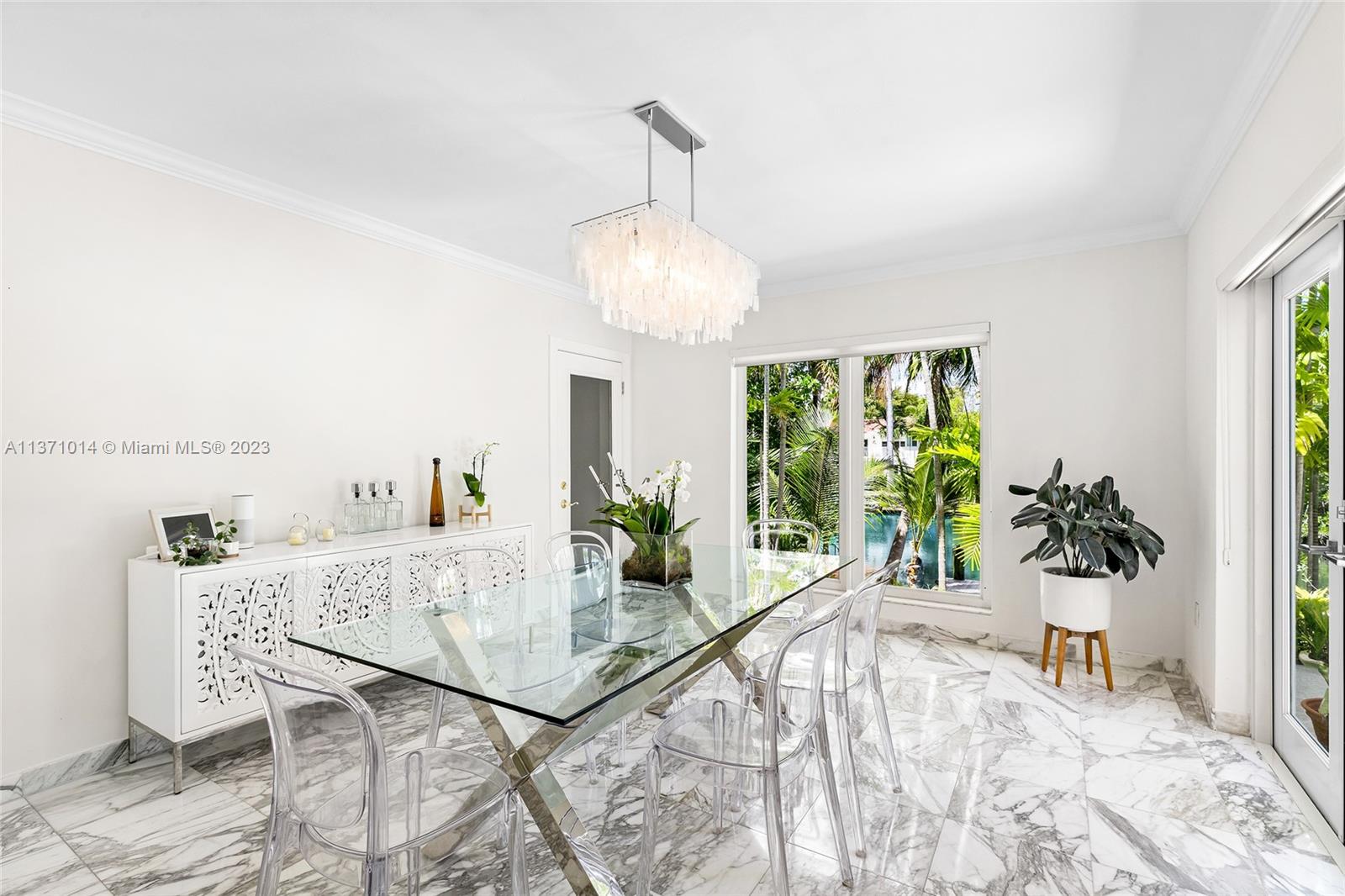 This elevated ranch style home sits on the intracoastal waterway on a 12,000 SF lot in a quiet family neighborhood in Coral Gables. The 4BR/3BA home features Statuary marble floors, high ceilings, spacious living room & private dining area w/large windows that provide direct views to the large pool deck & waterway. An open kitchen sports Kitchen Aid appliances, Quartzite counter tops plus a breakfast area. Elegant principal suite offers direct waterway views, & beautiful principal bath w/glass shower & soaking tub. The other 3 BRs are each well proportioned. Outdoor highlights incl. large pool w/cabana bath, large palms, a boat lift & private wood dock. Hurricane impact resistant windows/doors, laundry room & 2 car gar, plus amazing central location complete this offering.