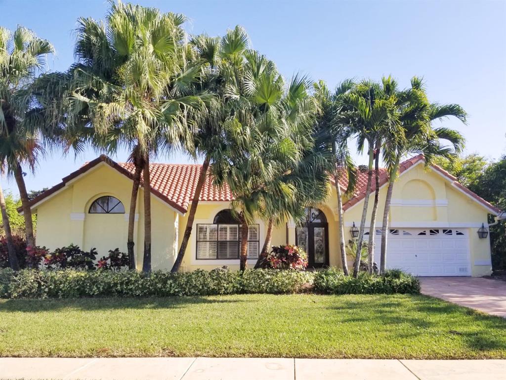 This beautiful, very well maintained house is clean, vacant and ready to sell. Overlooks golf and large water, large open rooms, split plan, updated kitchen lots of light.Boca Greens is a gated community of 586 homes located one mile north of Glades road on US 441. This community is also the home of the Boca Greens County Club. All residents can play the course on a pay for play basis. No membership is required. Premium cable package and high speed Internet included the homeowner fee.