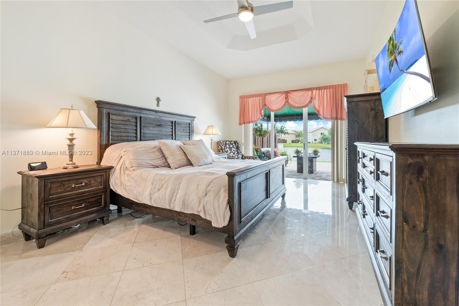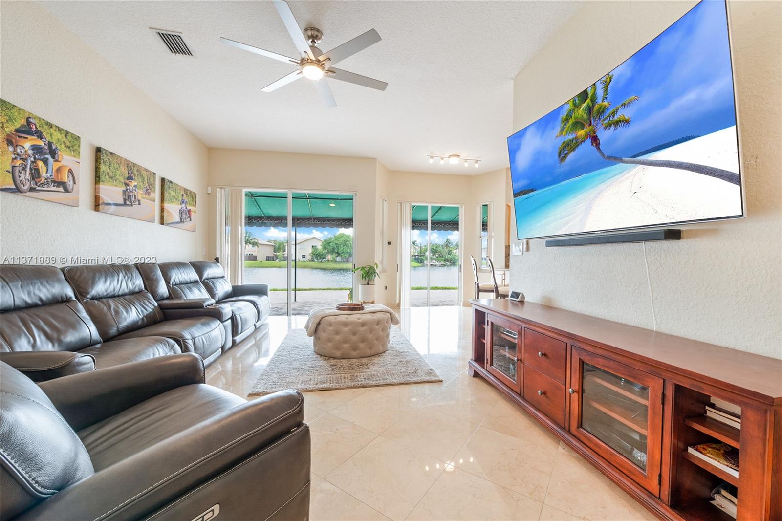 This beautiful one-story lakefront home is a rare find in the gated community of Doral Isles, complete with 24-hour security. The bedrooms are arranged in a split floor plan, with a large master bedroom that offers picturesque views of the lake and a luxurious ensuite bathroom. The backyard is a private oasis with a large Caldera Spa, pavers, and an awning. Additionally, this property is situated on a larger lot with no front-facing homes. Residents of Doral Isles enjoy resort-style living with access to a plethora of amenities such as a clubhouse, Olympic-style pool, hot tubs, sauna, full gym, exercise classes, tennis courts, massage room, restaurant, various party venues, soccer field, playground, bike and jogging trails, basketball and volleyball courts.