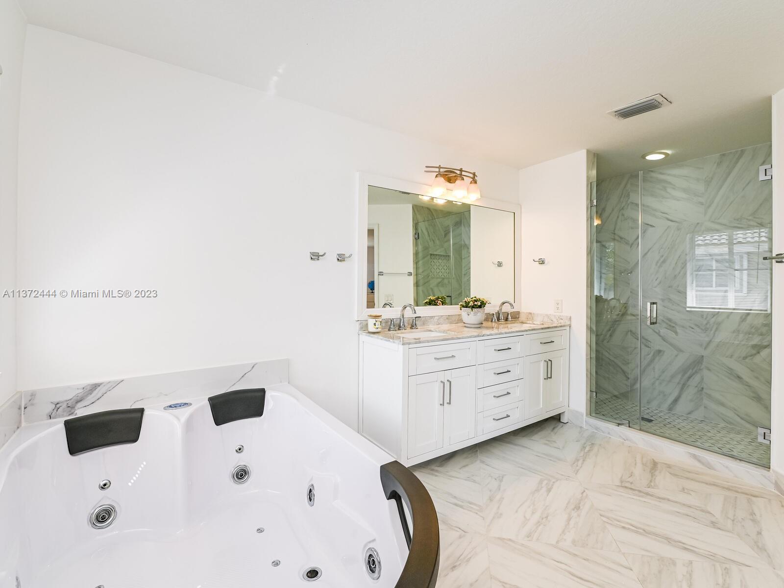 Recently remodeled, spacious waterfront home, on quiet street in gated Savanna @ Weston, 6 bed, 5 bath. A+ schools. Main suite has lake view and large jacuzzi for 2 and walk-in closet. 2 more suites with walk in closets. 3 car garage. Home has lake view with heated pool & waterfall. 1st floor has a Spanish porcelain tile. Large dining & family rooms with open gourmet kitchen. Beautiful landscape in the front of home that with decorative stones, divided in oriental, French, and Tropical modules, with typical Florida plants. Back yard has white aluminum fencing with marble floor around the heated pool. All windows and doors on first floor with impact windows and second floor with accordion shutters. Home is walking distance to Savanna Club with soccer, basketball, pool, and kids playground.