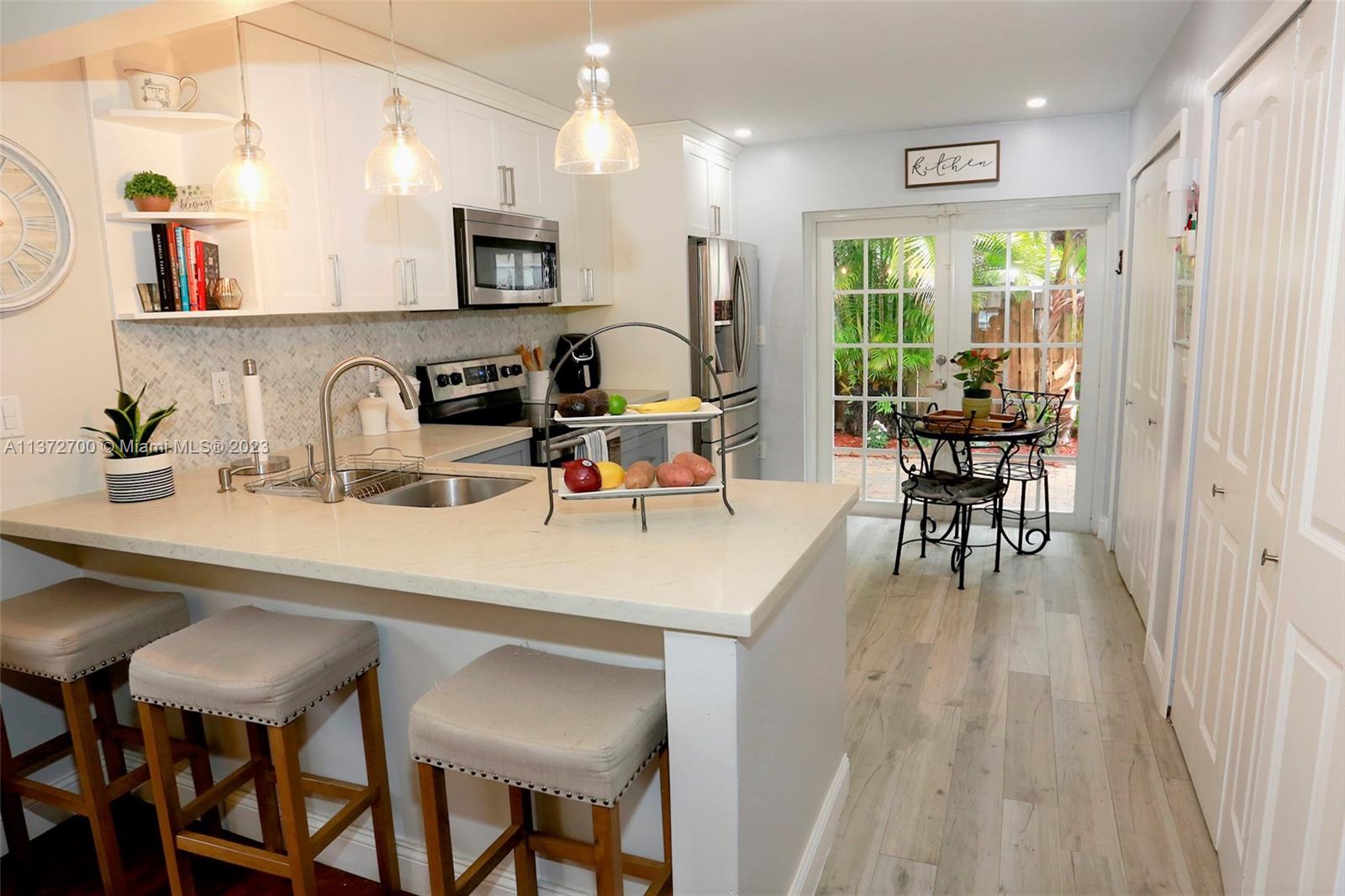 Welcome to your corner home in Village of Doral Pines! Very well kept and nicely maintained 3 bedroom 2 bath, one story single family home. This home features high quality vinyl flooring, porcelain flooring, and pavers with landscaping in your private patio oasis. It went through renovations in 2019 including new kitchen with quartz countertops, interior and exterior paint, as well as a new AC. For added safety, it is equipped with accordion shutters throughout. Doral Park Country Club features a gym, pool, tennis courts, restaurant, and a beautiful lake to enjoy.