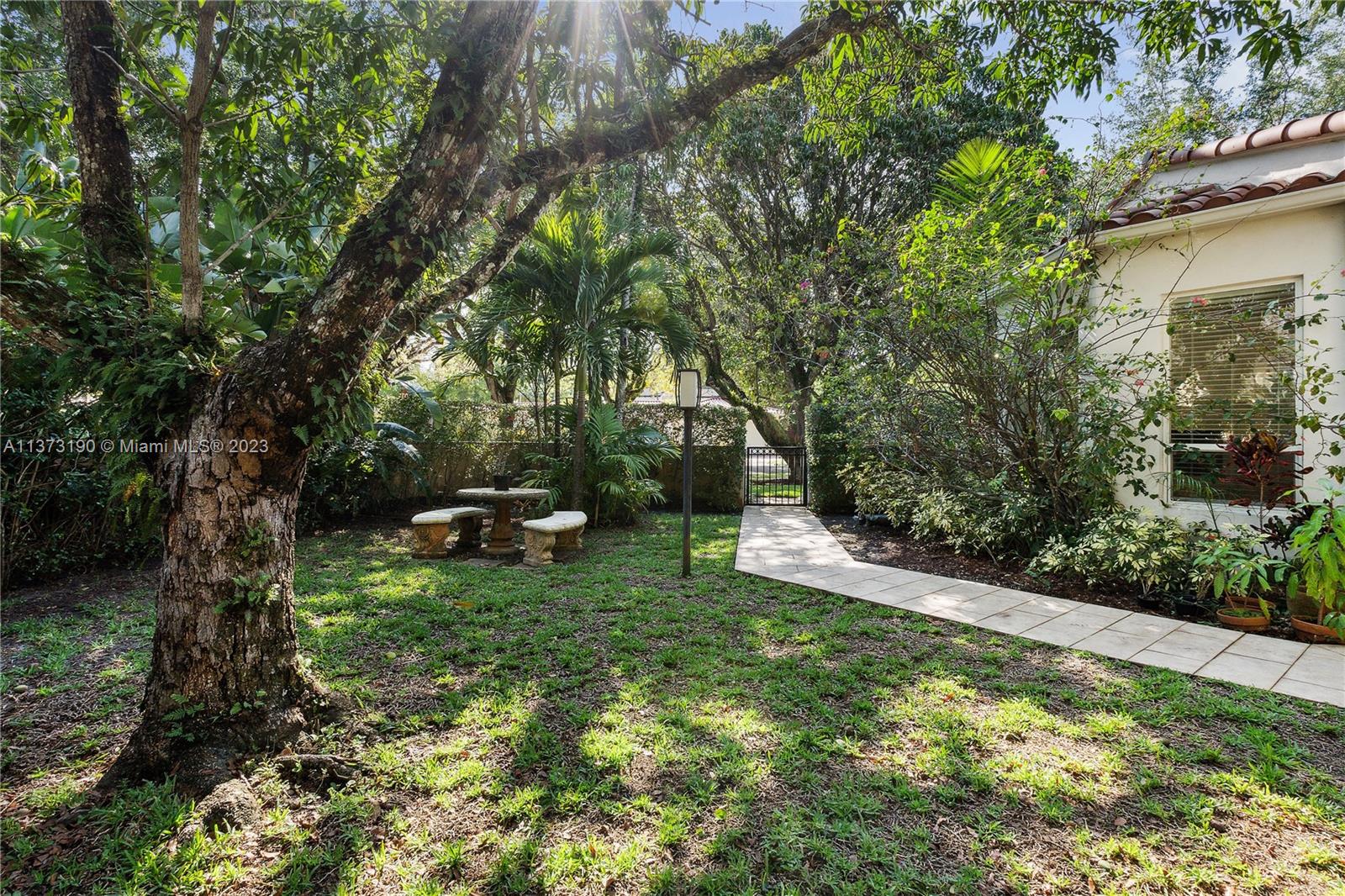 Rare Find, this 3-bedroom 3-bath gem sits on a 13,500 SqFt corner lot on one of only two houses on this block. Located in the prestigious "Golden Triangle" of Coral Gables. Primary bedroom has 14’ ceilings with a gorgeous Wenge wood built-in closet. One extra small room can be used as a den or office. Updated in 2016 including impact windows & doors. Beautiful kitchen w S/S appliances perfect for entertaining. Spacious and bright living area w/ a working chimney. The private walled-in backyard has fruit trees, along with nicely manicured landscaping that surrounds a built-in fountain w/ room for a pool. Very quiet street minutes away from downtown Coral Gables and Biltmore Hotel & golf course.