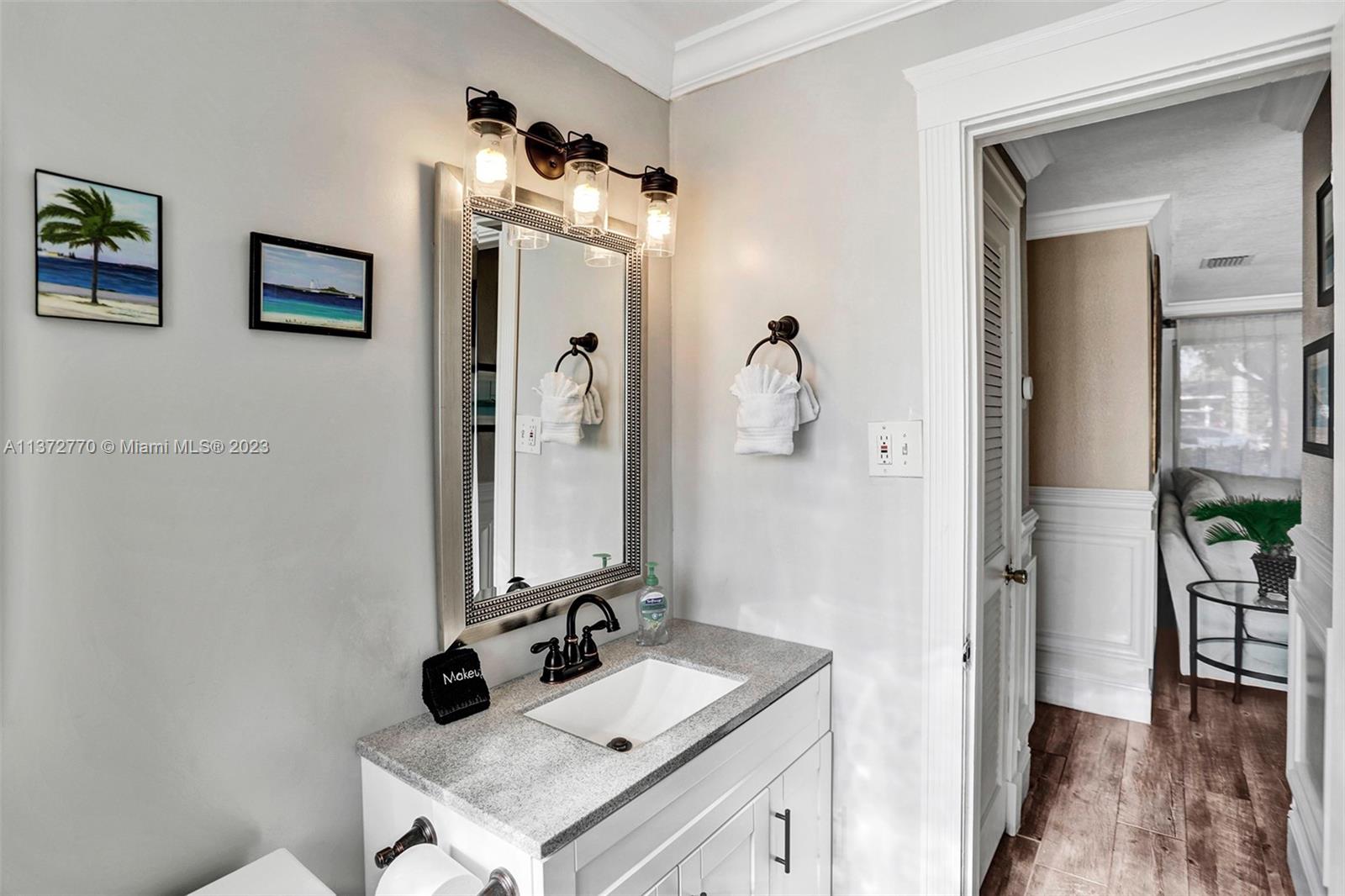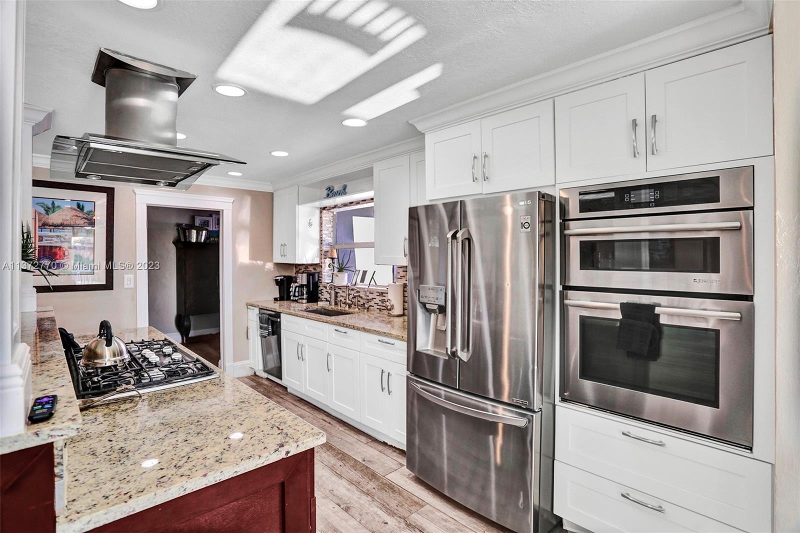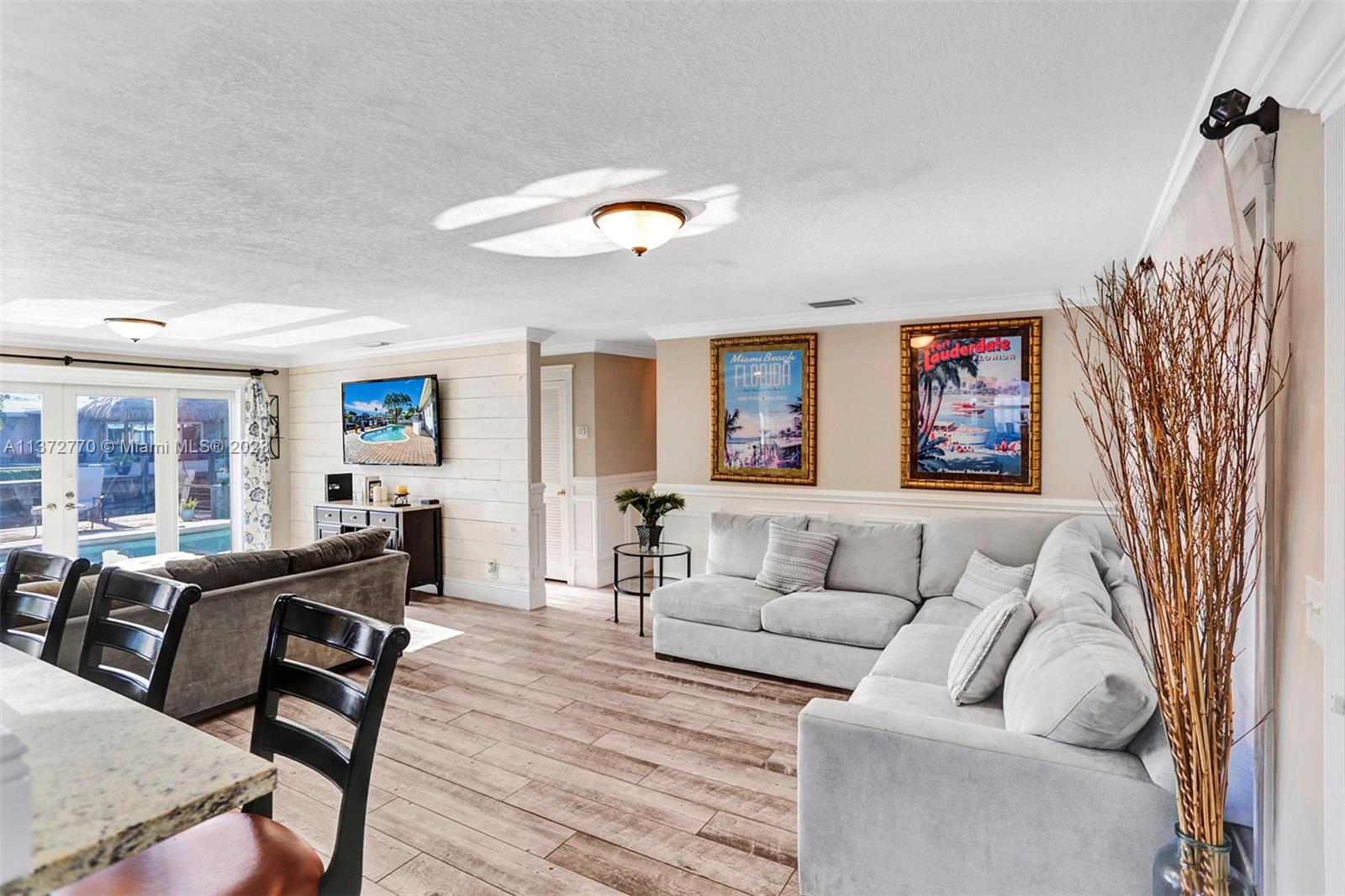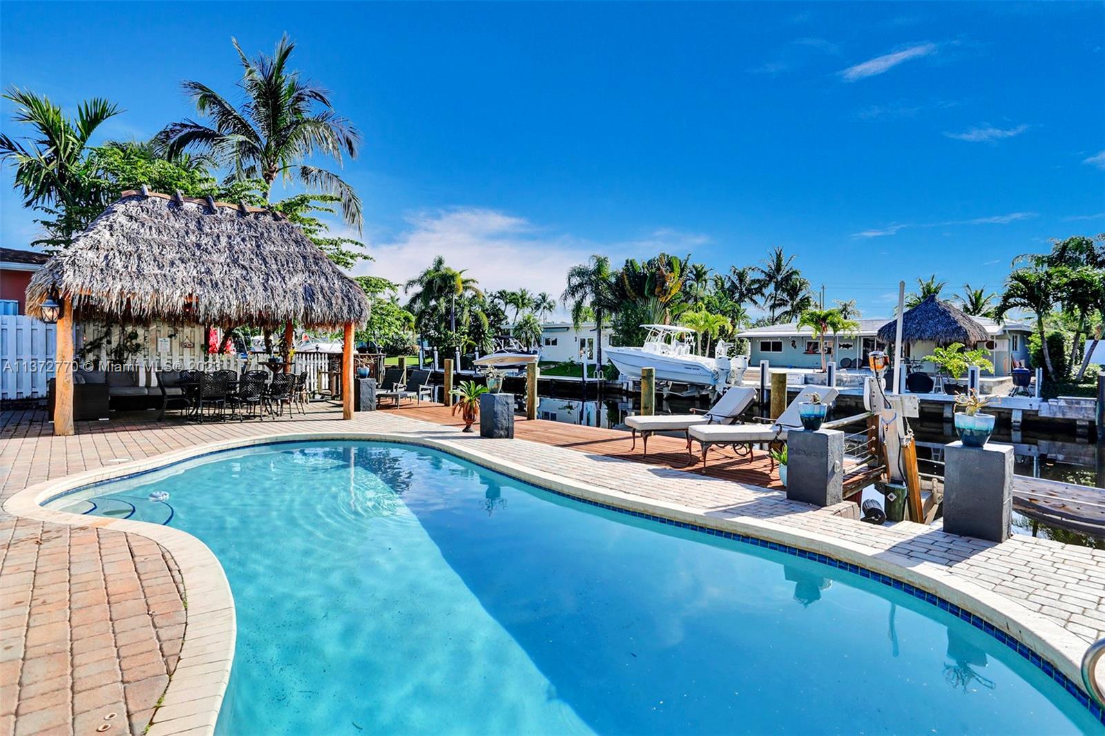 Boaters Delight! Come see this beautifully renovated 3 bed 2 bath home with 1 car garage on 70ft of waterfront with ocean access & boat dock. This home offers a large kitchen with granite countertops, separate office, great room, and a dining room overlooking the pool and canal with tile throughout. Entertain your guests under the Tiki hut on the large concrete deck. Newer roof and AC. 2 Fixed bridges to the ocean. Can be sold fully furnished turn-key