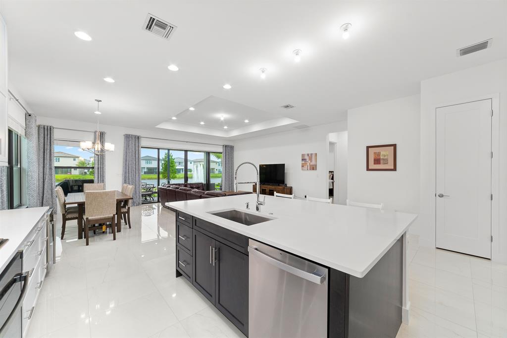 Stunning 5 bedroom 4.5 bedroom Samoa model located in the highly sought after gated community Lotus of Boca. Property has Over $200k in upgrades! 10' Ceilings with coffered ceilings and abundant natural light. The kitchen boasts quartz countertops, Stacked Cabinets, Gas Range, 48'' GE Refrigerator, Pantry with roll outs, All drawer base cabinets, over 35K in upgrades in Kitchen alone. Primary bedroom on first floor. This Modern Contemporary open concept design overlooks the Lake with a Fountain view. Extra large premium Lot, Extended dining area, and Covered Patio. The backyard has gas and electrical connections ready for a pool. Too many upgrades to list. Only a 2 minute walk to the Club House, Pickleball, Tennis, Restaurant, Resort Style pool and lifestyle.