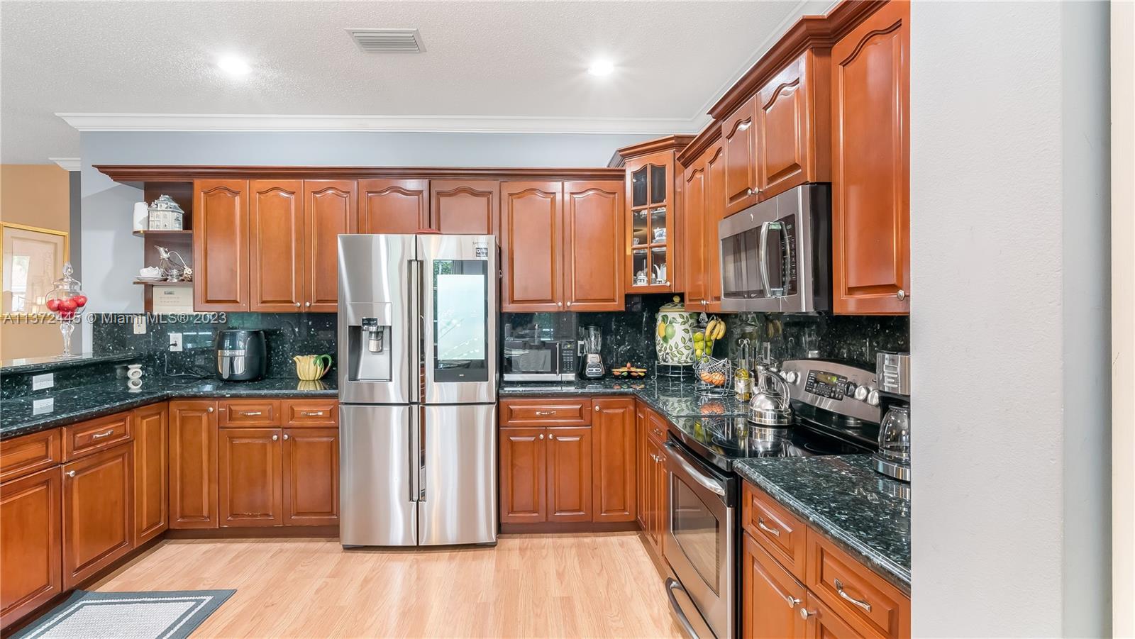 Coming soon in Weston, Florida, a magnificent real estate listing that will take your breath away! This property boasts five spacious bedrooms, a sparkling pool, and over 3,000 square feet of luxurious living space. Situated on a peaceful cul-de-sac in a gated community, this home offers the ultimate in privacy and security. The home's exterior features a beautifully manicured lawn, a paved driveway leading to a three-car garage, and a stunning pool area perfect for relaxing and entertaining guests. As you step inside, you'll be greeted by a grand foyer with high ceilings, elegant chandeliers, and marble floors. The formal living room features large windows that let in abundant natural light, and the adjacent formal dining room is perfect for hosting family dinners and holiday gatherings.