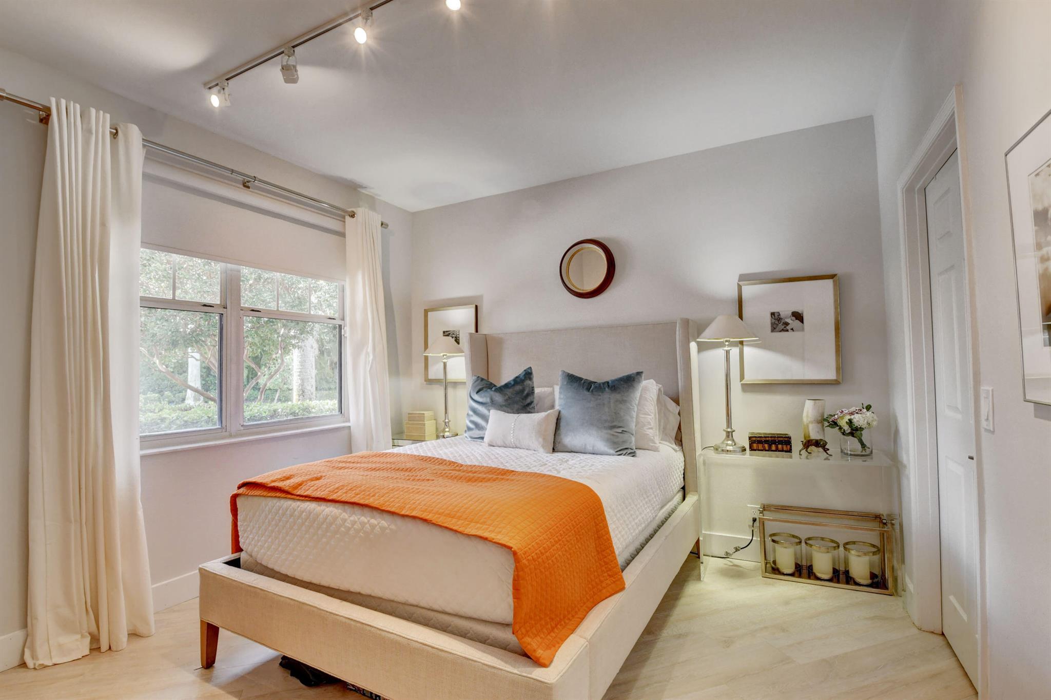 Located within Broken Sound's beautiful village of Timbermill, discover this lavish 3 bed, 2 bath townhome. Sophistication welcomes you from the moment you step inside the gate of this contemporary paradise with smooth walls & vaulted ceilings. The modern kitchen features quartz counters, soft close cabinets/drawers & breakfast area with brilliant natural light. The luxurious primary suite with generous walk in closet has a stunning bath with marble tile, floating vanity, frameless shower & gold finishes. The professionally designed 3rd bedroom has been transformed into ultimate office space with mother of pearl backsplash & custom cabinets. Experience breathtaking sunrises from the east exposure of this exquisite backyard surrounded by Espalier Lattice, porcelain tiles & astroturf.