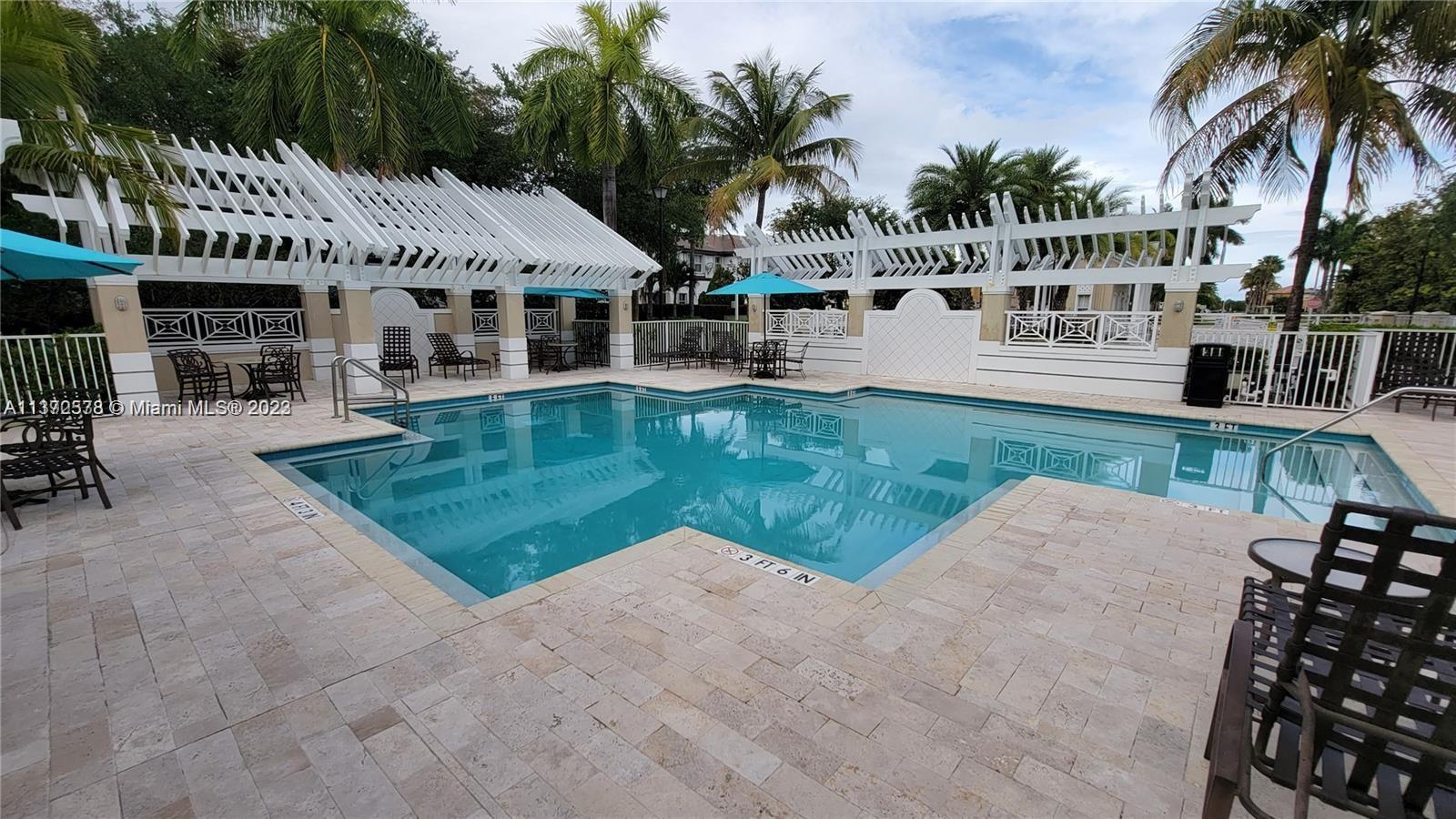 Townhouse in Doral with 3 bedrooms, 2.5 baths, located on a cul-de-sac with lake views. Safe & Small community with private security, swimming pool, gym, children's park, etc. Seconds away from the Turnpike and with easy access to local shopping centers. Property has garage space with 2 parking spaces out front. Balconies on both the front & back of the home. Inside, the style very contemporary with a cozy and comfortable feel while having plenty of space. Sunlight is abundant in the home during the day and the feeling of safety at night with the home nestled on the cul-de-sac. For added measure, the community is gated with active security.
