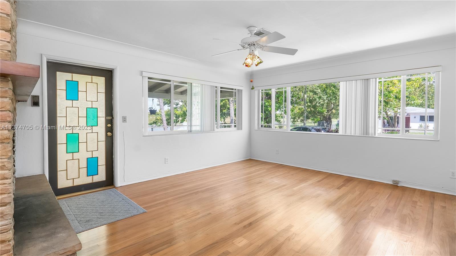 One of a kind home! Located on a quiet dead-end street w/expansive views of an open field, this home is situated on one of the largest lots in Hollywood Terrace. Lg living room w/working fireplace, custom oak bar w/matching bar stool & built-in wine rack. Formal dining room, family/sitting room off deck & patio & movie theater-style room. Spacious home offers 2 large master bedrooms, 2 guest bedrooms & 3.5 baths. Featuring some impact windows, electric roller shutters on both patios, an updated electrical panel in 2022, brand new A/C units & an oversized 2 car garage w/room for a 3rd car! Beautifully manicured landscaping on an all fenced in backyard. Enjoy morning coffee on the spacious front porch or screened-in patio and be mesmerized at the amazing sunset from your own private deck.