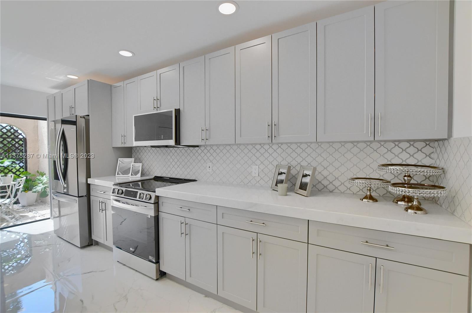 VERY RARE 2 story townhome in Boca Lago with water views & gourmet kitchen. Must see to believe! Welcome home to this unique and bright home on the water in Boca Lago. Move right in to this fully and tastefully remodeled home with 2 bedrooms and 2.5 bathrooms. The open concept design is highly specialized for the community and a rare find at this price. Porcelain tile adorns the first level perfect for entertaining or cooking in the chefs stainless kitchen with quartzite countertops. Plenty of light and shade make this home a perfect balance. The second floor houses bedrooms and 2 bathrooms for added privacy. No membership is required at Boca Lago and the Pines section has its own clubhouse, pool, social activities and more. 55+