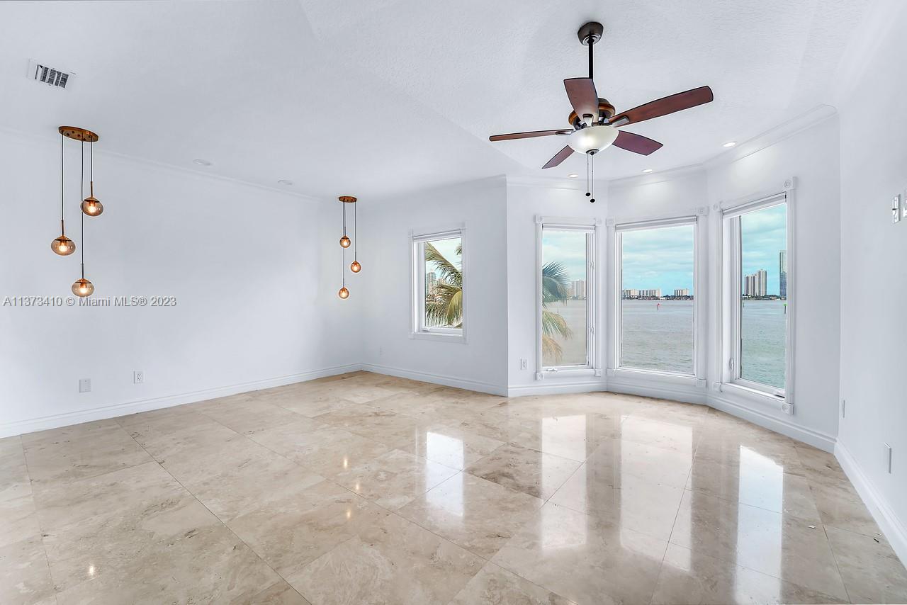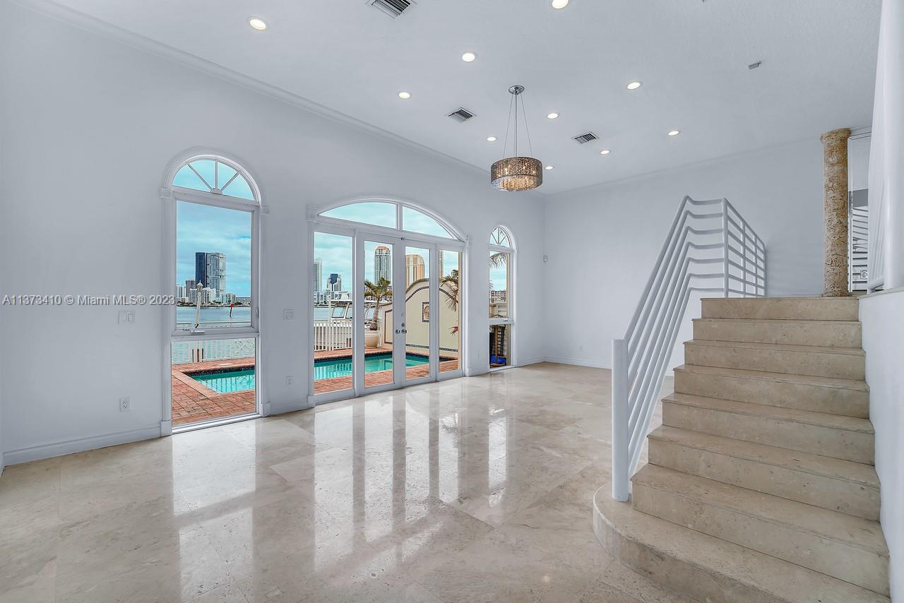 BOATERS PARADISE. Breathtaking million-dollar views day and night. Dock and private pool. Stunning 3 bedroom + den/3.5-bath bayfront townhouse with private elevator, situated in the gated community of Eastern Shores. Boasting 35 feet of private dockage, this property offers unparalleled access to the water. The location is unbeatable. Minutes to Haulover Inlet, less than 2 miles to the beach, a bridge away from Sunny Isles, and only minutes away from the best restaurants and shopping in Aventura and Bal Harbor. The property also offers a 2-car garage and 2 additional parking spaces up front. Unique opportunity to own the best views of the bay and stunning nighttime vistas of the Sunny Isles skyline, this townhouse offers a unique opportunity to experience the ultimate waterfront living.