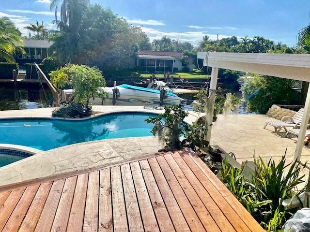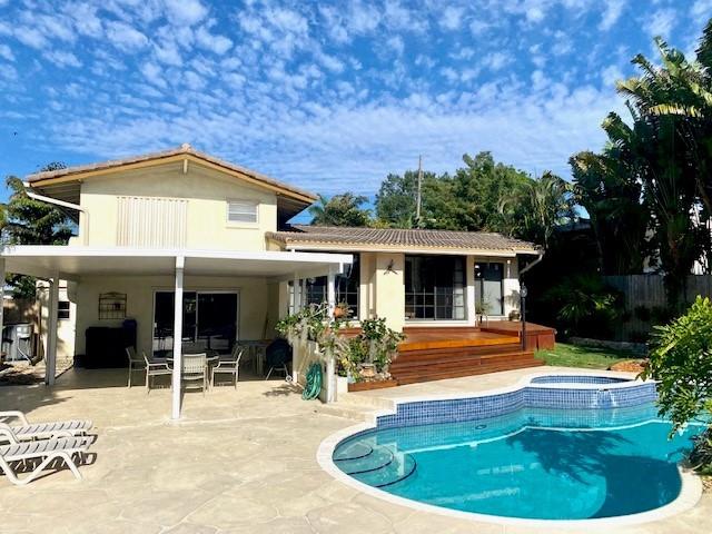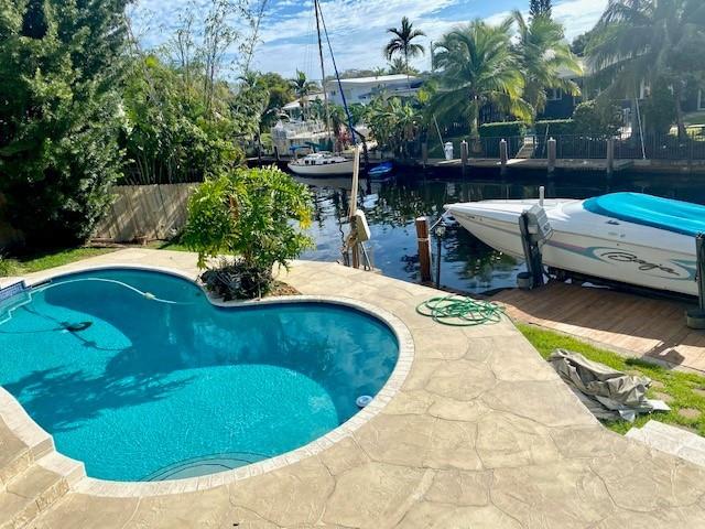 Step into the Tropical Paradise of SW Ft Lauderdale known as LAUDERDALE ISLES. This waterfront 3 bedroom 2 Bathroom Tri-Level home comes with circular driveway, Pool and patio deck over looking Ocean Access canal with boat dock. The covered patio area features a built in Barbeque that makes this home superb for outdoor parties and entertaining. The wood deck beside the below ground pool is perfect for sunbathing and relaxing in the S Florida Sunshine. Boat Owners will love the NO FIXED BRIDGES deep water and their own private dock behind the house just yards from the New River. Width of property on canal is ~65'. Existing Wood Dock is ~35'. EZ access to 595/95/Turnpike, 1 car garage, Tile Roof 2006, HW Heater 2022 A/C is 2016 Call to schedule a Showing today. This home wont last long.