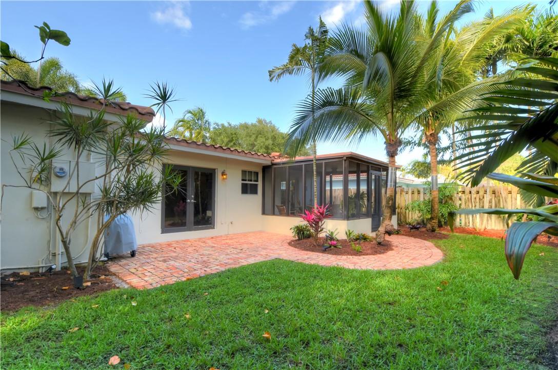 This updated home is located on a quiet, tree-lined street in beautiful Poinsettia Heights just blocks from the action of Wilton Manors, fabulous restaurants and aquatic fun on the river. Both the interior & exterior of the home is tastefully designed! This home features an open floor plan w/ a spacious kitchen overlooking the dining and living area w/ a decorative vintage fireplace. The kitchen features Martha Stewart cabinets, stainless steel appliances and quartz countertops. This home is nestled among fruit & native Florida trees, professionally landscaped & beautifully lit at night. The primary bedroom has French doors to a wonderful screened patio in the lush tropical backyard. The home also features a tankless water heater, newer appliances, & HVAC system. Pool plans are available.