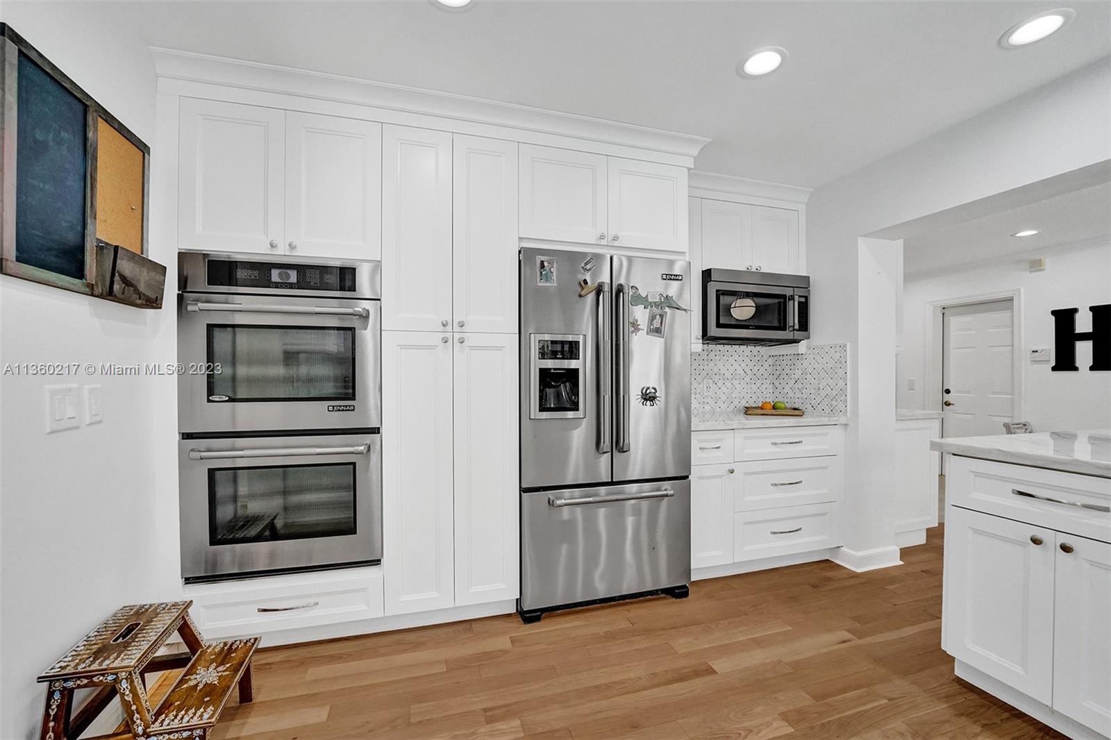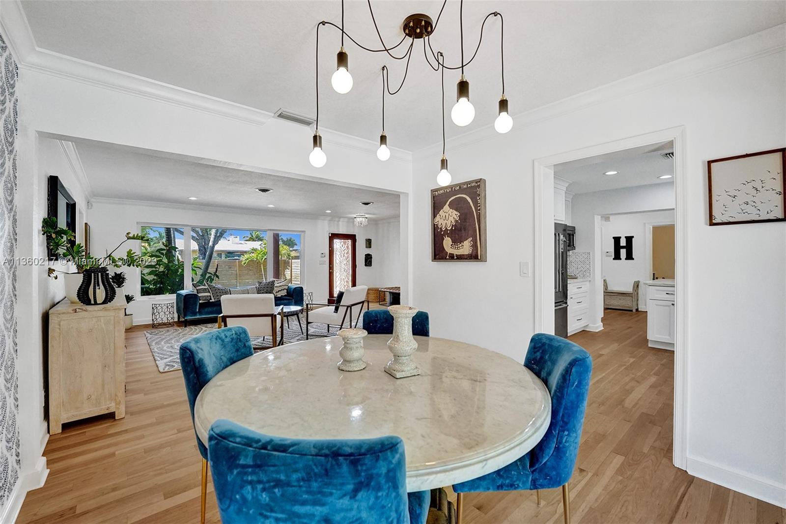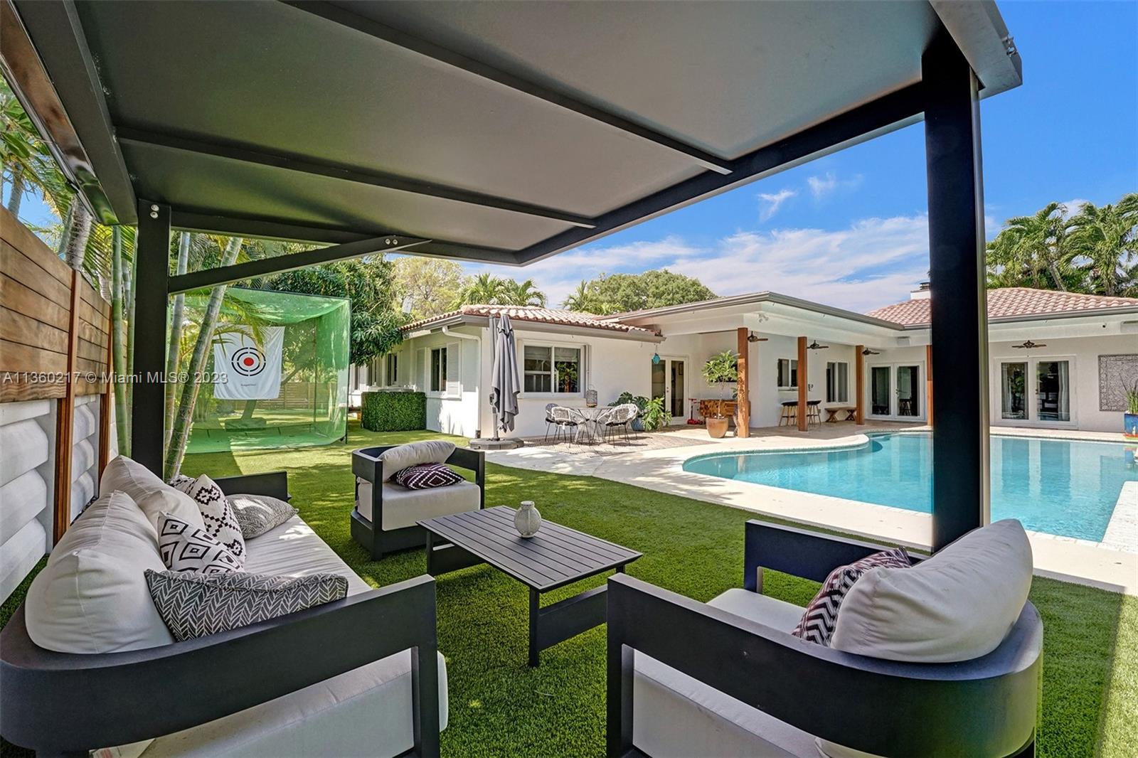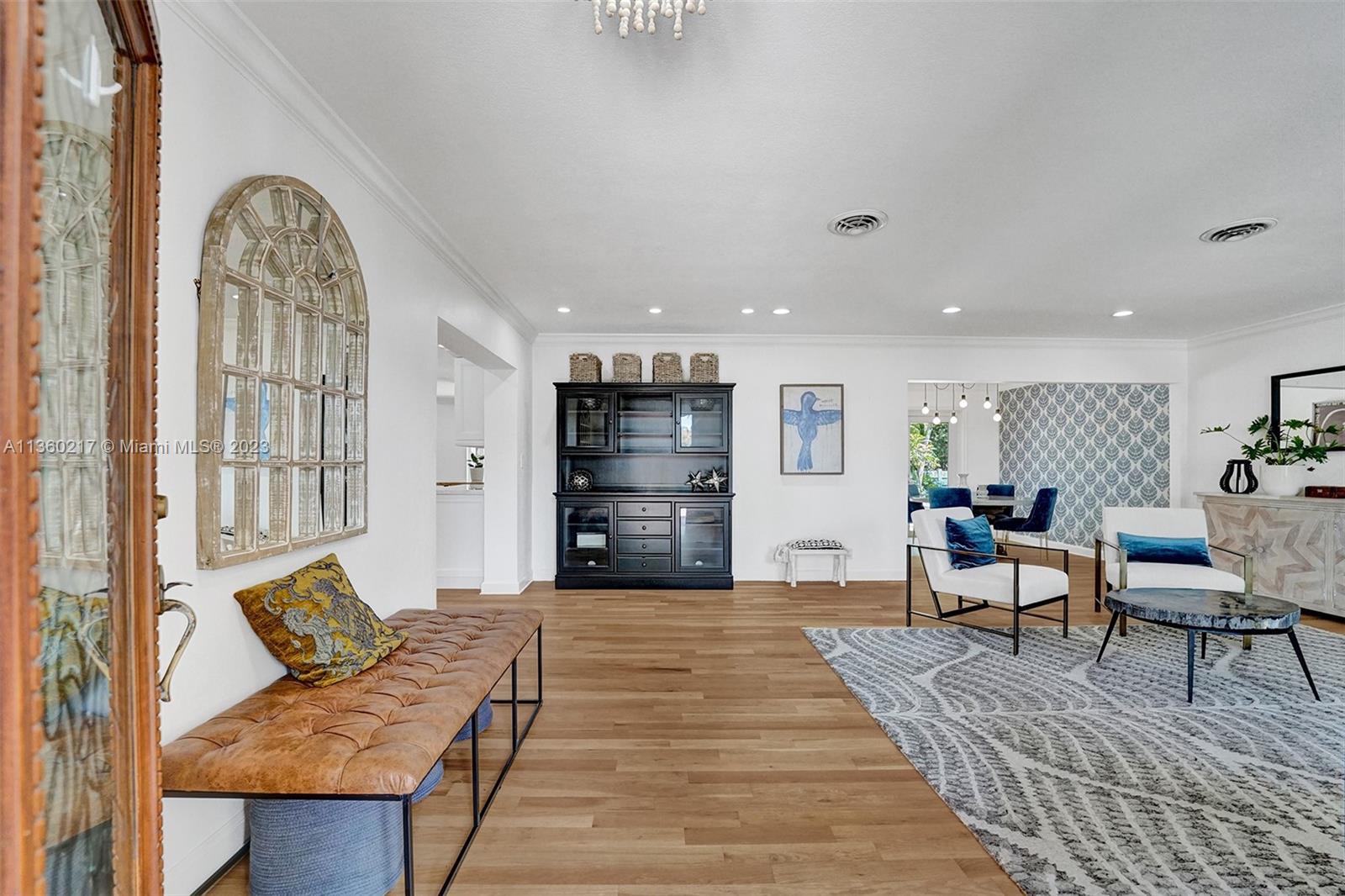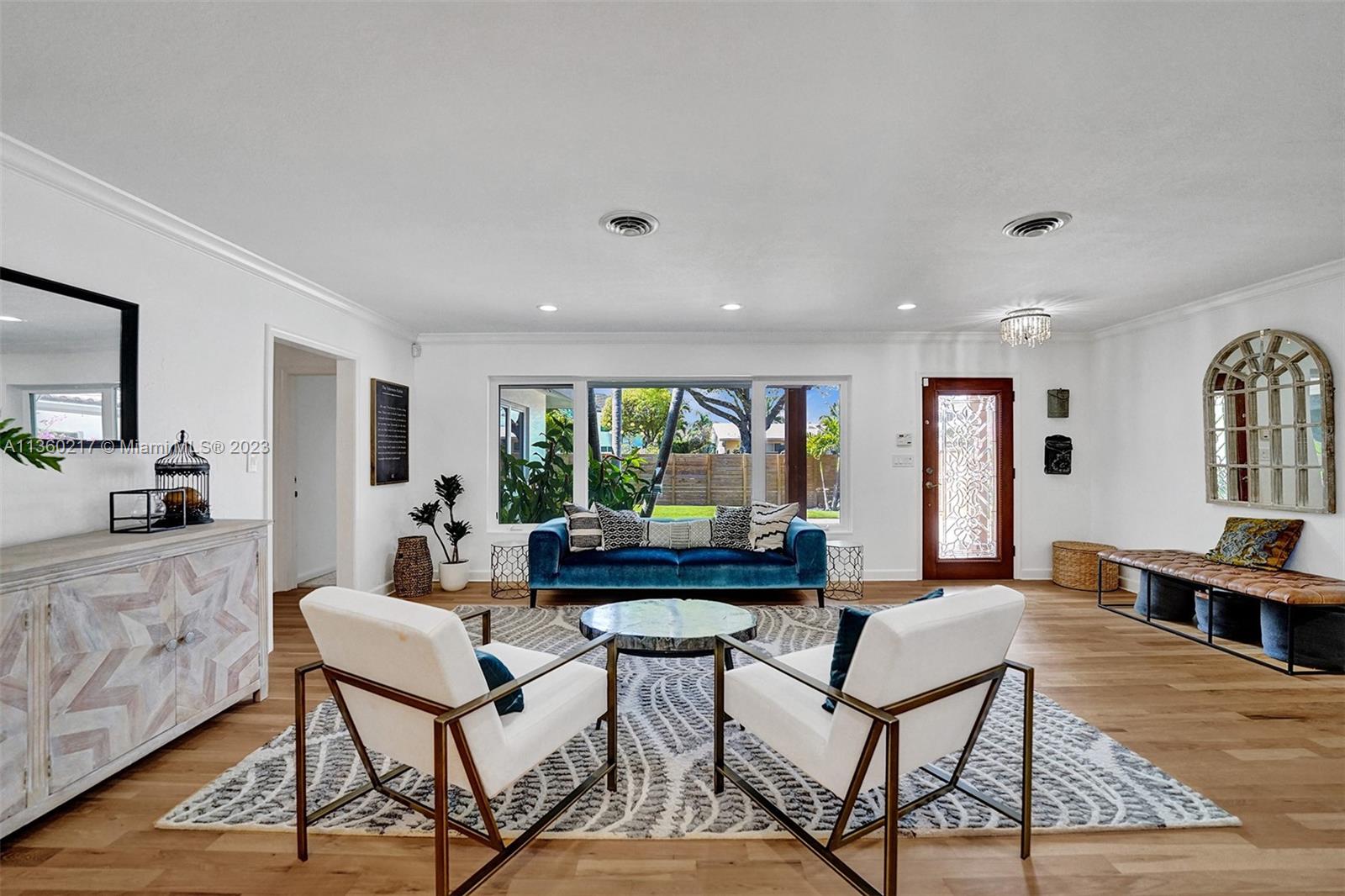 A pristinely located estate w/large private paradise wraps entire property. Interior boasts refinished white oak wood floors and recessed lighting throughout. Chef’s kitchen w/slow-close Italian cabinets, quartzite counters, JennAir appliances + bar. Family room w/travertine marble gas fireplace! Master bed w/pool access, walk-in + en suite w/steam shower + expansive vanity. 2 large guest bedrooms, 4th bed is office! Massive bonus playroom/den w/volume ceiling. 2 new HVACs, new electric panel (’21), whole-house generator and H2O filtration system. Tropical landscaping, heated saltwater pool, covered patio, cabana, putting green and expansive artificial turf, Impact windows & doors. Walk to Ocean, Publix, Galleria Mall, Capital Grille, Starbucks, George English Park and Birch State Park.