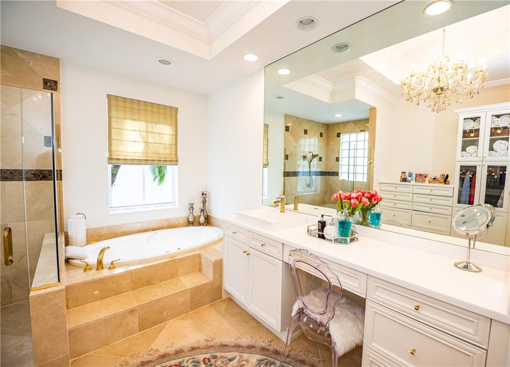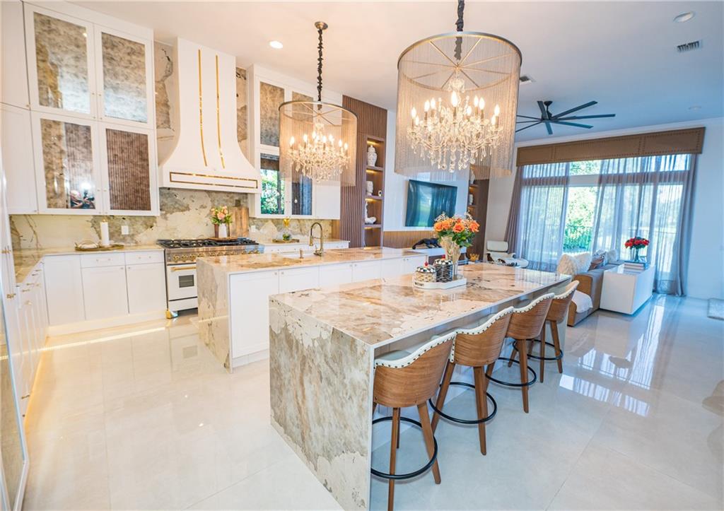 NEW ROOF AND POOL HEATER INSTALLED IN 2022! Introducing this stunning estate in The Oaks. This beautiful lake front corner home boasts 5 bedrooms, 6 and 1/2 baths, home office, loft, extra large circular driveway, & 3 car garage. Steps away from the clubhouse this home was recently completely renovated with professional designer appointed custom details throughout including high end decorative stone finish isles and porcelain flooring, custom decorative moldings, fireplace, custom bar, chef inspired gourmet kitchen and architectural details throughout. Home office with custom built-ins and an oversized loft. Tropical landscaping enhances the unobstructed lake views and the backyard area is perfect for entertaining with its pool, spa and expansive patio.