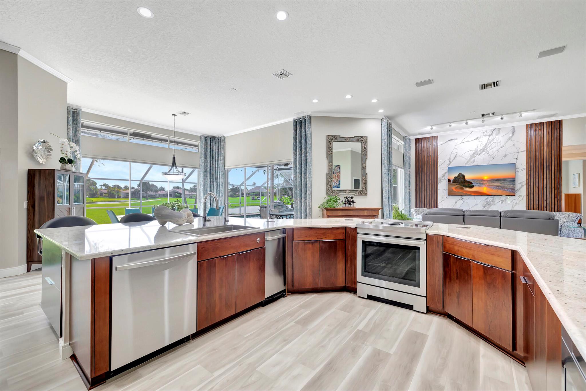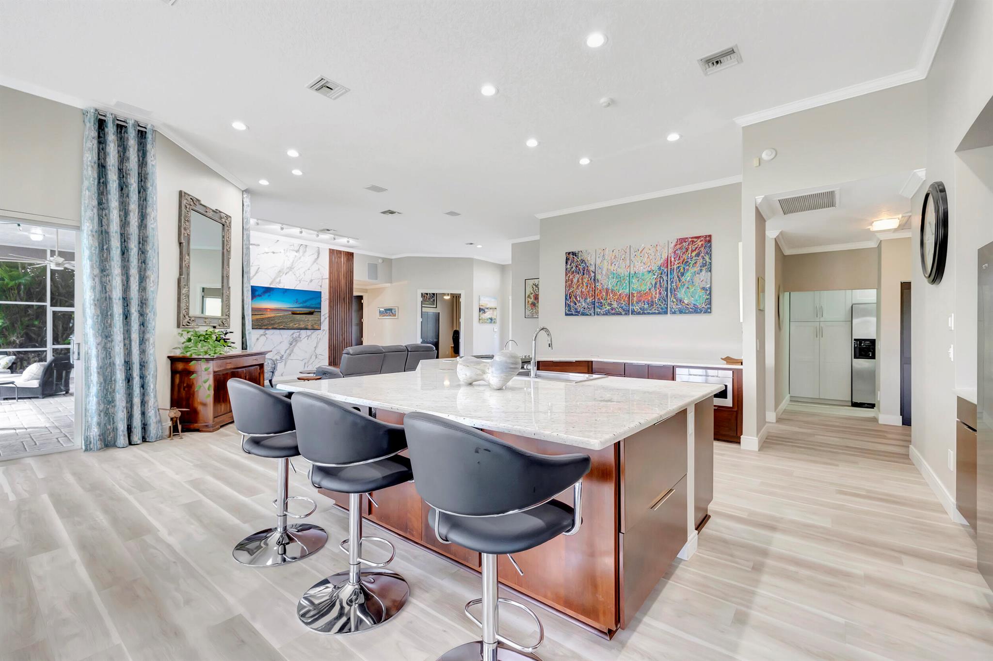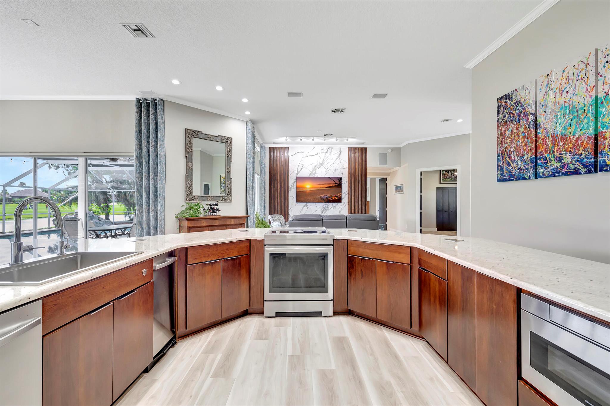 Beautifully updated 3 Bed/4 Bath home plus dedicated home office. Lovely views of the immaculately manicured golf course and TWO lakes. Perfect indoor/outdoor living aside your in-ground swimming pool. Covered lanai space for outdoor dining and even a separate enclosed patio for your guests.. Enjoy your high end chef's kitchen boasting SS appliances, tons of counter space, eat-in dining set perfectly within your open concept living and dining rooms, including a butler's pantry with storage and additional fridge. You have just found your dream home and country club lifestyle. Stonebridge CC is a mandatory membership country club.