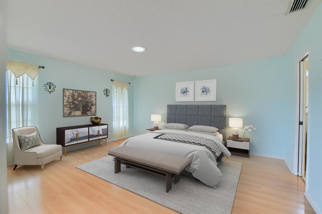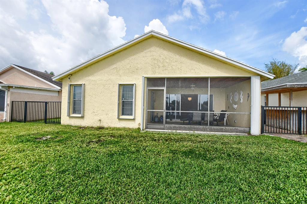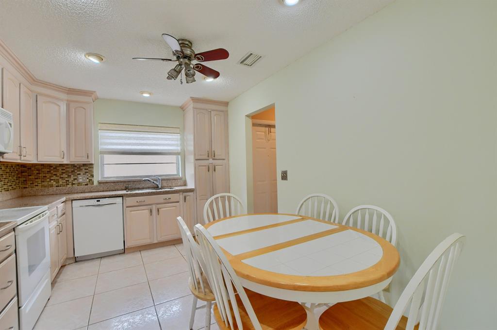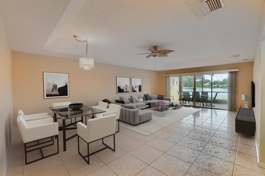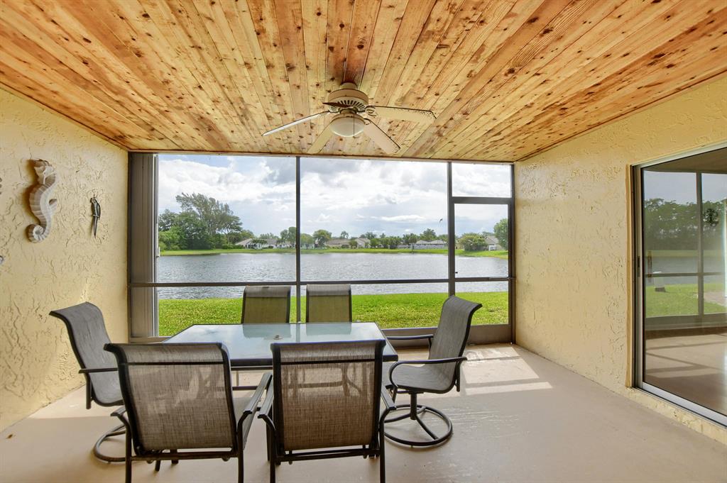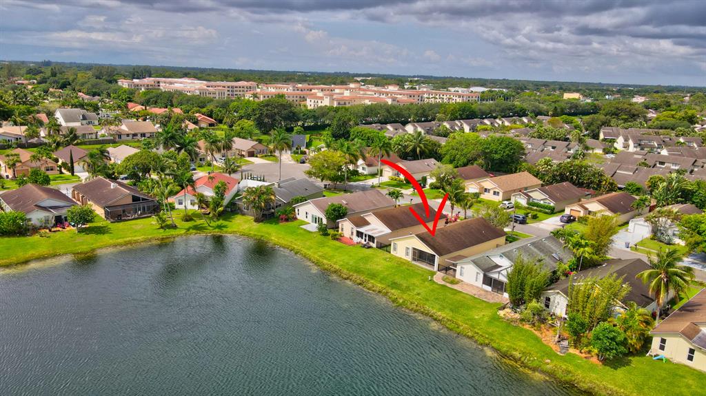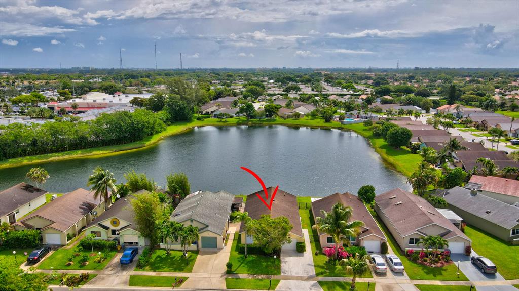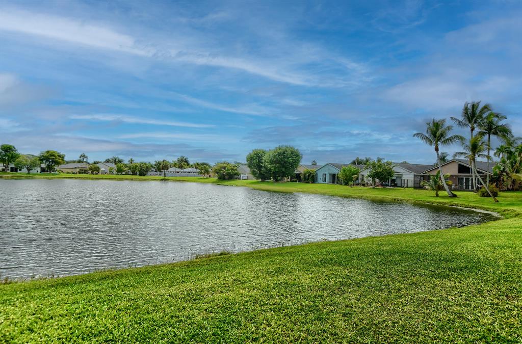 Rarely available lakefront 3br/2ba home in popular Pine Springs in West Boca Raton. Situated on a beautiful lakefront lot and features updated kitchen and bathrooms, tile and laminate flooring, one car garage, and a two car wide driveway. The eat-in kitchen has beautiful wood cabinets and granite counters. The master bathroom has wood cabinets, dual sinks, a tower cabinet, and an amazing multi-zone shower feature. Enjoy beautiful views of the lake from the open great room and the covered/screened patio. This home also has a dedicated electric panel for use with the included generator. $160/month HOA dues include lawn care, community lawn sprinkling, and community pool. Pine Springs is ideally located near shopping, houses of worship, excellent local schools and beautiful beaches.