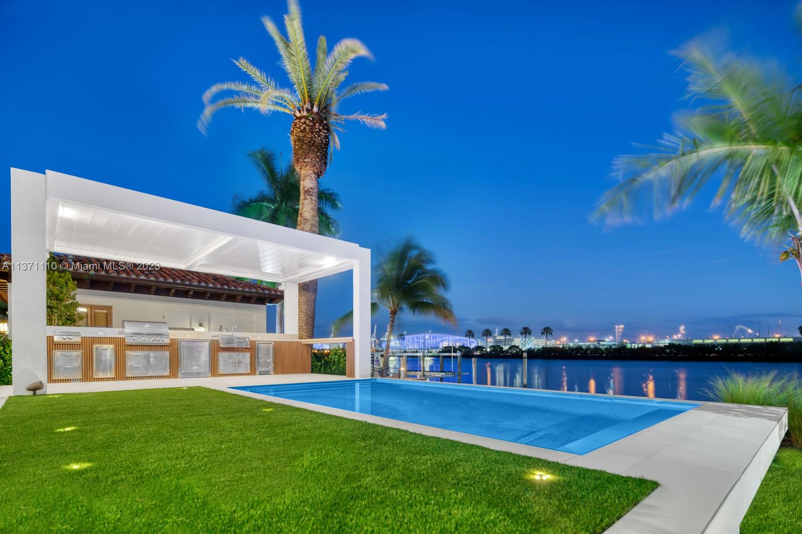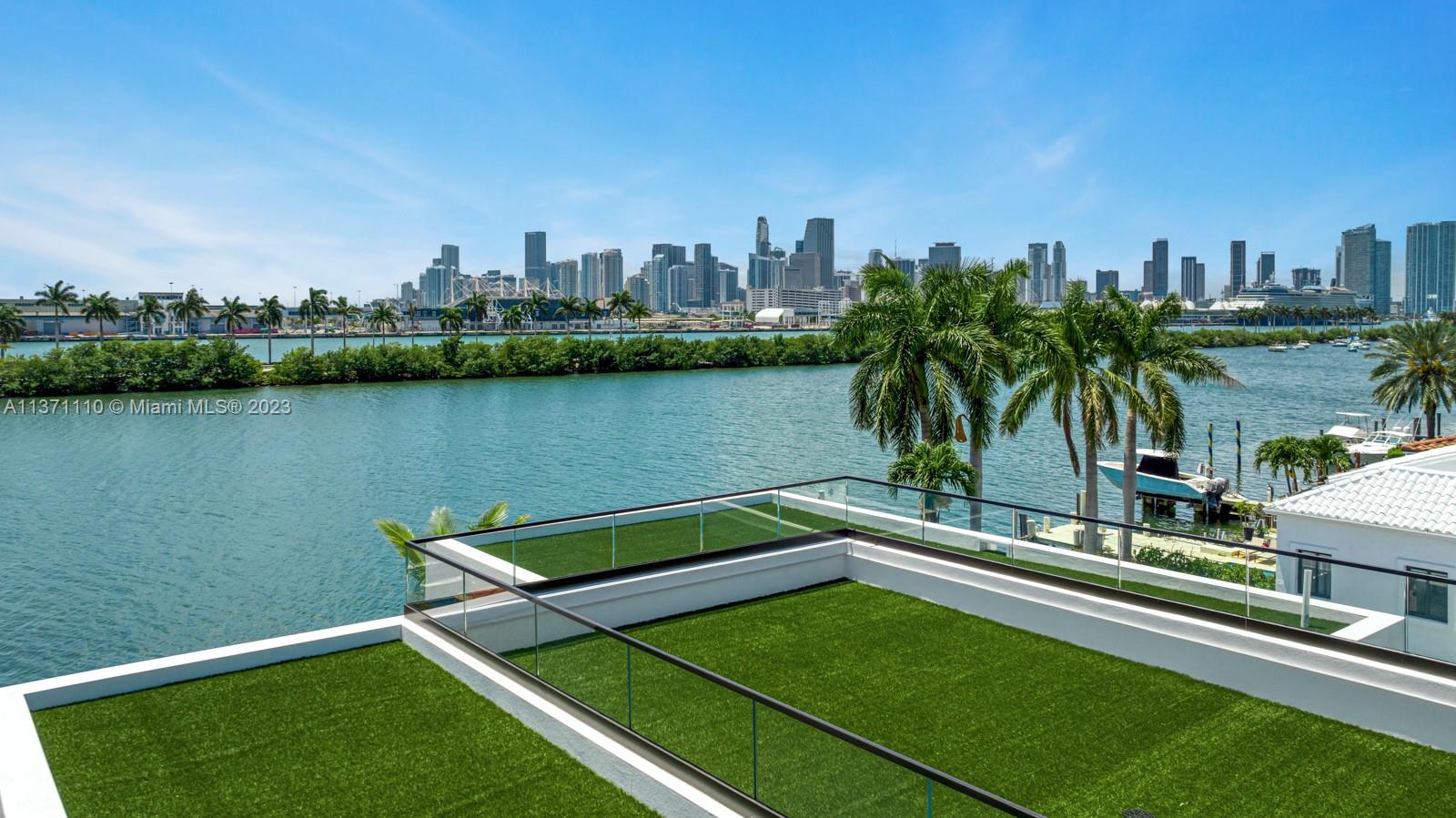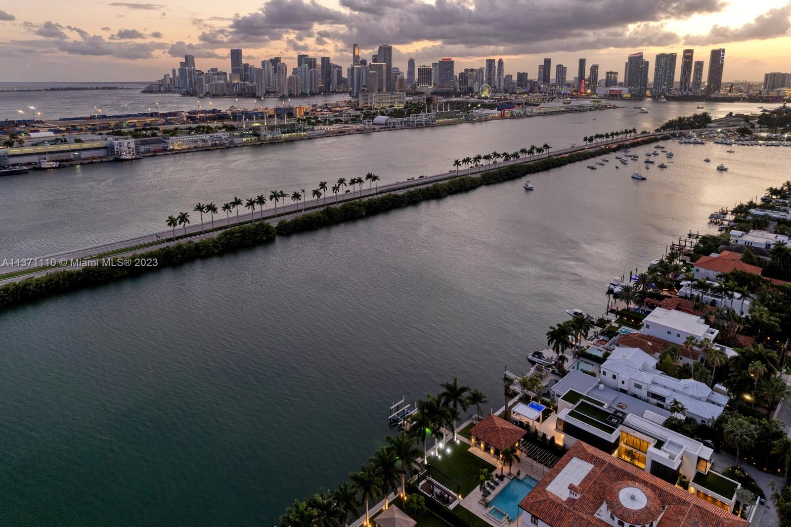 Recently completed and perfectly set on one of the most private waterfront lots in Palm Island, this modern gem is the epitome of Miami Beach living. Boasting 6 beds & 6/1 baths perfectly spread over almost 5,000 SF of living area. Features include glass elevator, floating staircase & ample natural light throughout. The chef’s kitchen is an epicurean delight w top-of-the-line appliances, gas stove & breathtaking water views. Entertaining areas abound indoors or out, by the pool/outdoor kitchen or on the rooftop terrace enjoying spectacular skyline views. With 24-hour police security & steps away from the park, community basketball & tennis courts, this masterpiece provides the utmost in location & privacy while being only minutes from S Beach, Downtown & Miami International Airport.