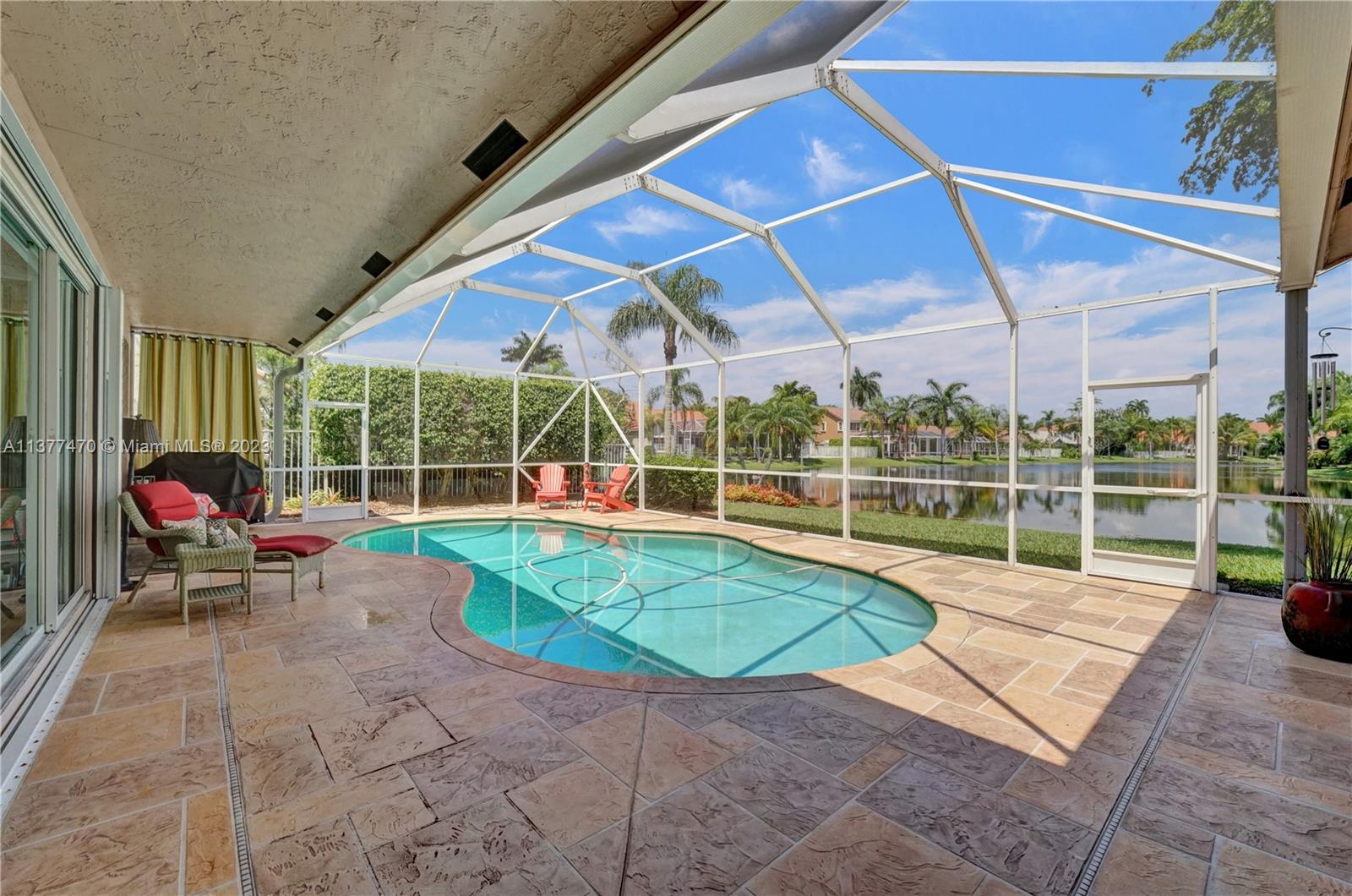 Situated in the small and quaint enclave of Laguna Springs II, this home's character exudes elegance and comfort. Popular Estancia model offering a comfortable layout & room to spare, features a bright interior, high ceilings, plenty of windows and sliding doors. Lower level primary suite with ample closet space and elegant ensuite bathroom with a view. Formal dining w/access to courtyard. Charming kitchen with stone counters and plenty of storage, flexible living/work space and laundry room. Meticulously kept, key updates including cosmetic, functional and structural components. Direct views of waterfront from the screened lanai & free form heated pool. Addl features incl accordion shutters and new breaker panel. Unbeatable location, within close proximity to schools, parks and shopping.