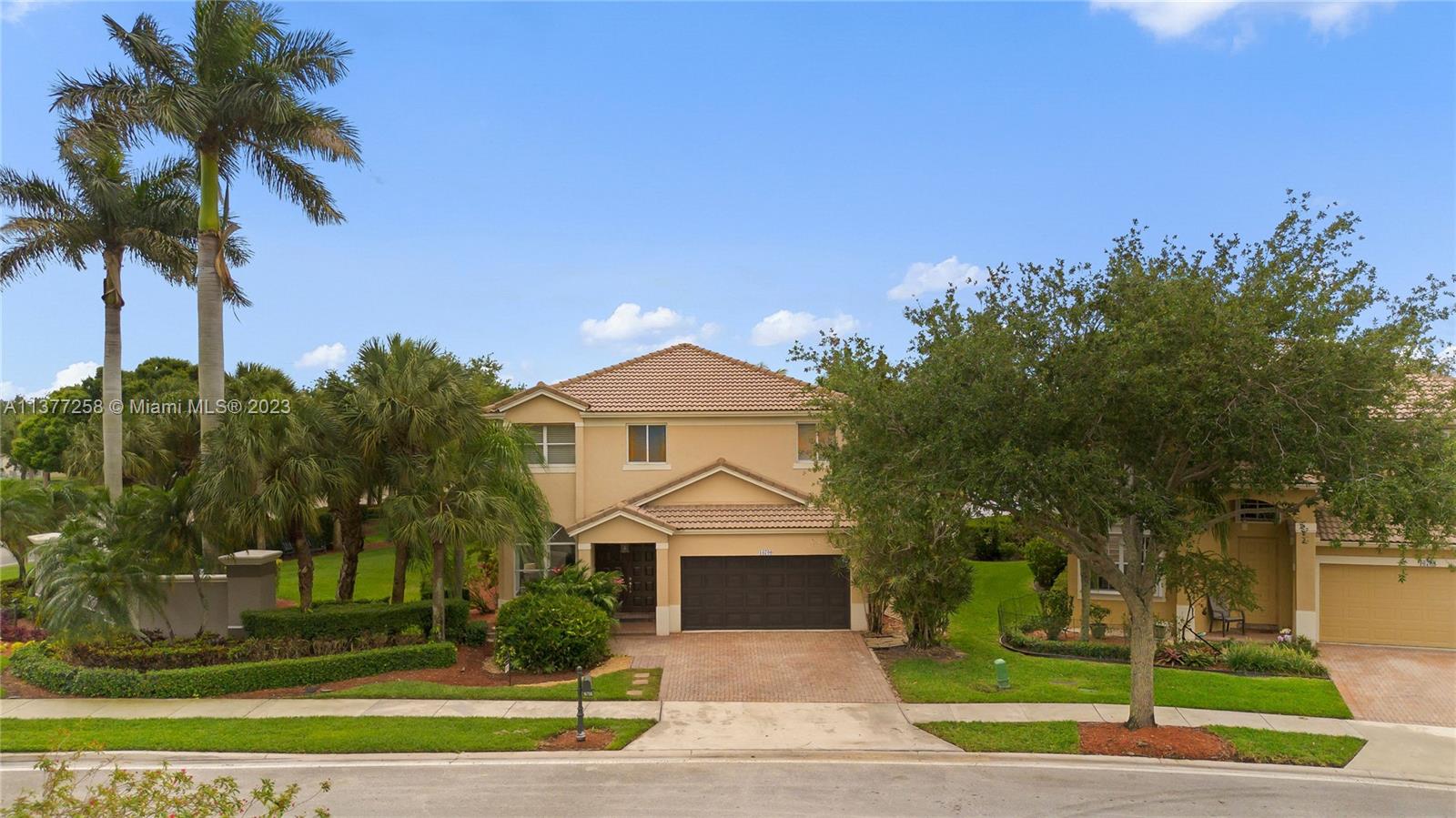 Best buy in Weston! Spectacular pool, lagoon & garden views abound from this two story 4 bedroom, 2.5 bath home located at Sapphire Isle in the Emerald Estates community. Features include updated kitchen & baths, marble floors downstairs & wood floors upstairs. Large primary suite offers sitting area, private balcony overlooking the pool and lagoon plus large walk-in closet & second closet, spacious primary bath includes dual vanities, tub & separate shower. All bedrooms are upstairs. Home is on a large fenced corner lot with meandering walk paths through lush, tropical landscaping. Community amenities include swimming pool, fitness room & playground. Outside the gates is Emerald Estates Public Park w/tennis & basketball courts, picnic pavilions & more. Furnishings are virtually staged.
