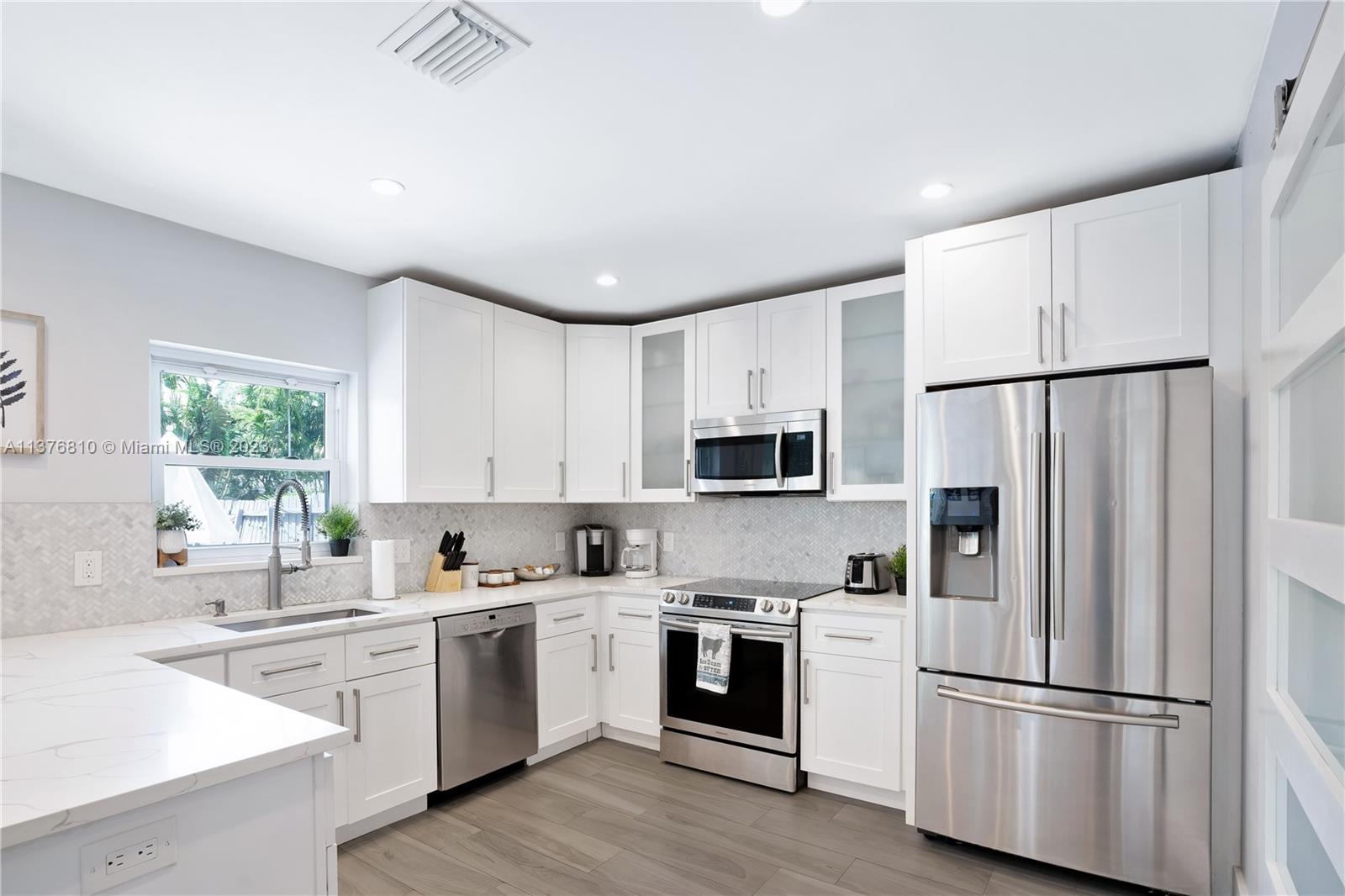 GREAT AIRBNB INVESTMENT. MODERN 3/2 Home w/HEATED POOL in Poinsettia Heights. Spacious layout featuring elegant porcelain tiles, quartz countertops, high-end stainless steel appliances, IMPACT-windows & doors, designer bathrooms, laundry room, newer A/C, recessed lighting. Enormous backyard Pleanty of opportunity to even install a Shed to create a Game Room, get creative & make more $$ Plenty of space to relax & entertain. Already Licensed & Operating as a Profitable AIRBNB. Furniture NEGOTIABLE.