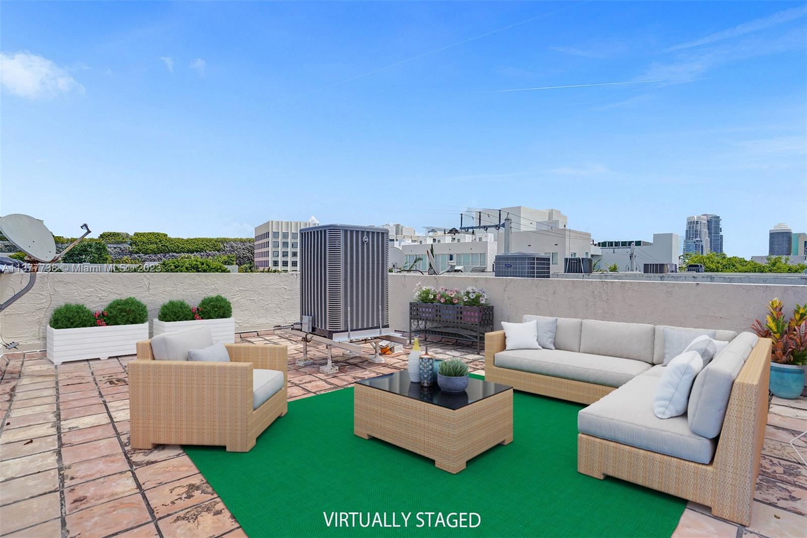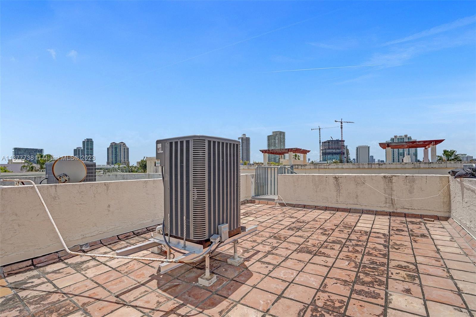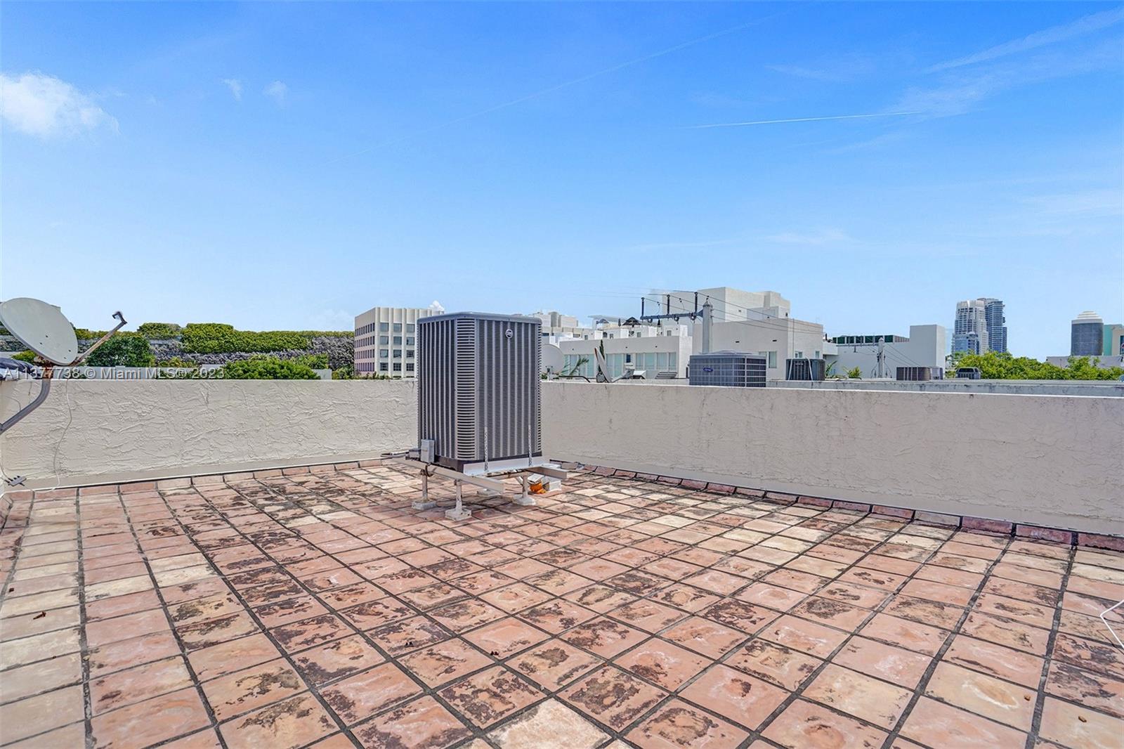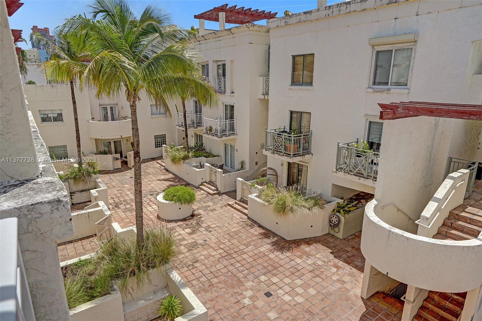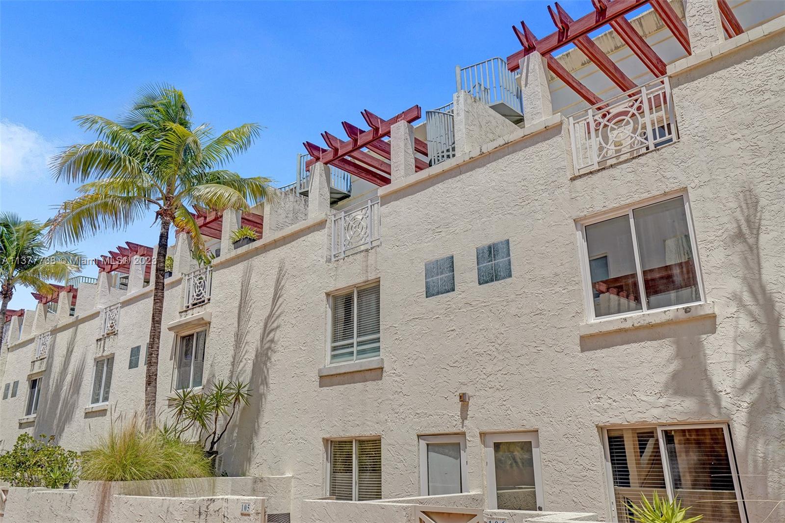Rare opportunity to own a 4-story townhouse 3 bed/3.5 bath with private rooftop in charming gated Villas at South Beach Condo. This spacious unit with tiles throughout (carpet on stairs), just waiting for your personal touch, features: on the first floor an entry door, 1 car garage, washer/dryer, new A/C, and 1 parking outside the garage; on the second floor the main courtyard entrance with patio, living room, kitchen, powder room, dining room; on the third floor 2 bedrooms each with their own bathroom; on the 4th floor a large main bedroom with balcony and bathroom. 3 parking spots - 3rd parking spot in common garage currently leased until 1/31. Located in the heart of South Beach, three blocks from ocean, restaurants, and shops. Complex renovations starting 5/2023. Sold As-Is.