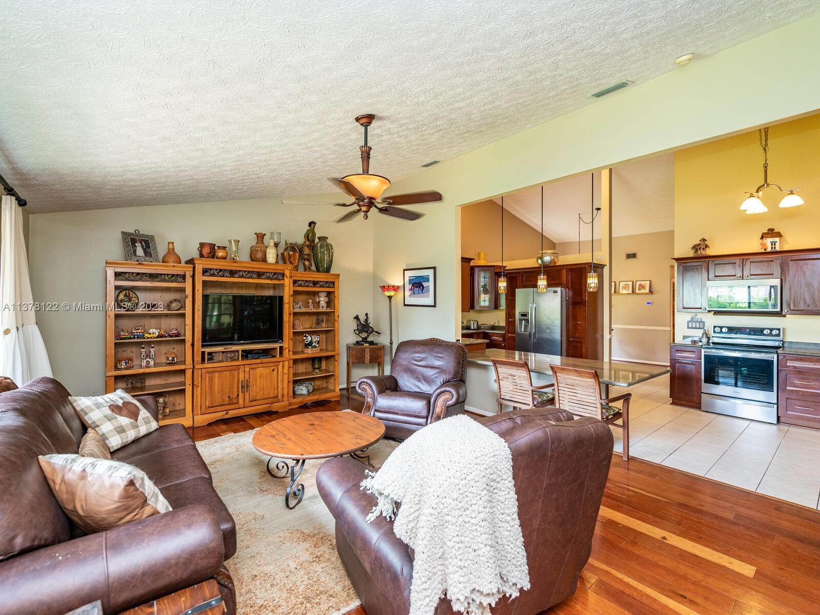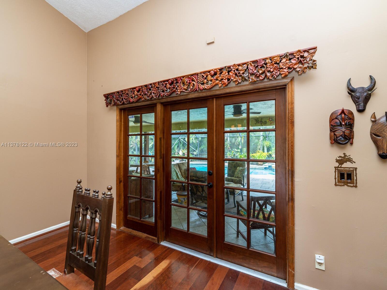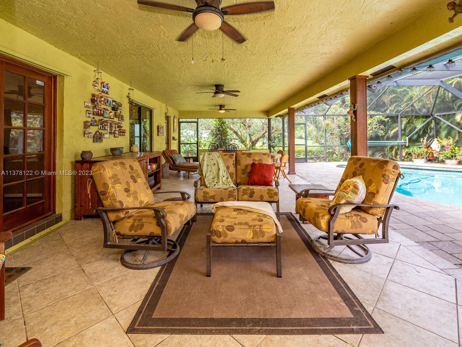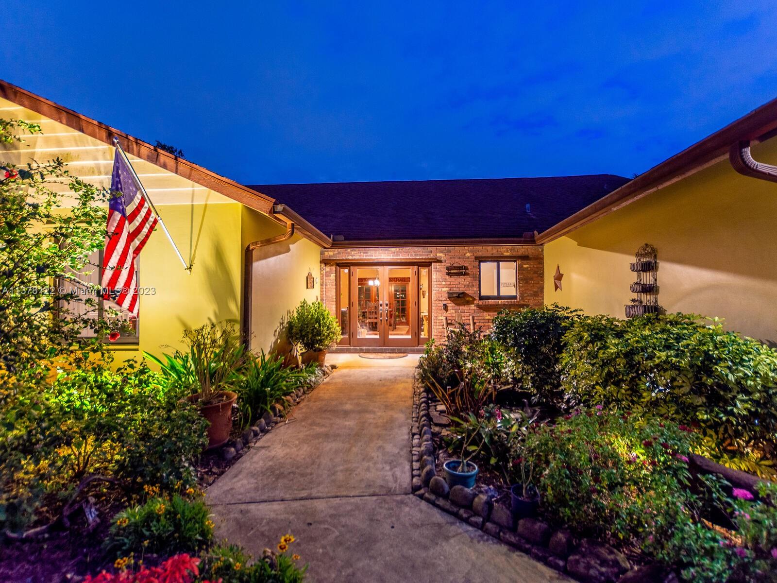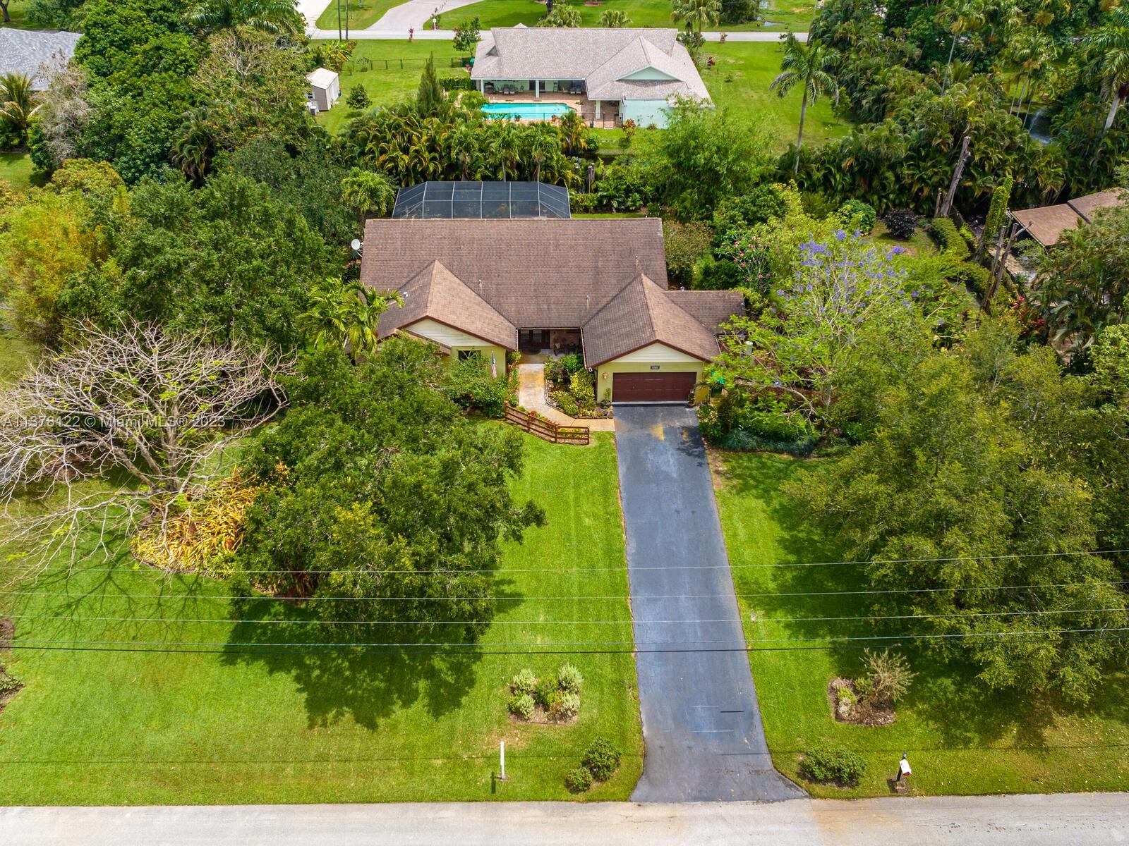 Open House Cancelled!!! Contract accepted. Open to Backup offers Gardener's Paradise. Welcome to this fabulous home situated in a pocket of custom homes zoned for residential/agriculture. Grass puppies welcome!! Bring your horses, chickens and goats. Rural feel, yet you can walk to shops and dining. No cookie cutters here. This home boasts 4 bedrooms, 2 1/2 baths, and 2 bonus rooms. Vaulted ceilings. Real wood floors. Impact windows through out. Three sets of French doors. Generous screened patio and free form caged pool. This builder's acre lot chock full of tropical plant life. Mangoes, Bananas, Pineapple, Kumquat, Jacaranda, Frangi Panis, Sweet Almond and so much more. Don't miss the orchids mounted in the trees.