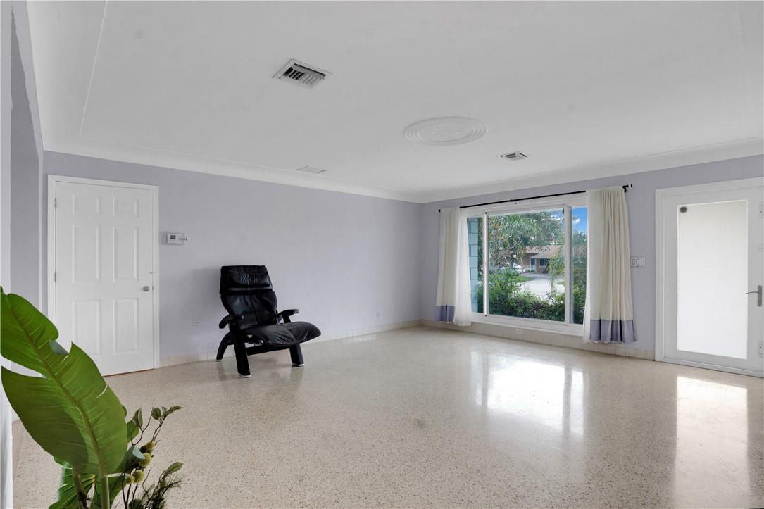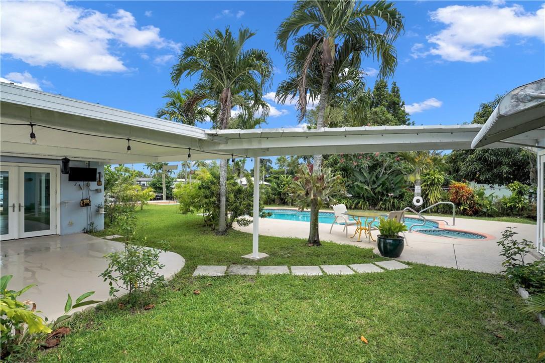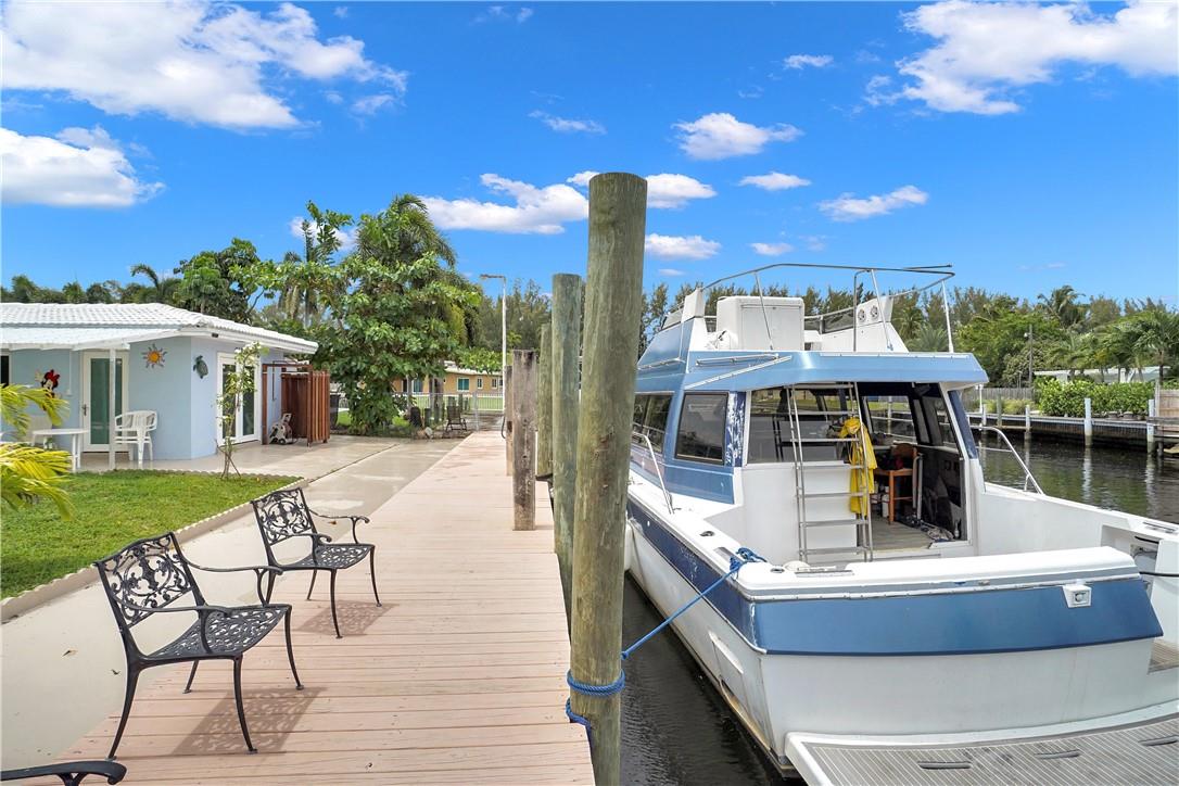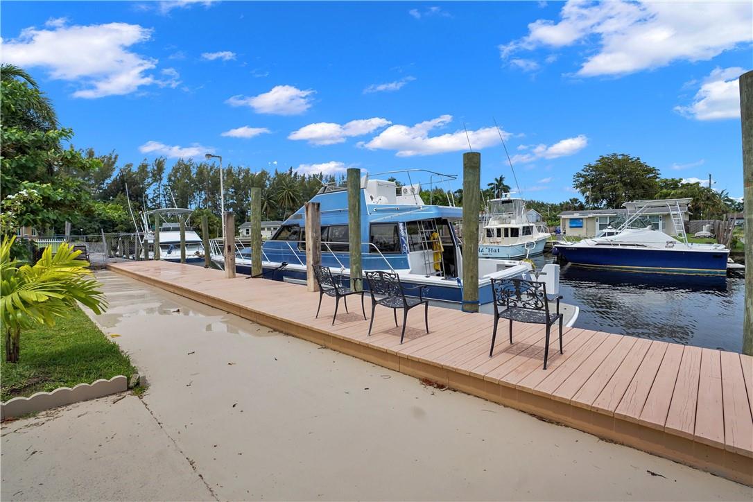 This lovely waterfront, pool home has 3-bedrooms/2 baths with circular drive and an open floor plan. Desirable Terrazzo floors compliment most of the house. There is a private master suite with 2 additional bedrooms. Active AirBnB permit for the 1-bedroom guest cottage. Covered patios for indoor/outdoor living. Heated pool with underwater pool light with multiple settings, a built in hot tub with aqua link pool automation on phone app is new in 2022. Blink camera system w remote monitoring. Sound proofing,insulation, impact windows & doors throughout in 2016. New 5 ton AC and AH ducting in 2016. New electrical permitted including mast, panel & power cable into property 2017. New washer w/warranty. New Roof in June 2023. By boat, 30 min to the ICW from new 80 ft dock one 20ft fixed bridge.