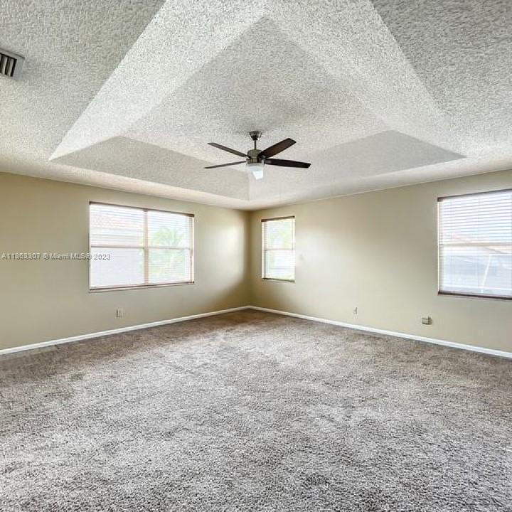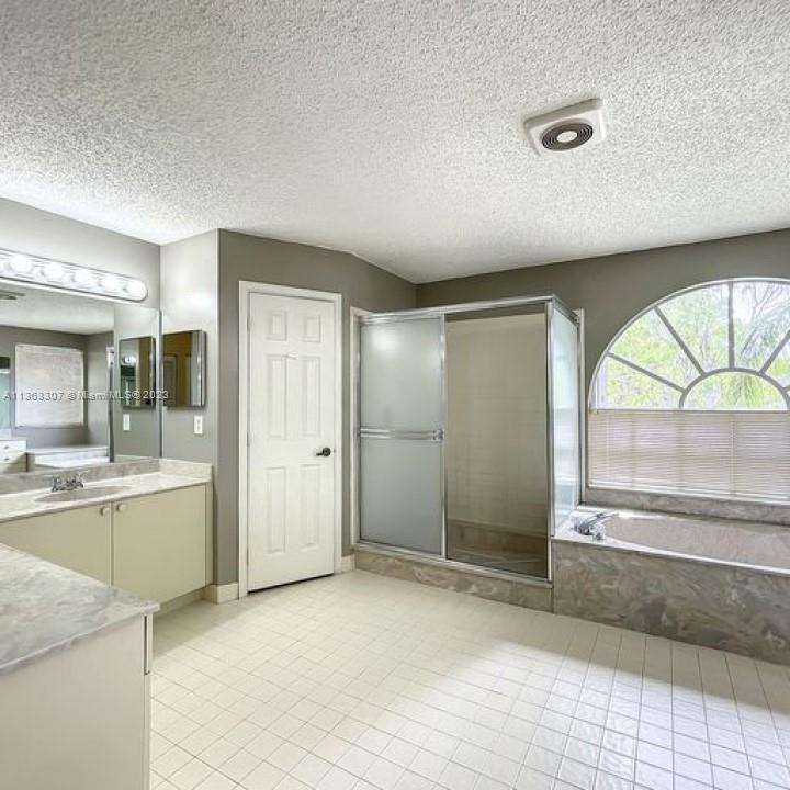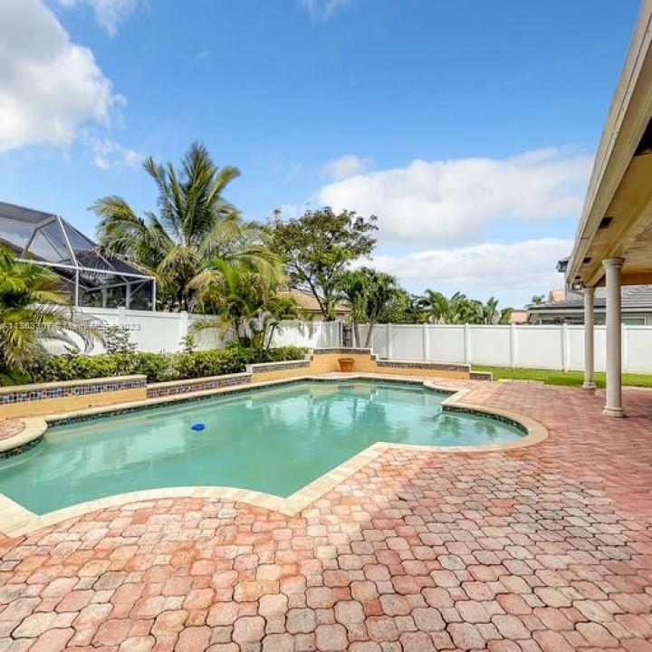 Four bedroom, three bath, 3700 sq. ft home with three car garage and pool located in the highly sought-after gated community of Crystal Bay in Silver Lakes. This community is family-friendly, welcoming, and near the A-rated Pembroke Pines Charter schools.This home features an expansive master with his and her walk-in closets, an oversized tub, and a separate office space. The main floor includes a family room and a newly renovated full bathroom with easy access to the backyard and pool. The backyard includes a built-in bar area with a mini-fridge, custom grill space, and a beautiful pool. Newly installed A/C unit, a new PVC-style white fence, and new convenient accordion hurricane shutters throughout the house. This gem will not last!