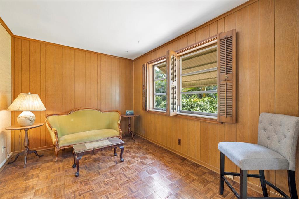 Come check out this tropical oasis of a home surrounded by lush landscaping on an oversized corner lot. Two bedroom & two bathroom with ample space to add third bedroom. Terrazzo flooring throughout that just needs a little TLC to be back to its former glory. Located in top tiered school district. Only 2 miles from the beach!! This home boasts a 1 car garage and a separate laundry room. Spacious bedrooms and bathrooms and large secondary living area with fireplace. Roof was done in 2016. Royal Oak Hills is a beautiful neighborhood close by to shops & restaurants!