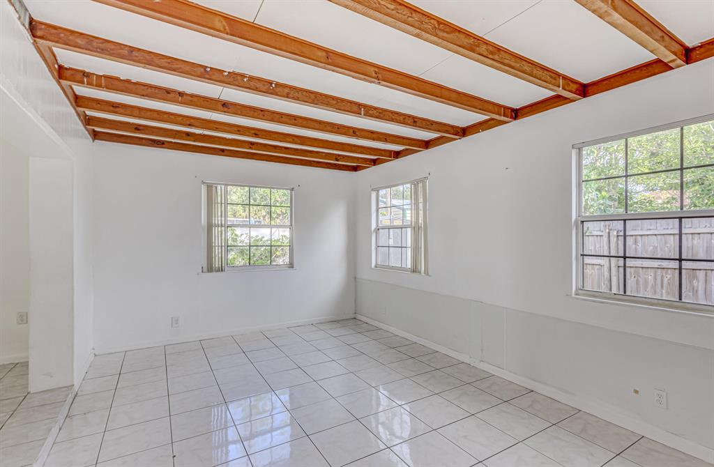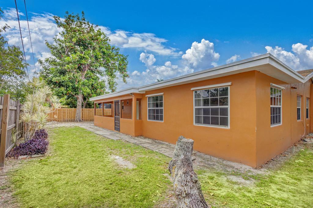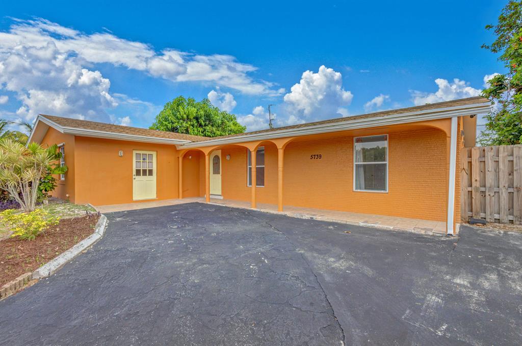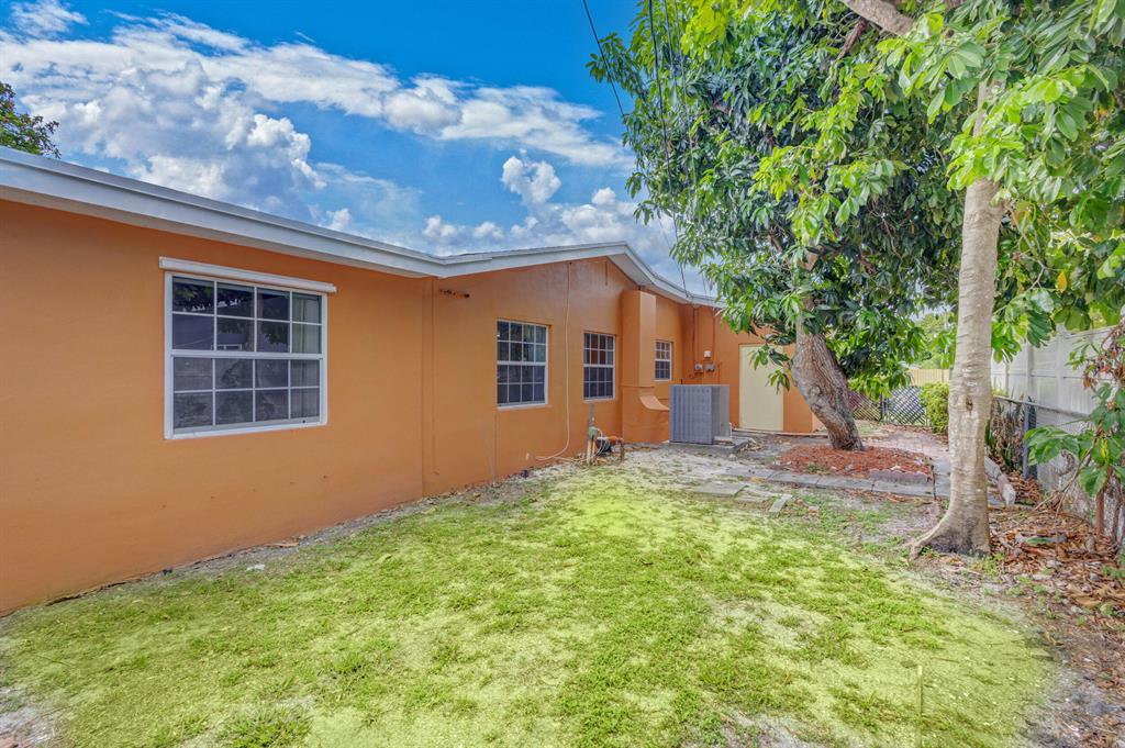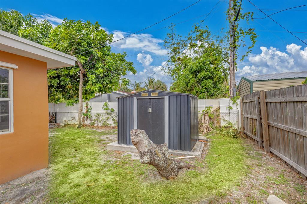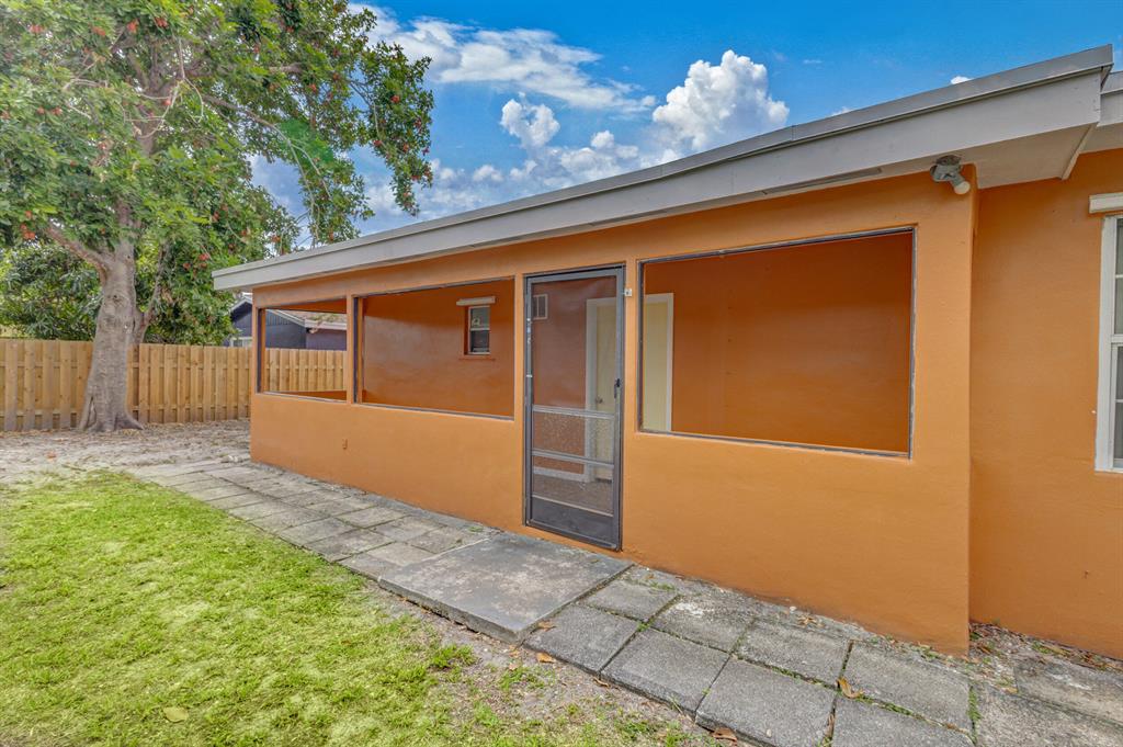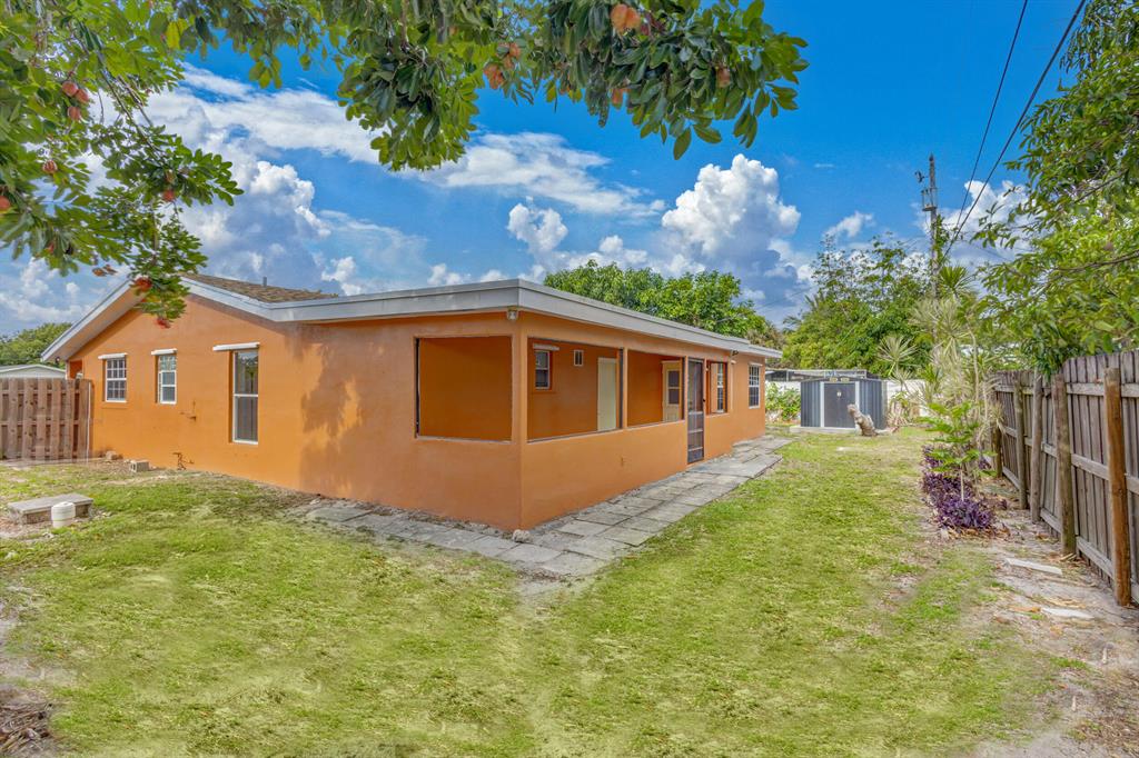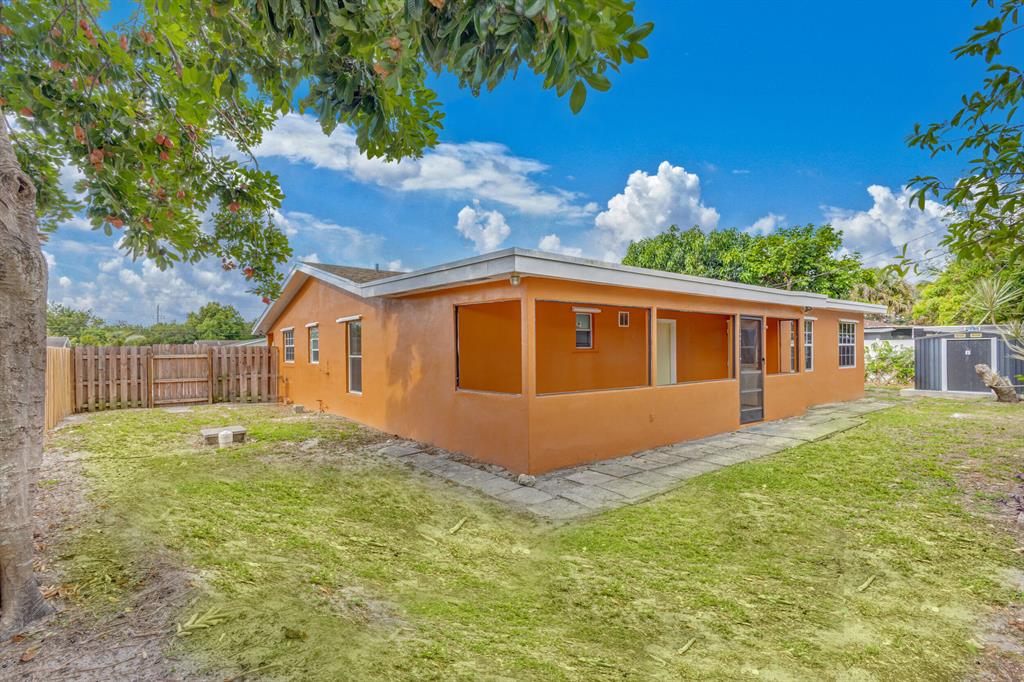 Bring your toys & pets! No HOA & no restrictions! Just under 2,100 sq. ft. this huge 5 bedroom 2 bathroom is move in ready. Complete with a new 2022 roof, 2020 a/c, newer windows, 2021 electric panel, 2021 kitchen appliances and complete storm panels. The spacious kitchen has a 9'' breakfast bar and plenty of counter space. The fifth bedroom (converted garage) has a separate entrance perfect for privacy & window A/C to cool. Full size washer (new) & dryer. Enjoy the covered and screened patio in the fenced in backyard & loaded mango tree! Also includes 8x6 metal storage building on concrete pad. Freshly painted in & out! Abundant parking on the oversized driveway. The neighborhood is central to many stores and restaurants, highways, and the PBI airport. Owner is motivated!