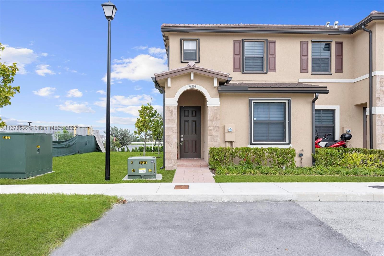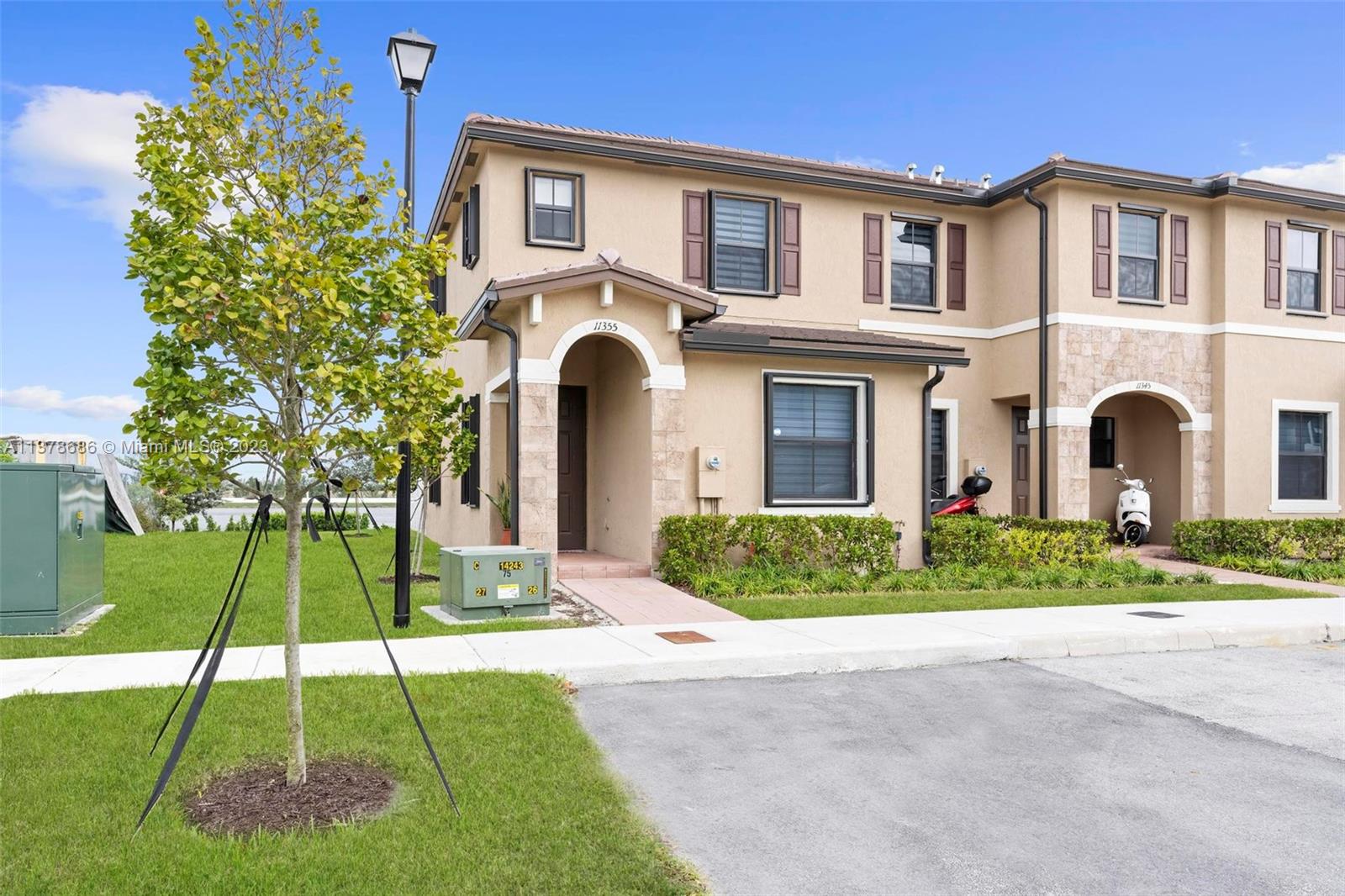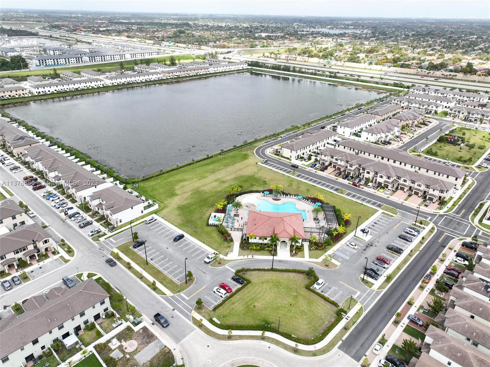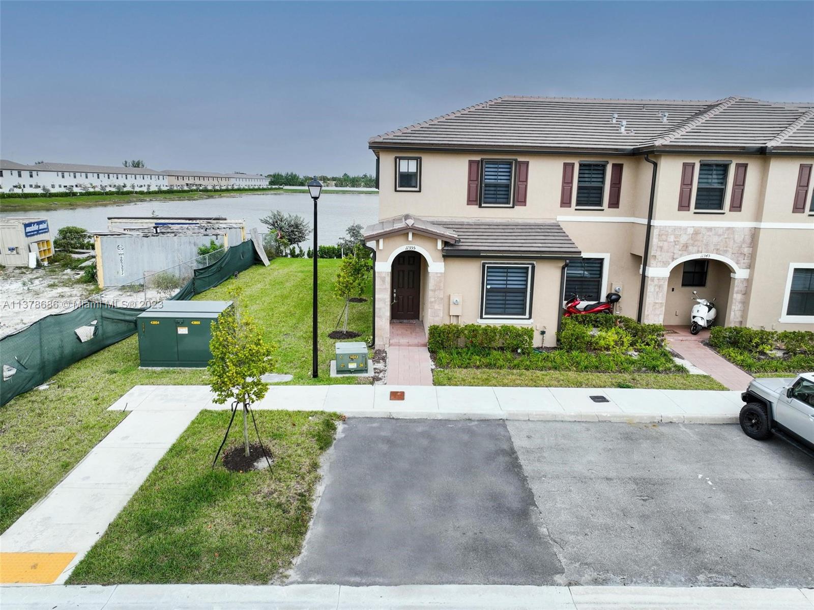 3 Bed, 3 Full bath townhouse in newly built community of Aquabella. This model features one full bed and bath on the first floor, and is completely tiled throughout. Premium location from the builder with extended lot, corner unit, and lake frontage. This home includes complete accordion shutters, zebra shades and elegant light fixtures installed. The patio features stone pavers and artificial turf, along with a gate to keep little ones and pets safe while enjoying the sunshine. This community has two clubhouses with huge pools, a large gym, on-site security and many other features- all in a wonderful location near several of Miami's major highways, shopping, dining and entertainment. Please feel encouraged to ask for more information! OPEN HOUSE 4/29 and 4/30!