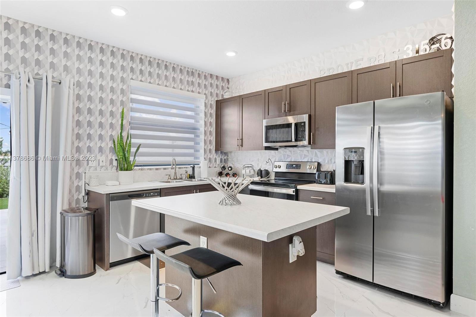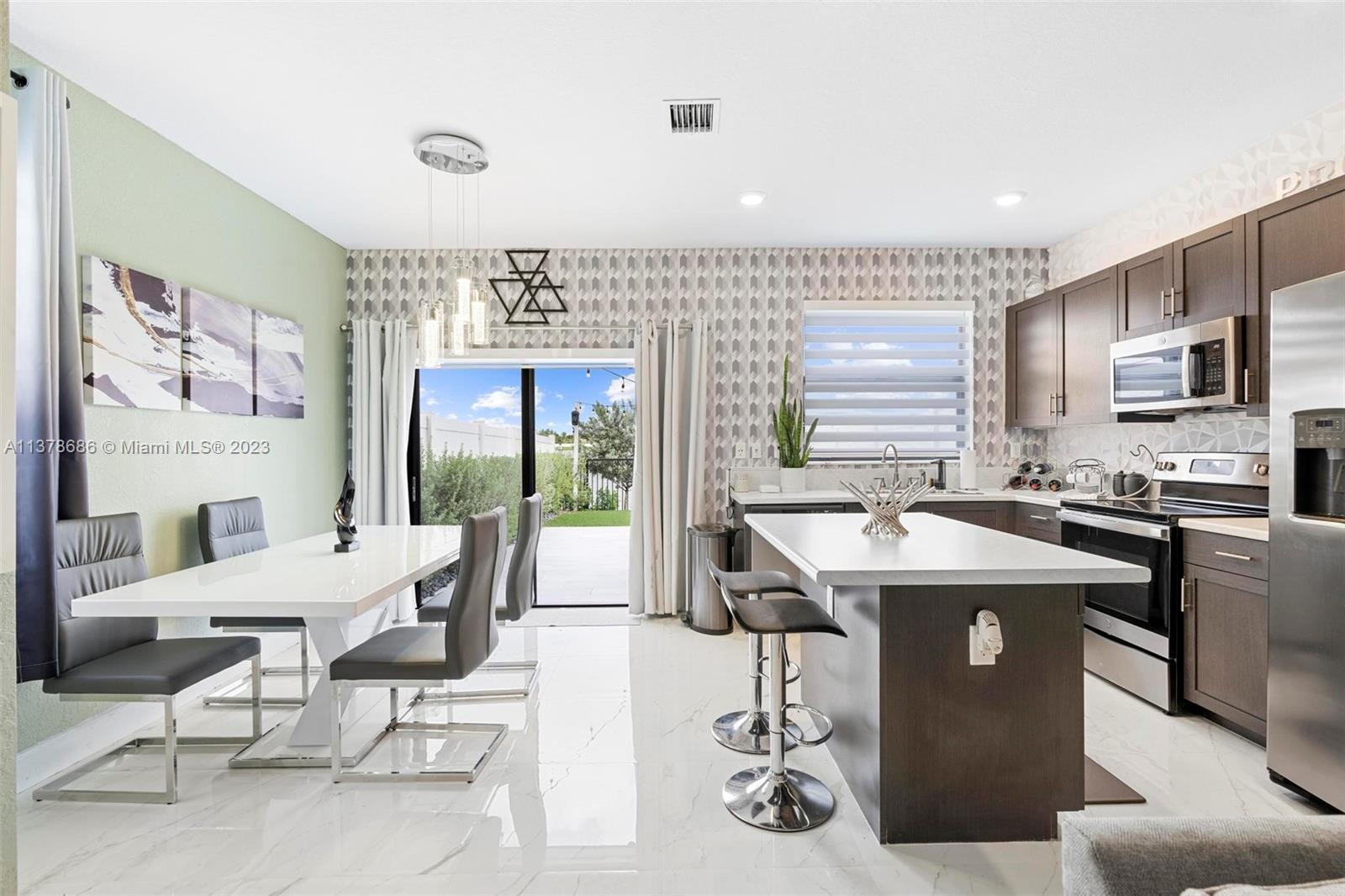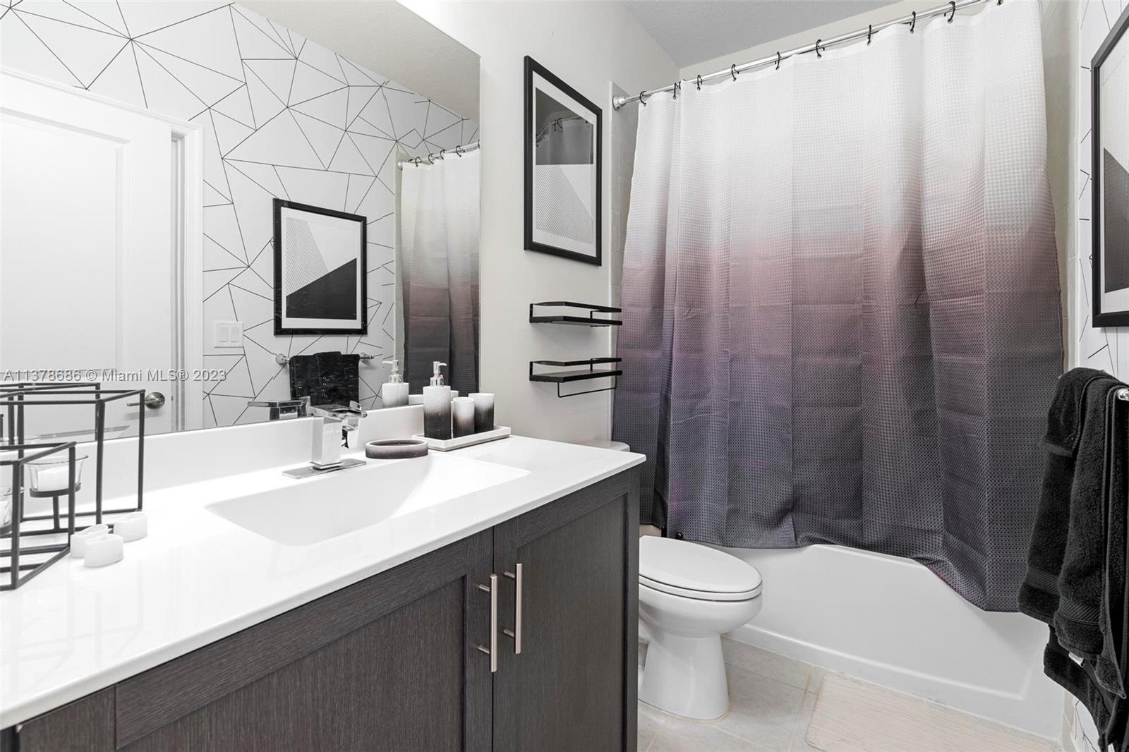 3 Bed, 3 Full bath townhouse in newly built community of Aquabella. This model features one full bed and bath on the first floor, and is completely tiled throughout. Premium location from the builder with extended lot, corner unit, and lake frontage. This home includes complete accordion shutters, zebra shades and elegant light fixtures installed. The patio features stone pavers and artificial turf, along with a gate to keep little ones and pets safe while enjoying the sunshine. This community has two clubhouses with huge pools, a large gym, on-site security and many other features- all in a wonderful location near several of Miami's major highways, shopping, dining and entertainment. Please feel encouraged to ask for more information! OPEN HOUSE 4/29 and 4/30!