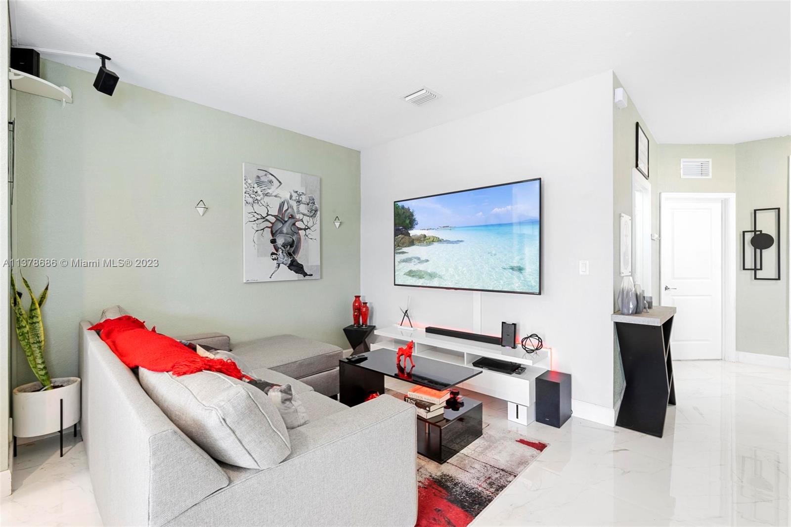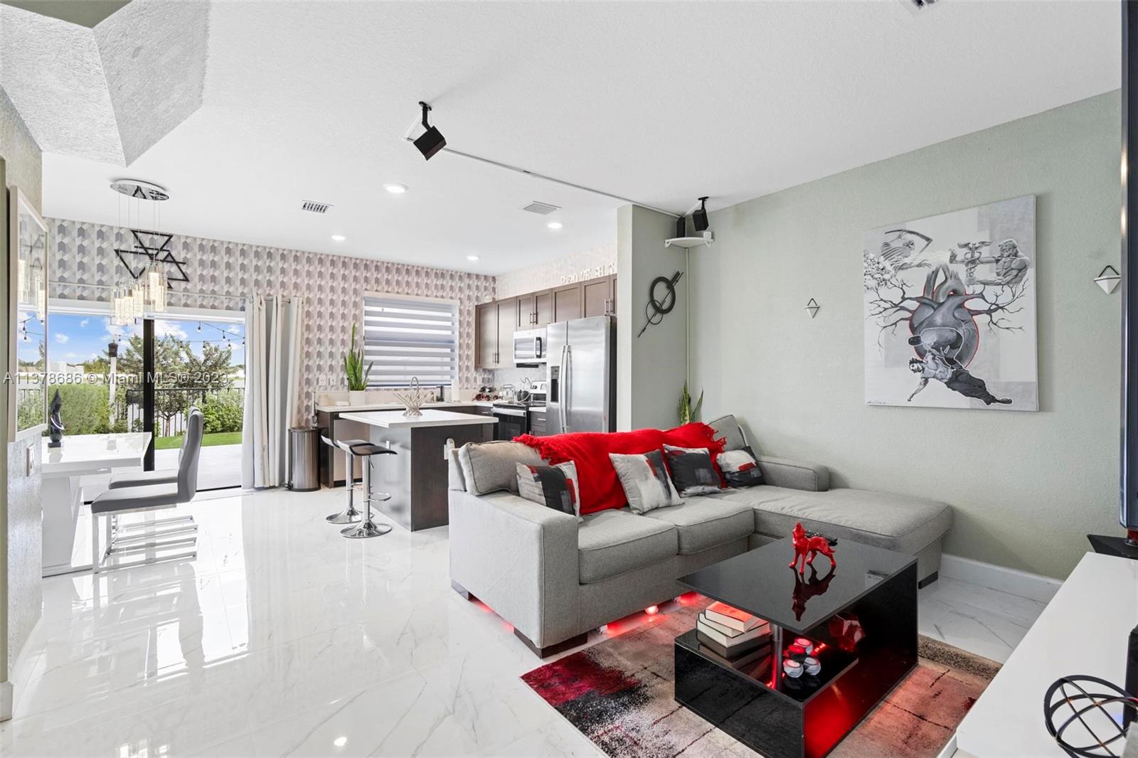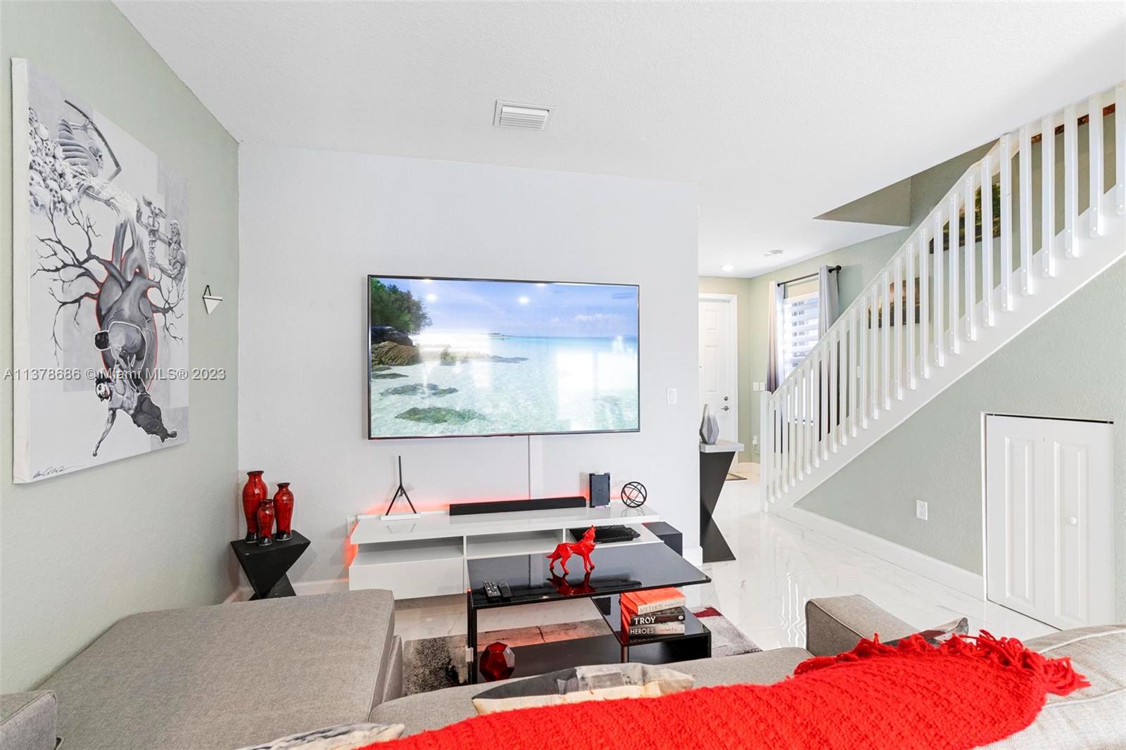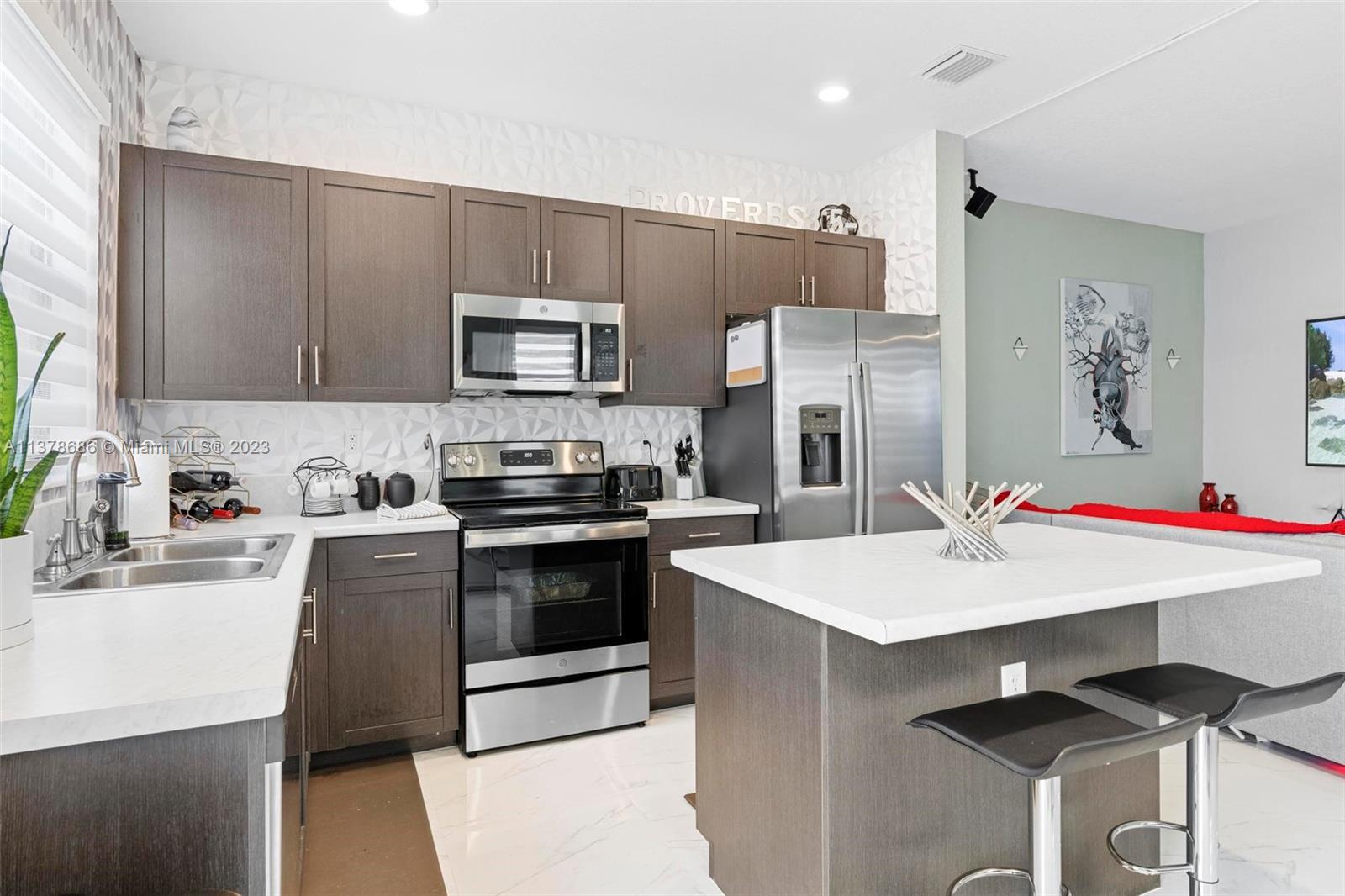 3 Bed, 3 Full bath townhouse in newly built community of Aquabella. This model features one full bed and bath on the first floor, and is completely tiled throughout. Premium location from the builder with extended lot, corner unit, and lake frontage. This home includes complete accordion shutters, zebra shades and elegant light fixtures installed. The patio features stone pavers and artificial turf, along with a gate to keep little ones and pets safe while enjoying the sunshine. This community has two clubhouses with huge pools, a large gym, on-site security and many other features- all in a wonderful location near several of Miami's major highways, shopping, dining and entertainment. Please feel encouraged to ask for more information! OPEN HOUSE 4/29 and 4/30!