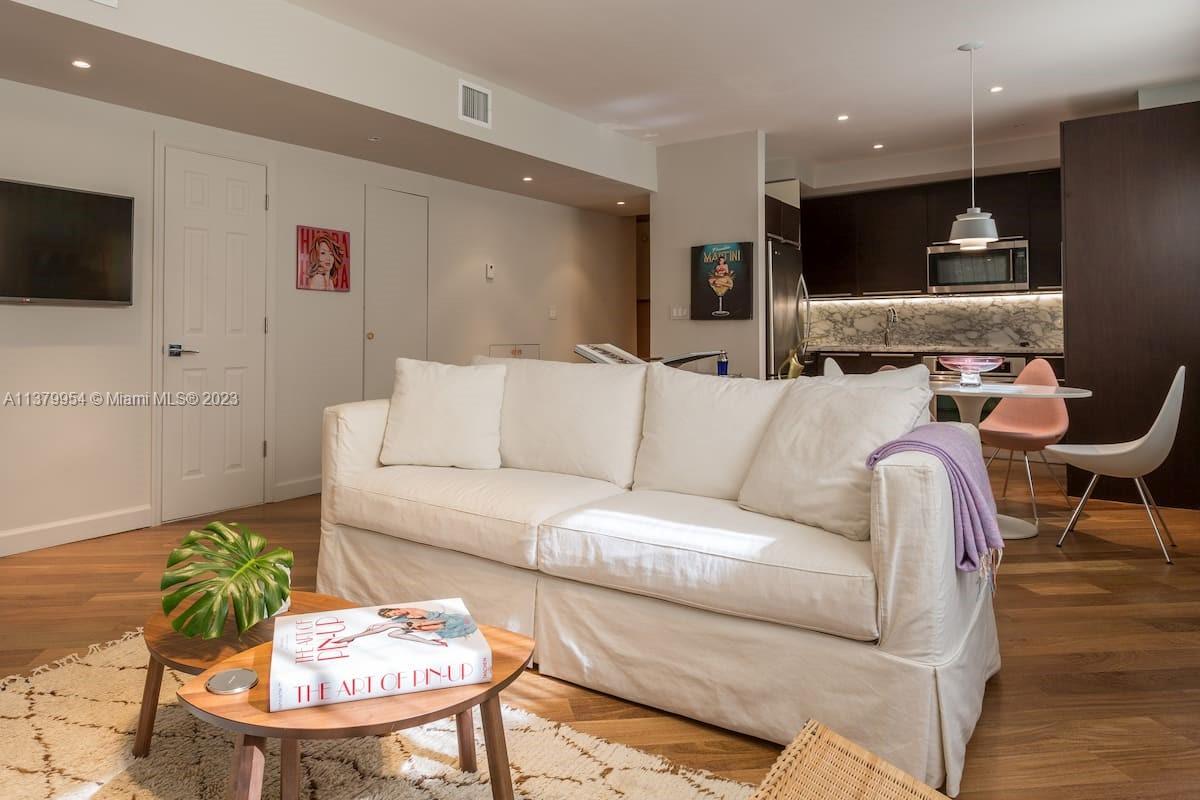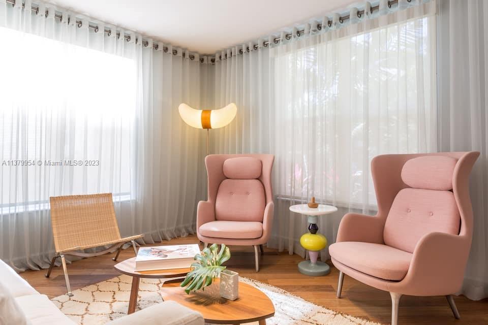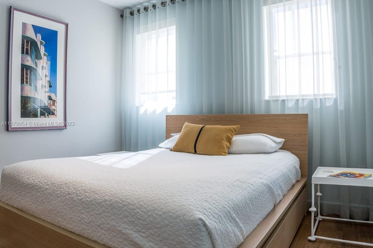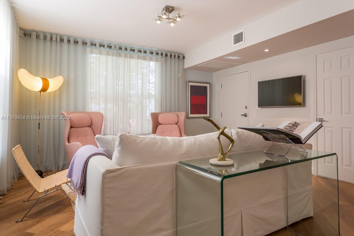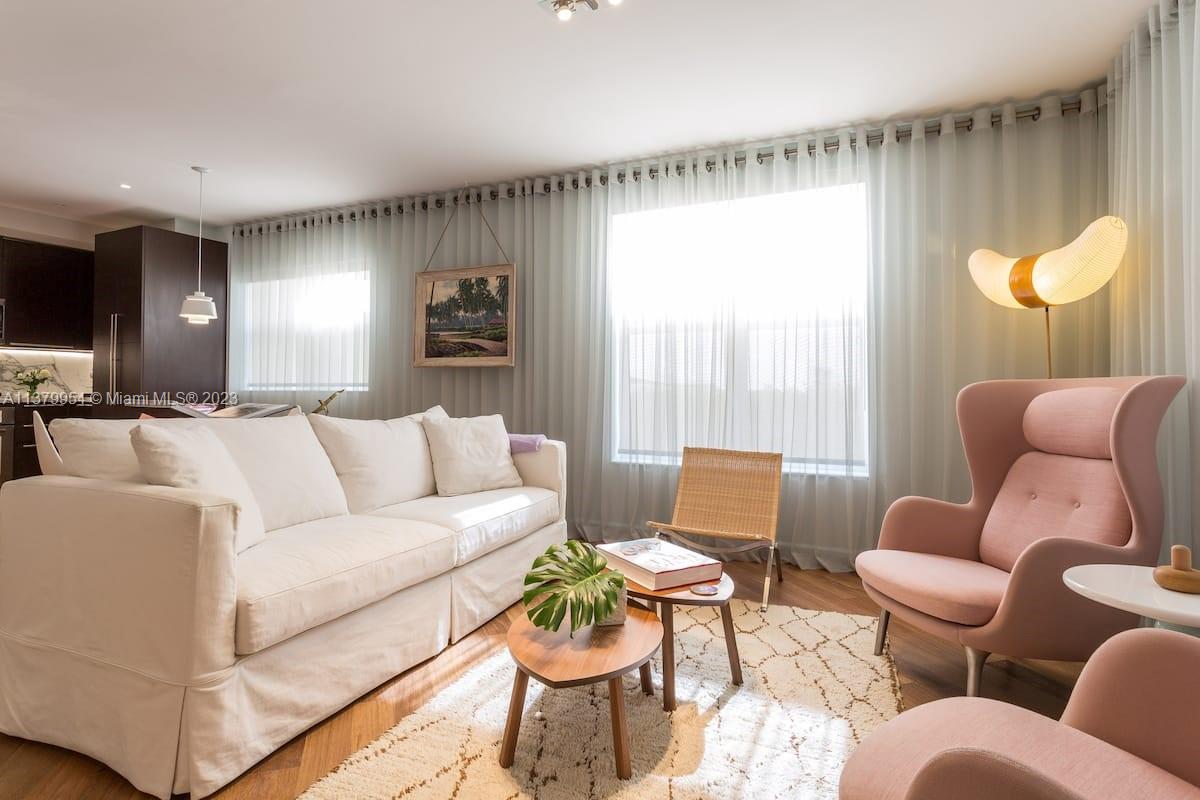 Stunning 2 floors townhouse with 2 bedrooms, 2 full baths + 1 half guest bath. Bright corner unit offers semi private gated garden entrance. Beautiful garden views from the living room. High end finishes: Brazilian hardwood floors, Carrara marble countertops, Italian kitchen cabinetry, Kitchenaid appliances, designer lighting fixtures, newer air conditioning units with Nest thermostat, washer and dryer, new large custom closet in master bedroom. Hurricane impact windows. Best location in South Beach, 4 min walk to the beach but in a quiet and low traffic street; near restaurants, shops and everything Miami Beach has to offer. HOA fee includes high speed internet, cable, water, landscape, etc. Furniture is negotiable. Move in condition and ready to sell.
